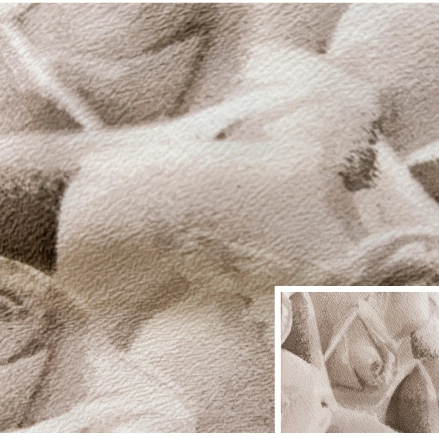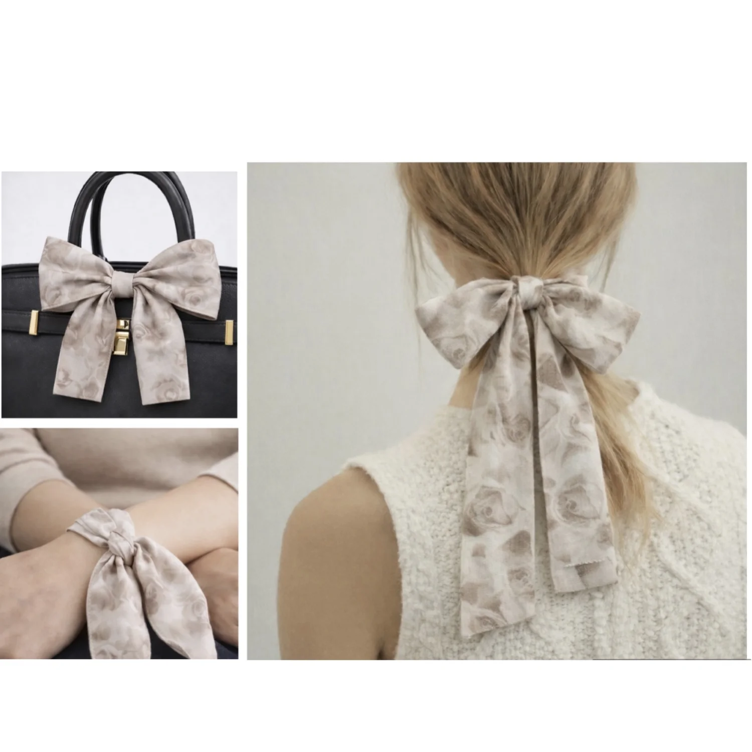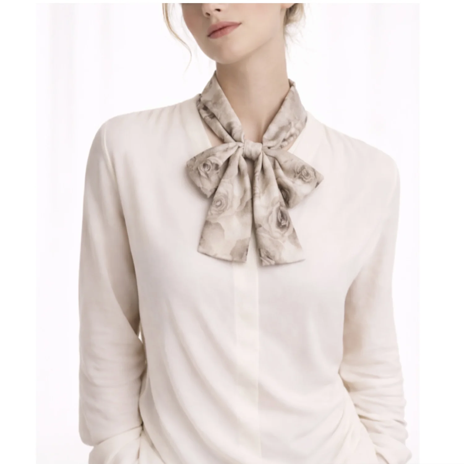 Gianni Versace Vintage 90’ silk tie scarf features a taupe roses prints on a beige background. Measure approximately 54” long / 3.1/2” center width 2” to 3” ends width Excellent condition
