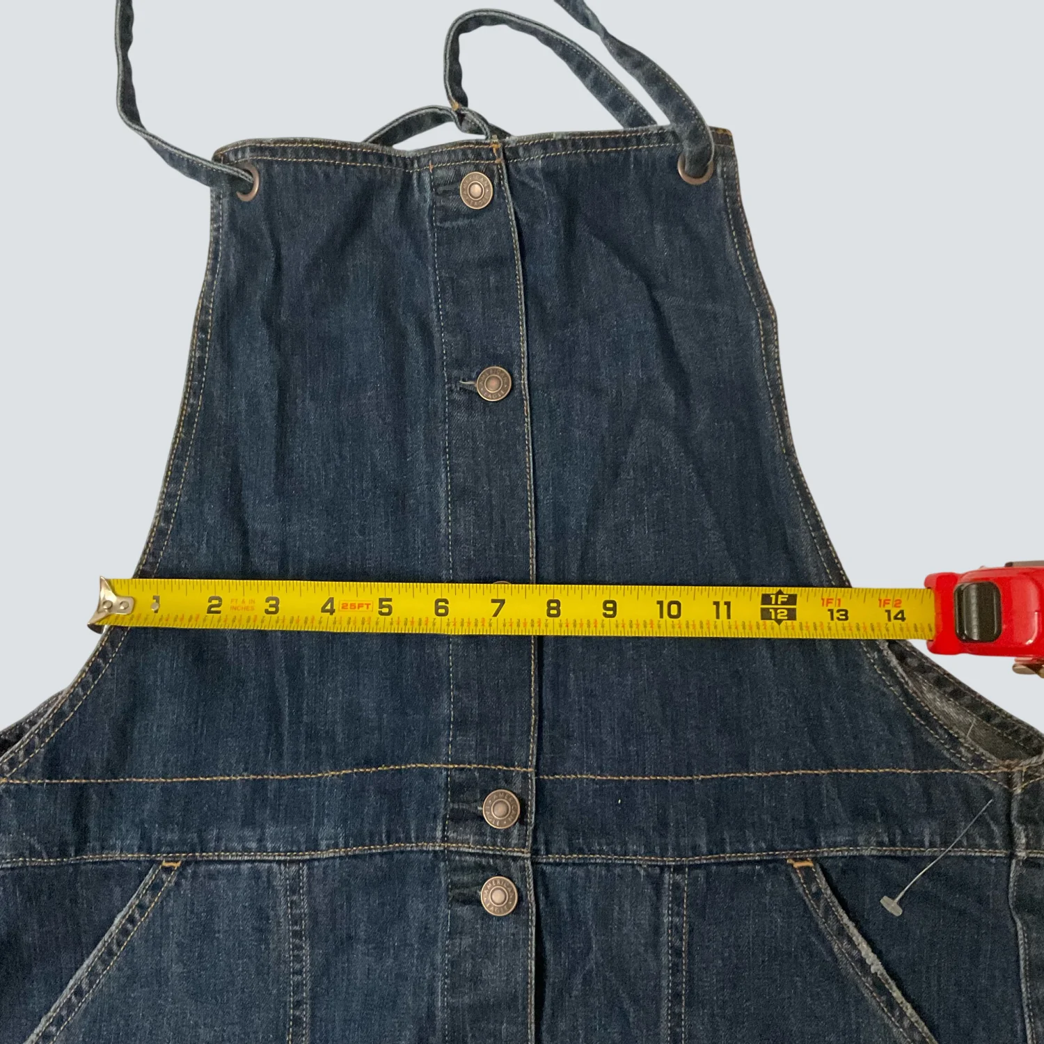 AÈ American Eagle Raw Hem Denim Halter Coverall Dress L Classic Preppy Festival