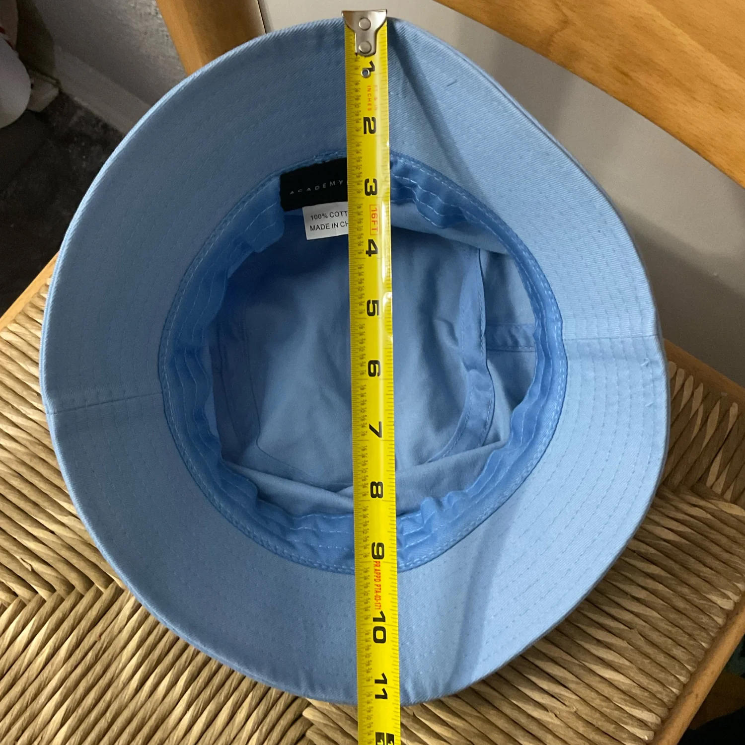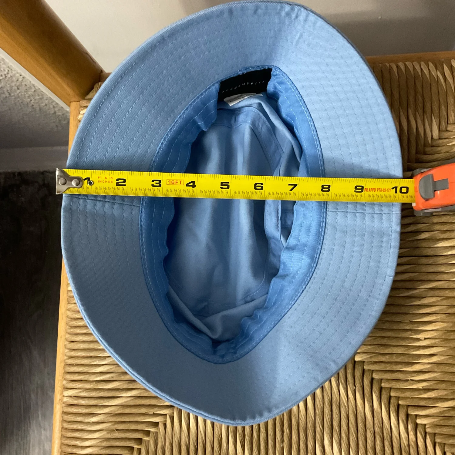 Style: Bucket hat Color: Baby Blue Size: N/A/ One Size Width: 10" Length: 11" Condition: New without tag 100% Cotton