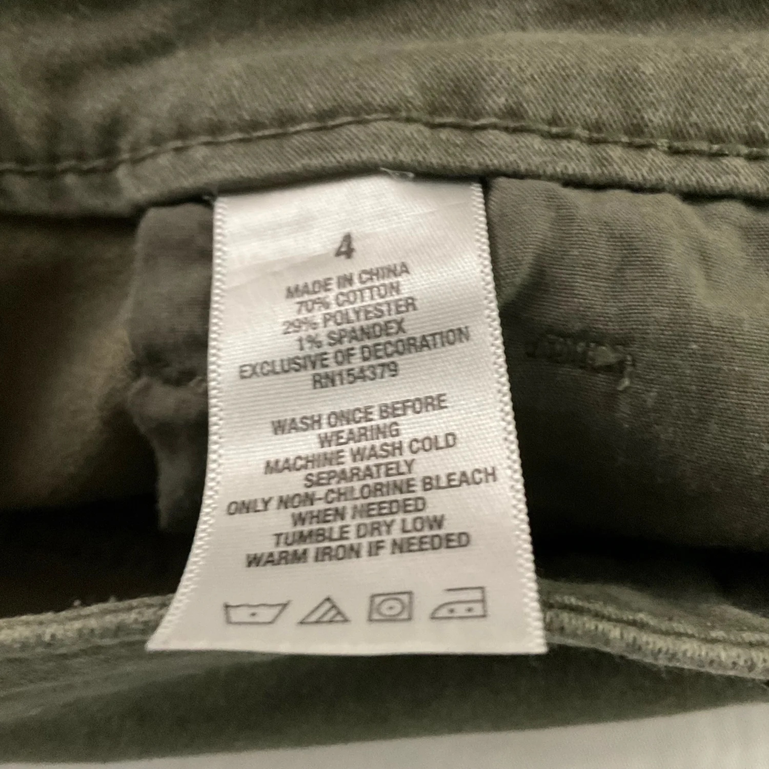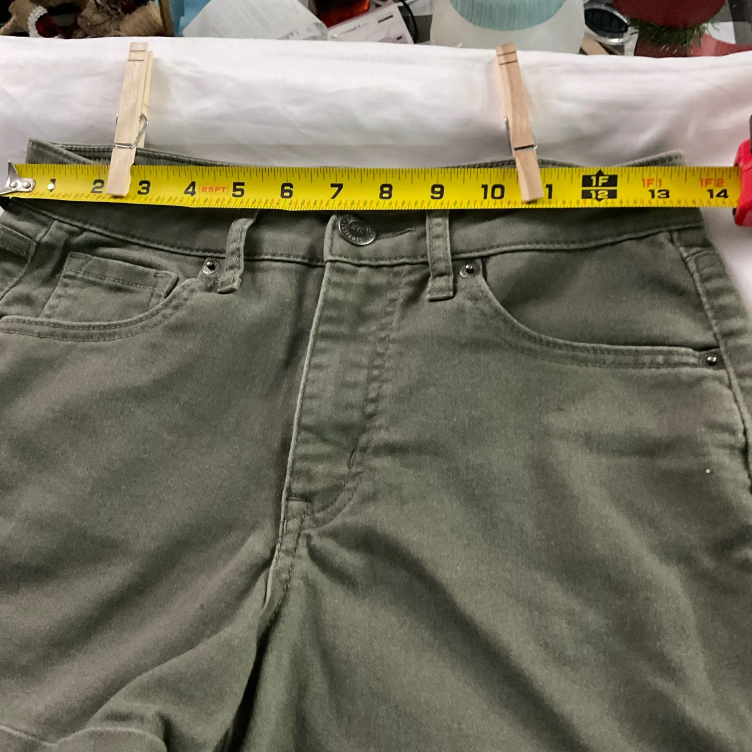 Style: MIDI 5 pocket short Color: Army Green Size: 4 W: 14” Rise: 10” Length: 11” Condition: Pre-owned slight pilling at crotch as pictured 70% Cotton 29% Polyester 1% Spandex Machine wash cold