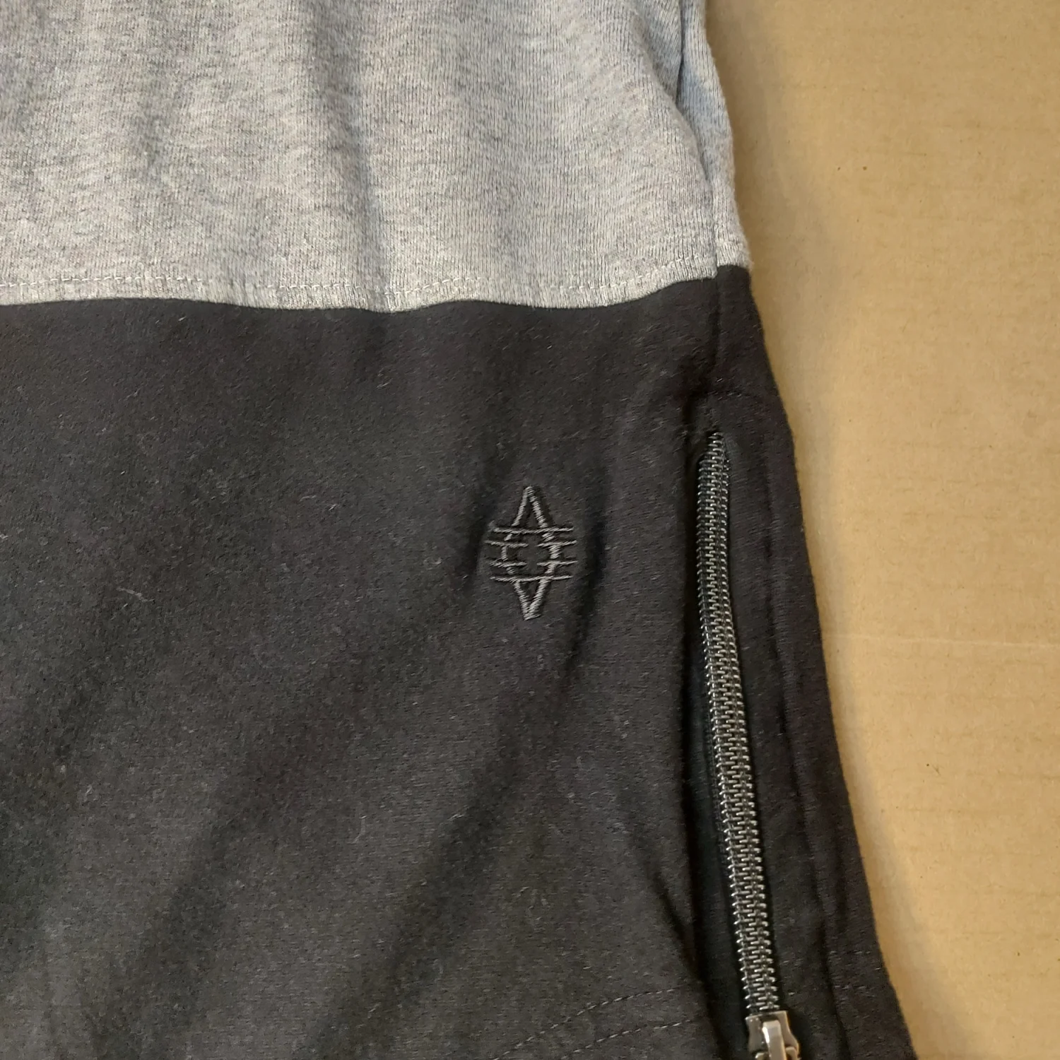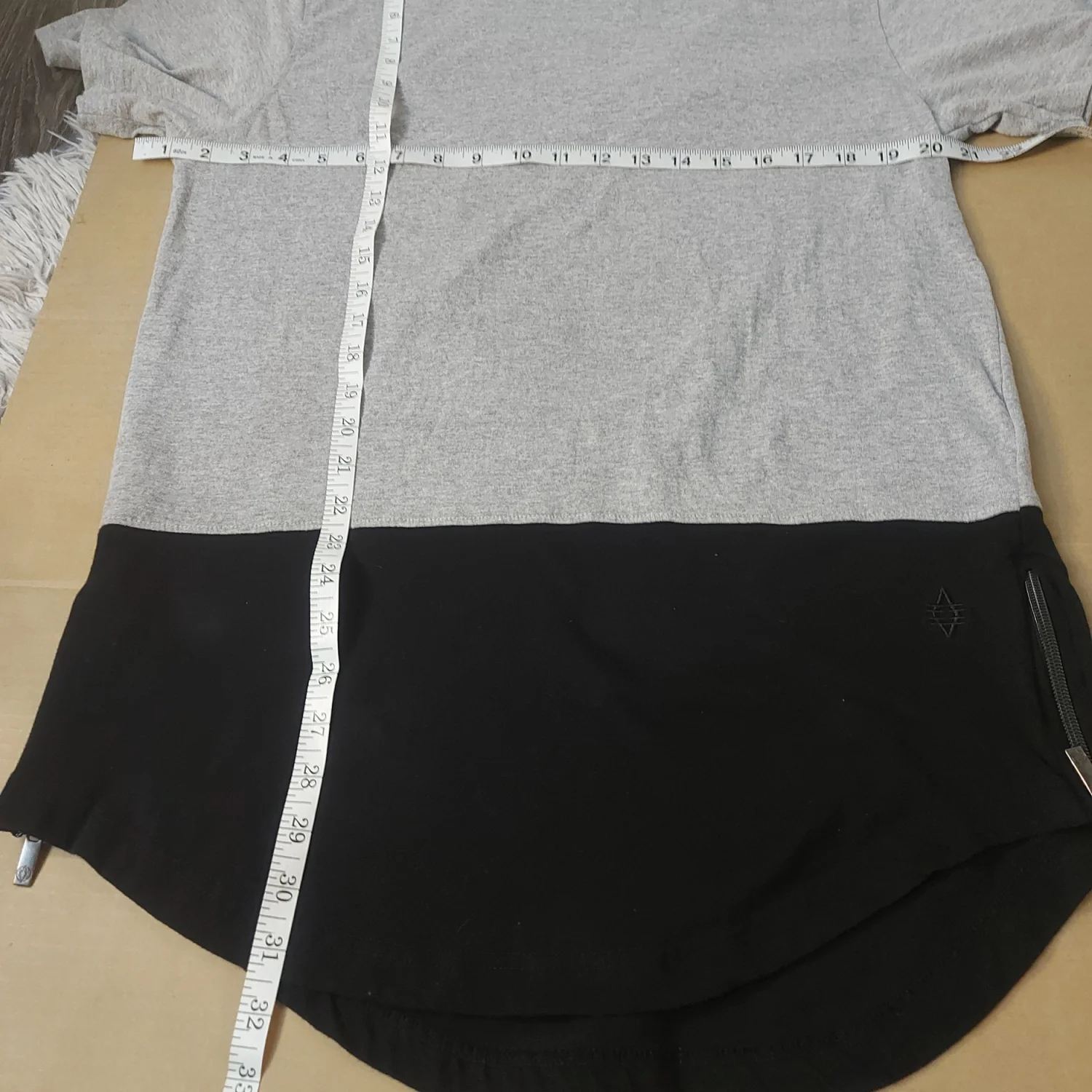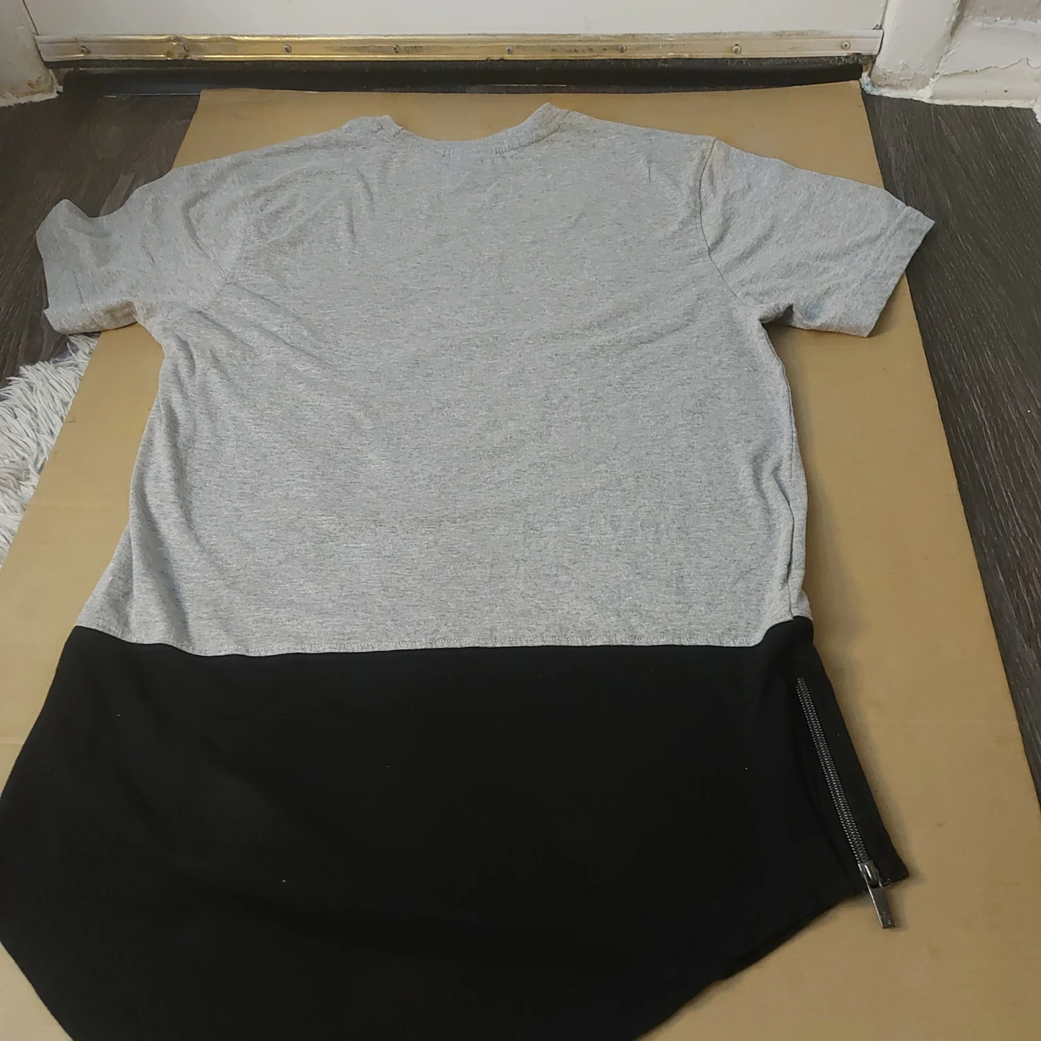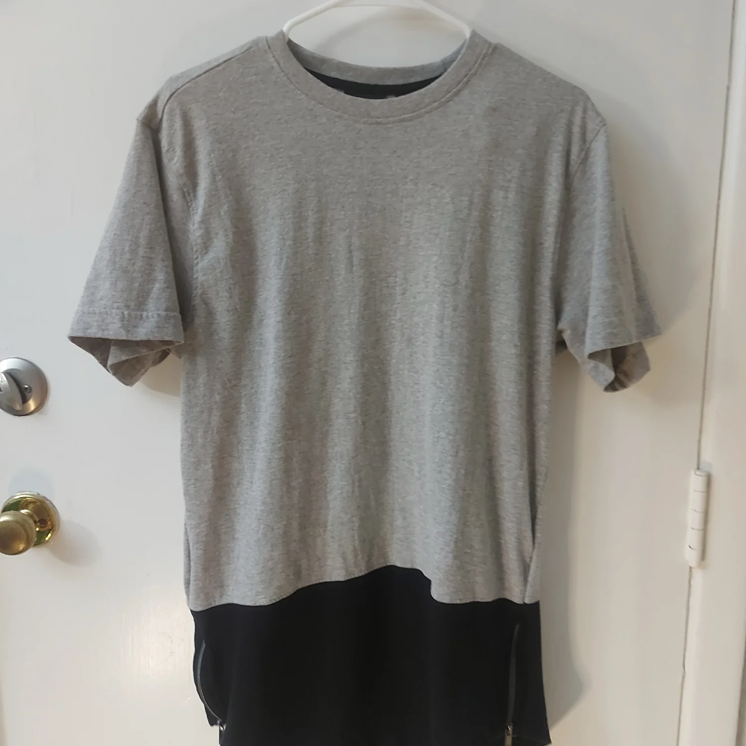 Style: Crewneck zip detail two tone t-shirt Color: Gray/Black Size: L Armpit: 19" Length: 30" Condition: Good 67% Cotton 34% Polyester Machine wash cold