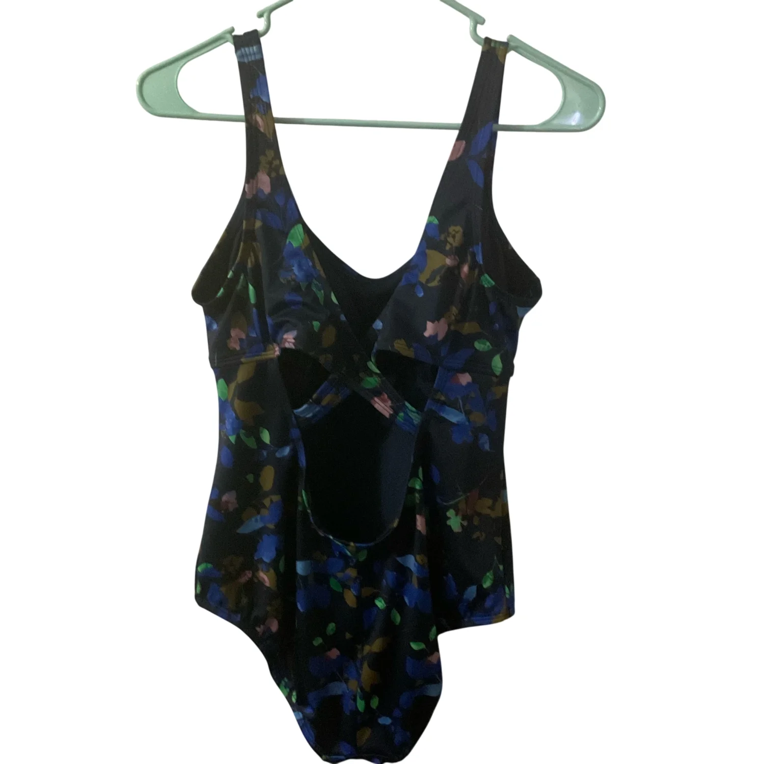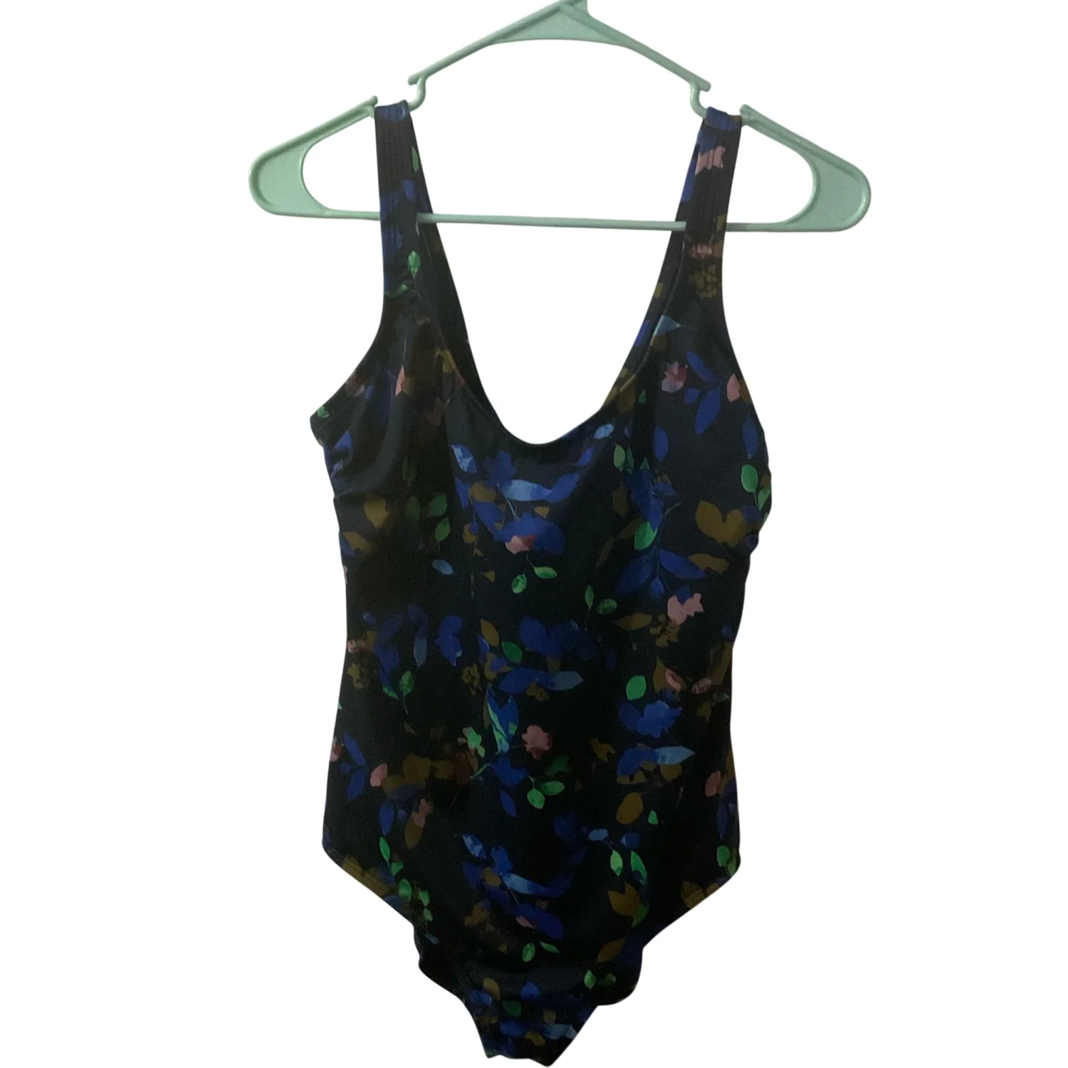 Style: Cross strap back with thicker shoulder straps Color: Blue/Multi Size: L Armpit: 14" Length: 28" Condition: Good Hand wash