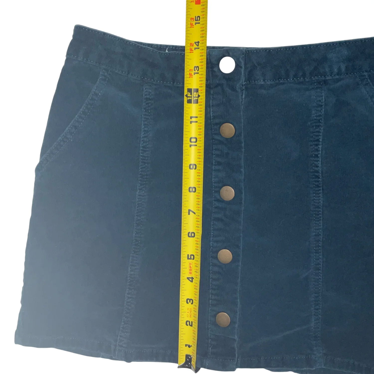 Altar’d State Dark Teal Corduroy Mini Skirt S Boho Fall Preppy Classic Academia Style: Button up Mini skirt #89203 Color: Teal( (Blue green) Size: S Waist: 14” Length: 14” Condition: Good 98% Cotton 2% Spandex Machine wash cold