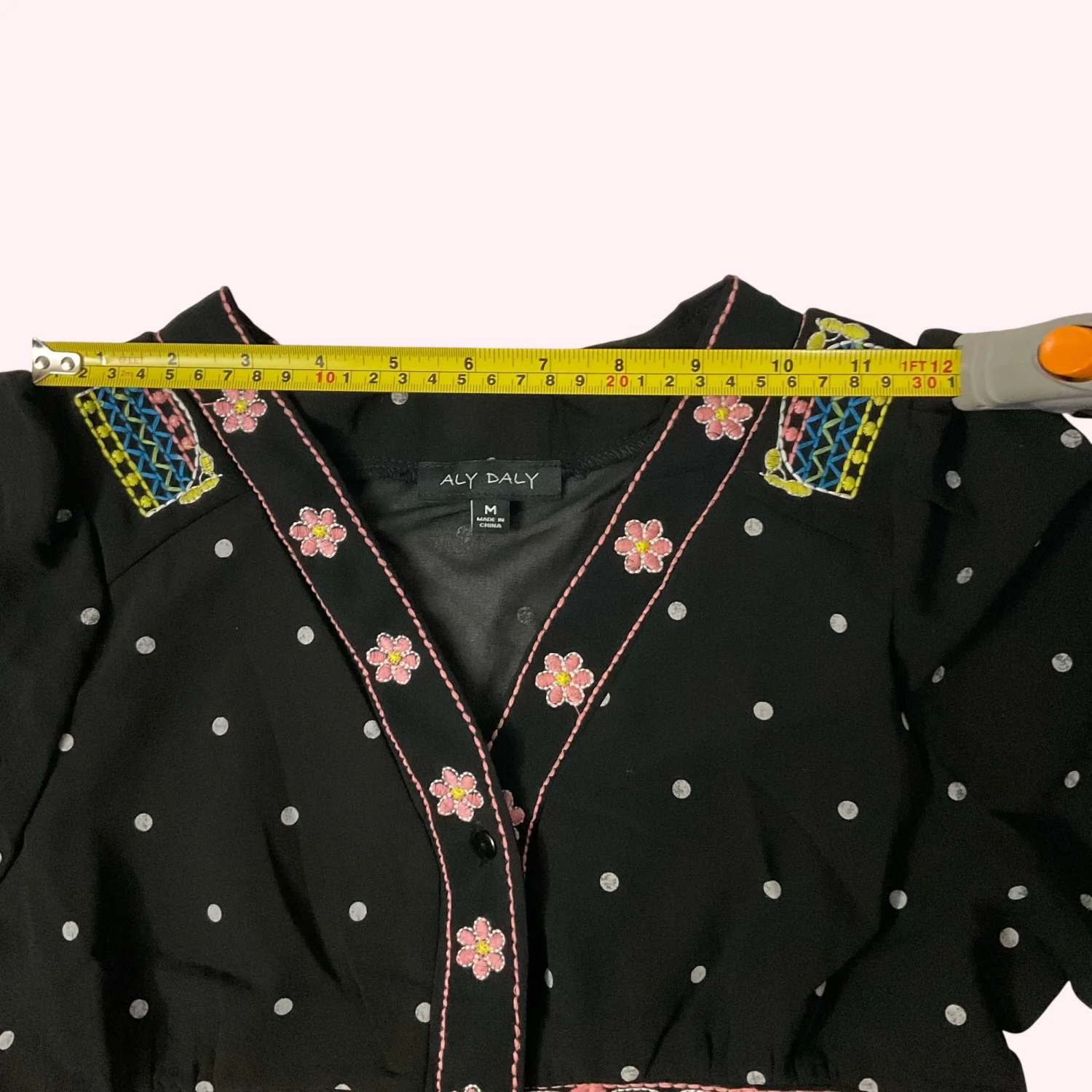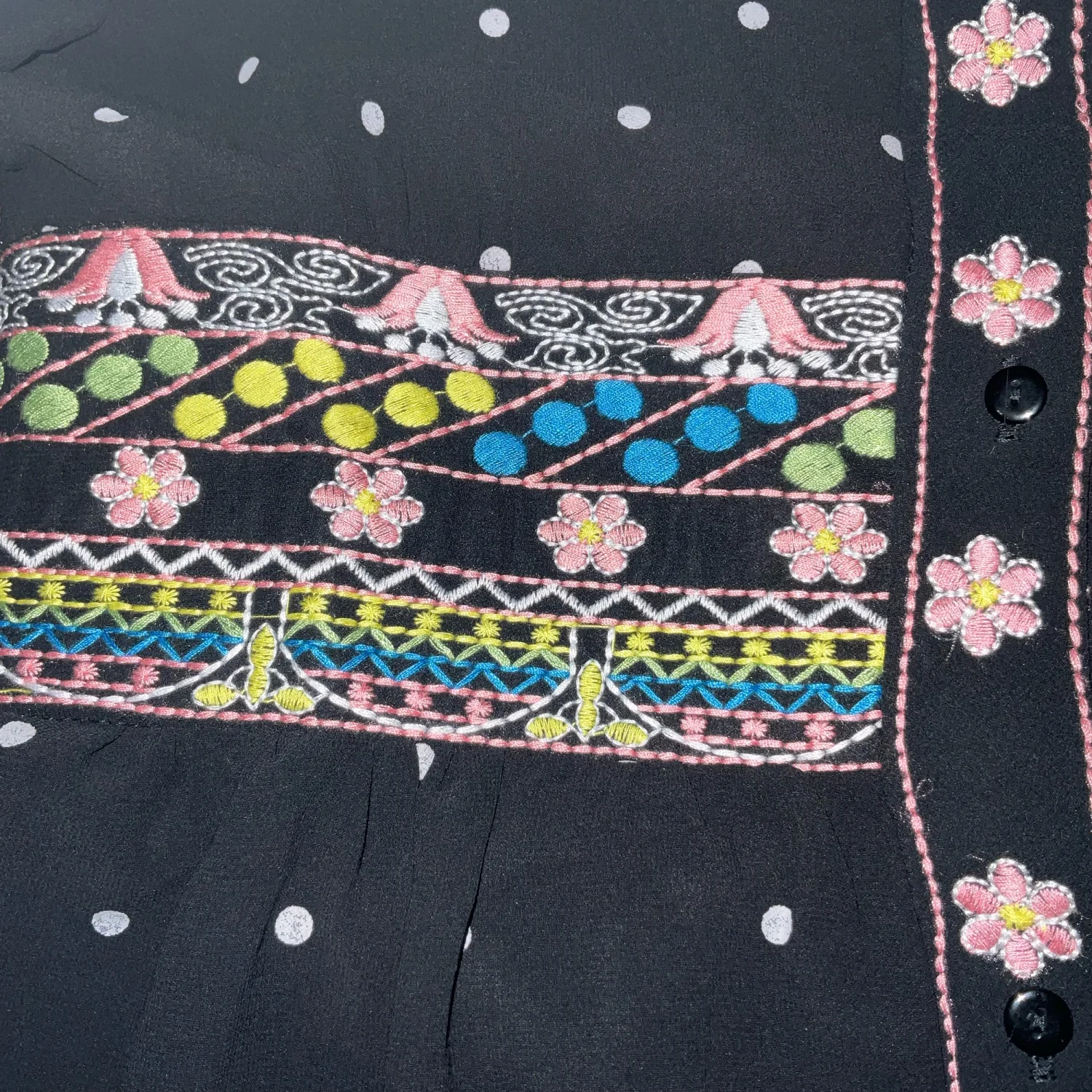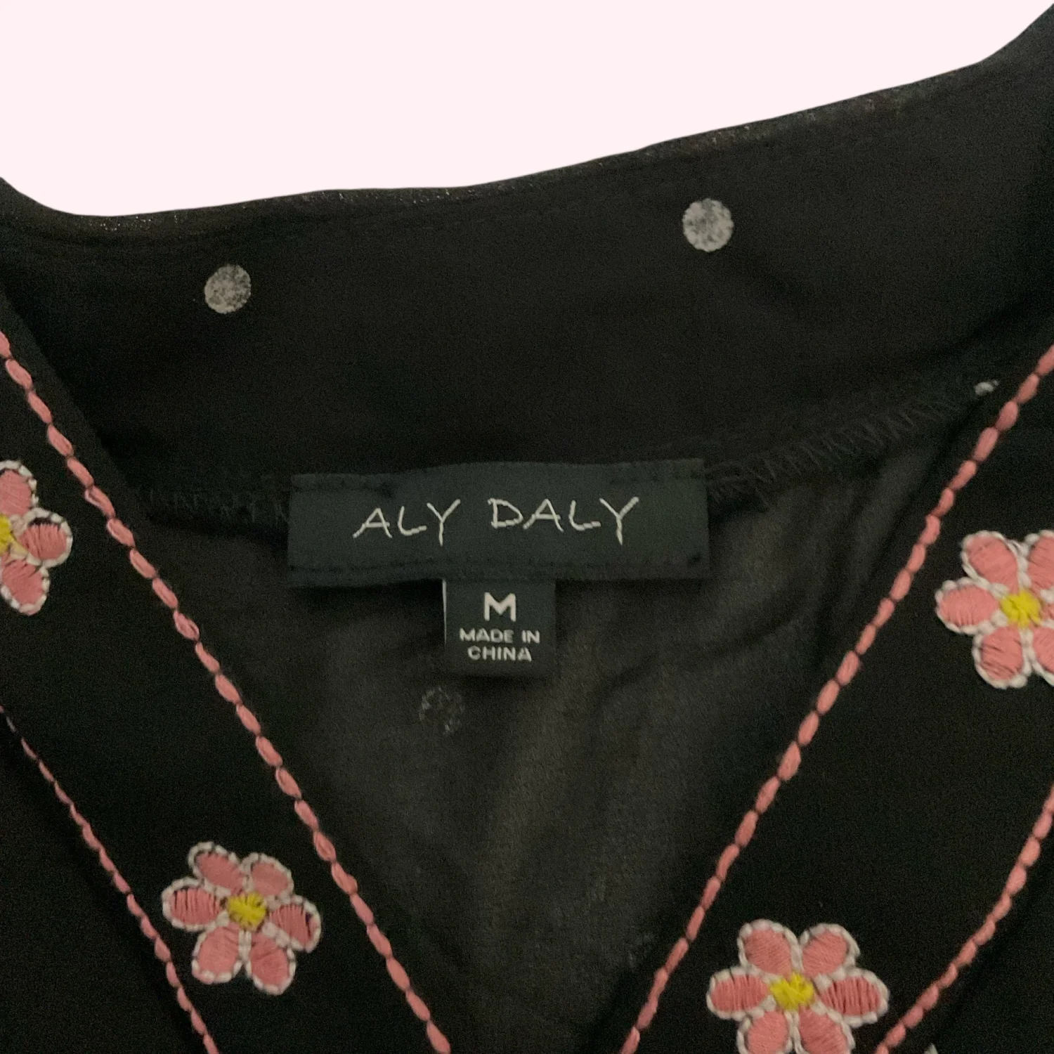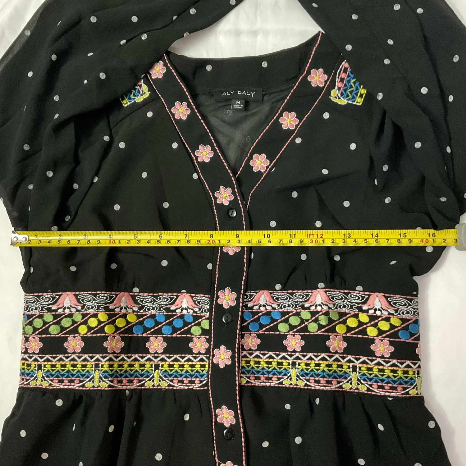 Aly Daly Black Polka Dot Embroidered Boho Peasant Sheer Lined Dress M Cottage