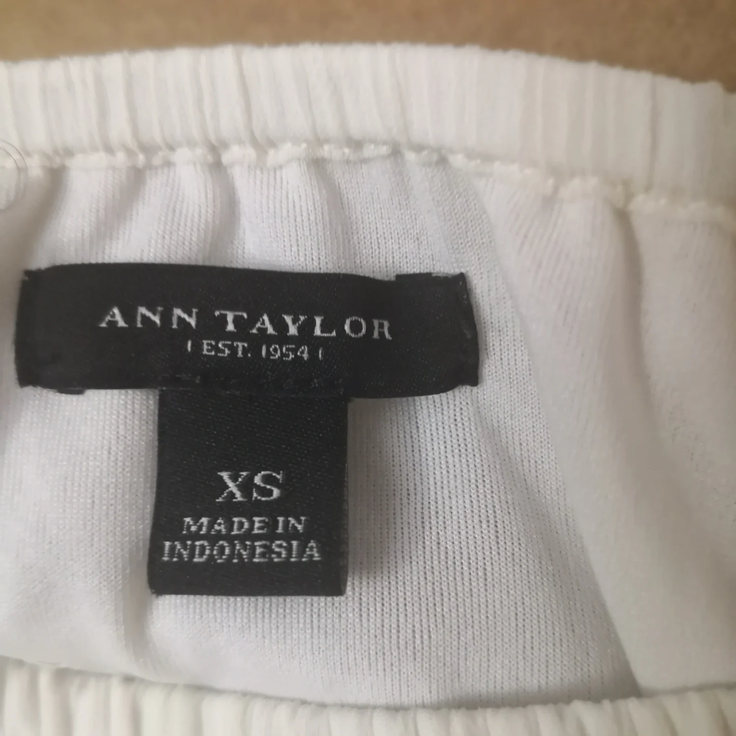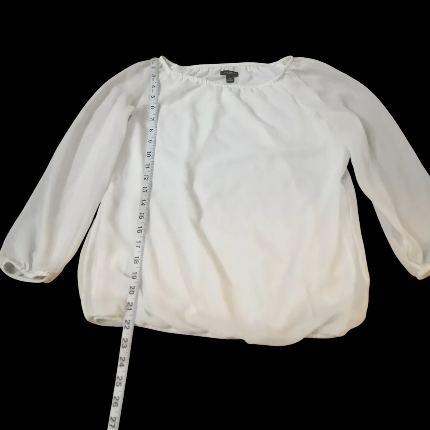 Ann Taylor White Sheer Textured Boatneck Balloon Sleeve Blouse XS Lined Summer