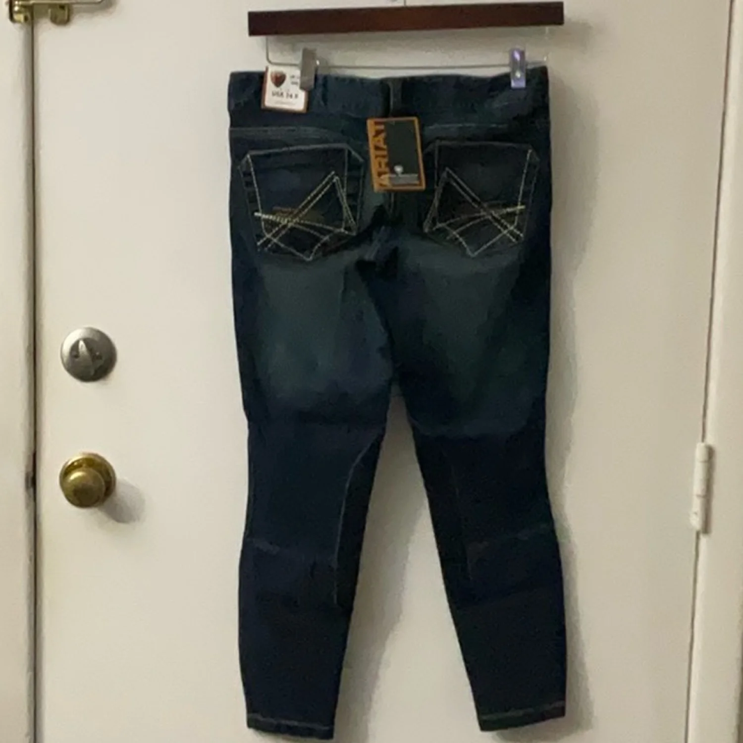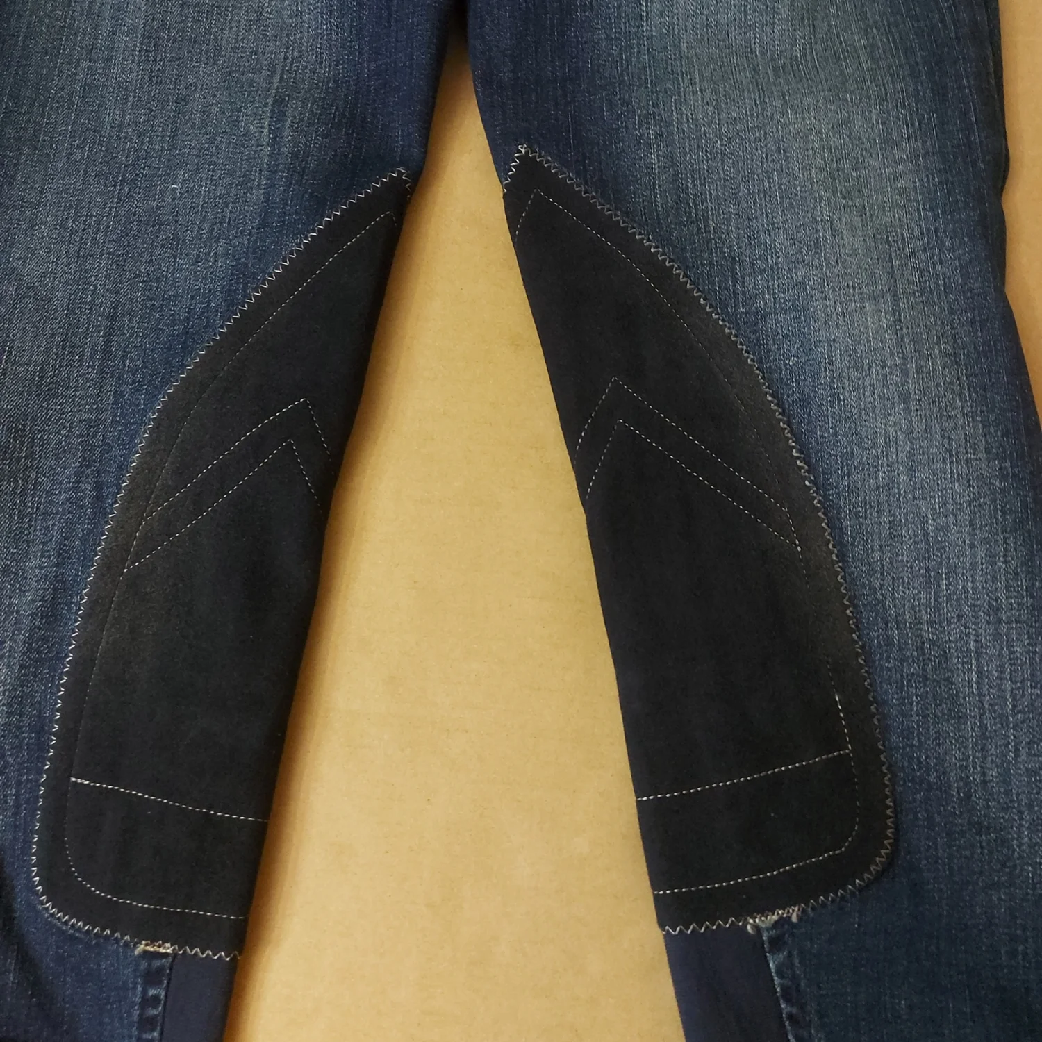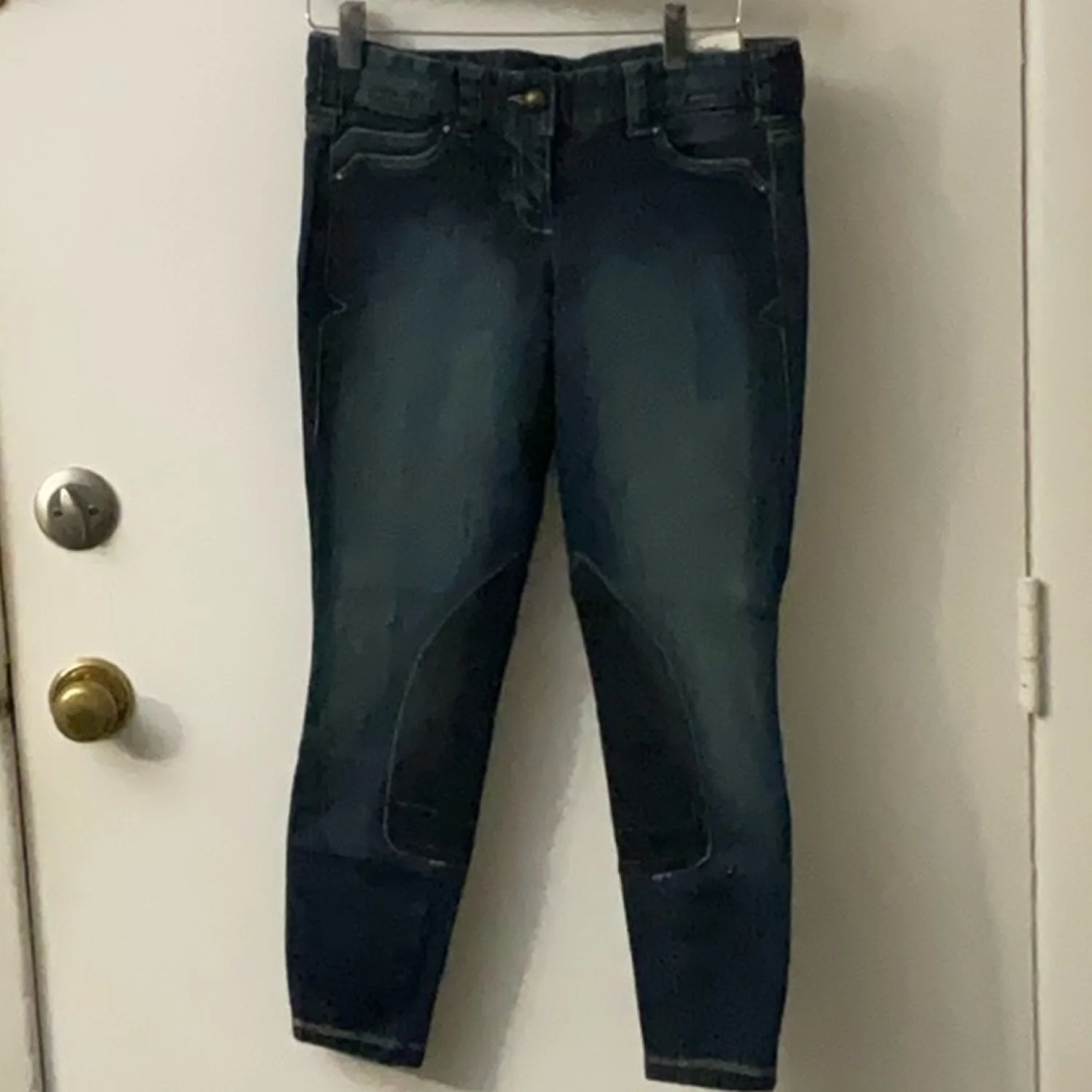 Style: Denim breech riding pants Color: Indigo (Blue) Size: 24R Waist: 15" Rise: 8" Inseam: 24" Condition: New/New with tags 91% Cotton; 7% Polyester 2% Spandex Hand or Machine Wash
