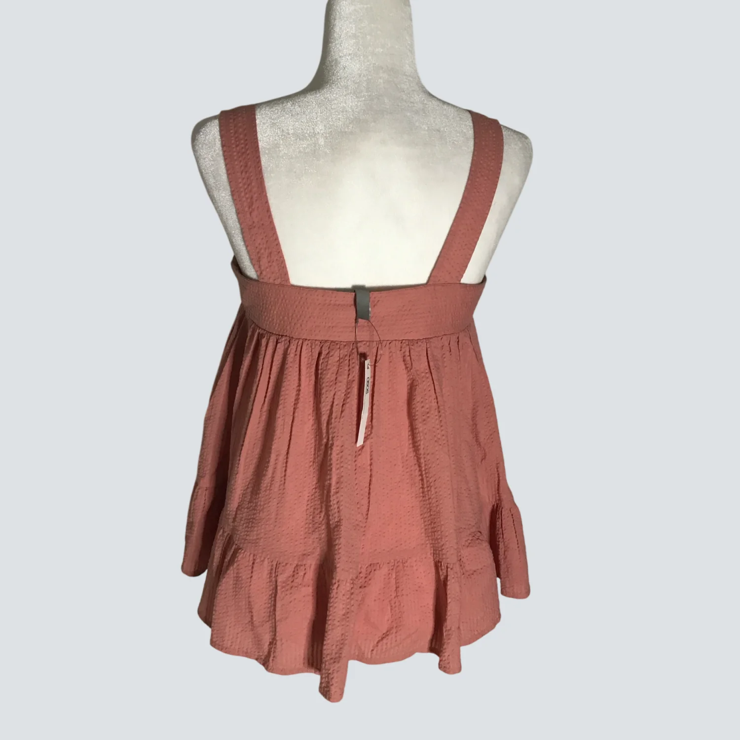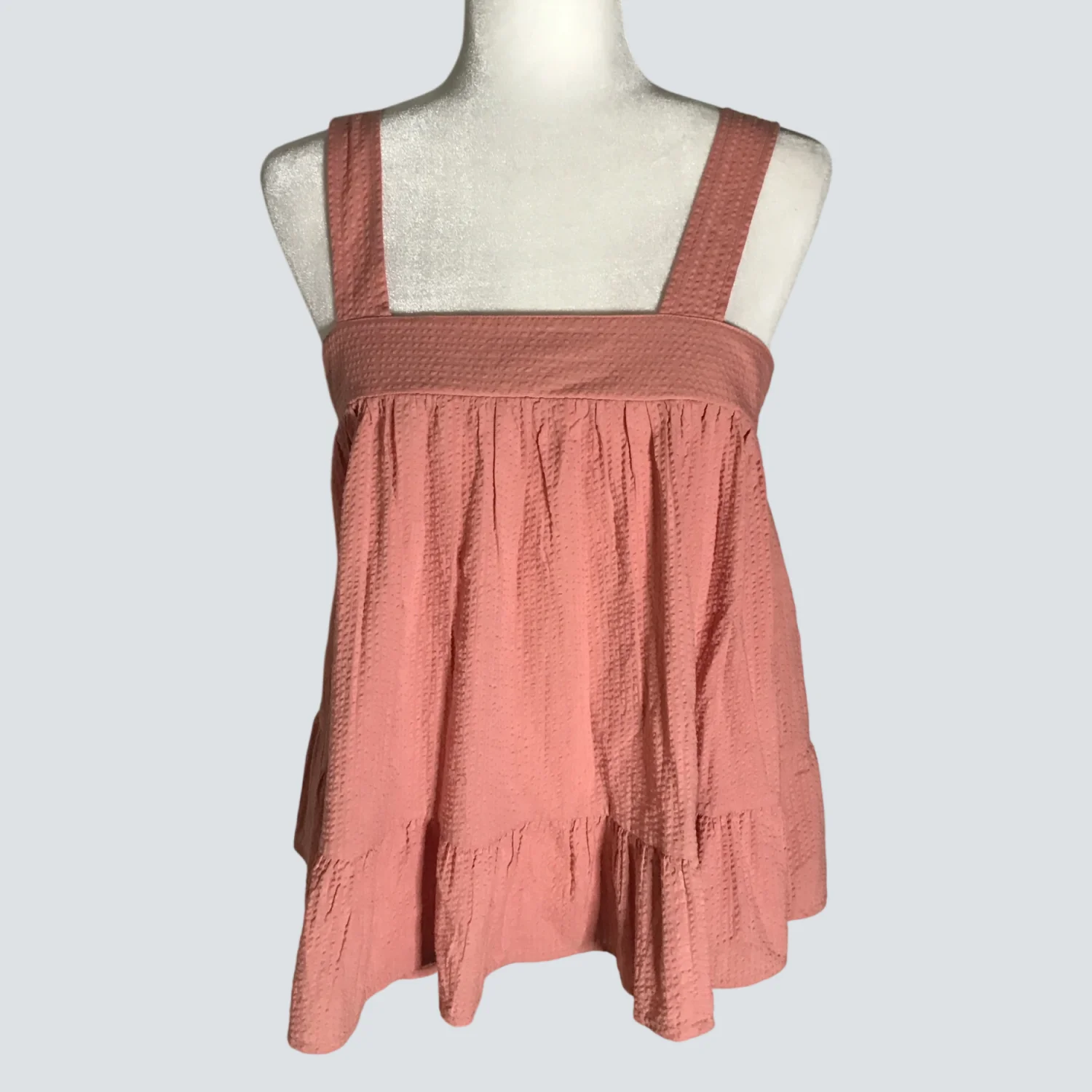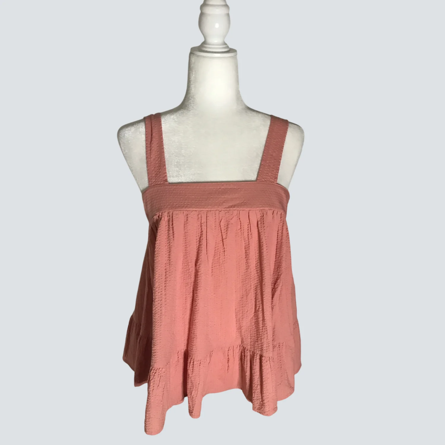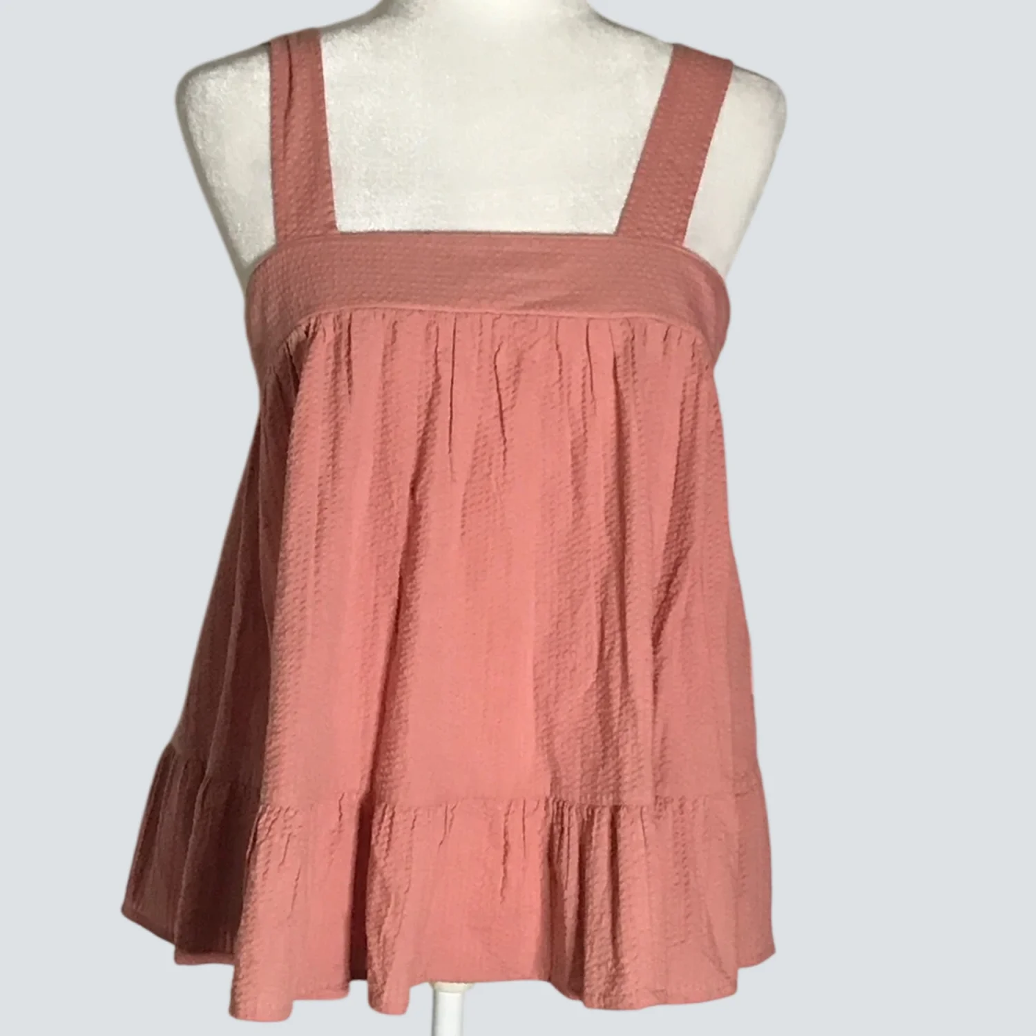 Style: Textured babydoll tank with ruffled hem Color: Pink Size: 4 Armpit: 16” Length: 24” Condition: Good 100% Cotton Machine wash