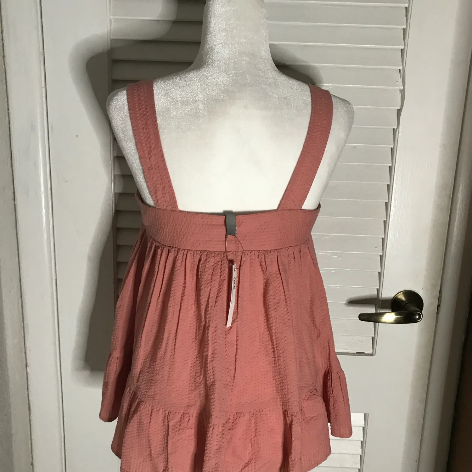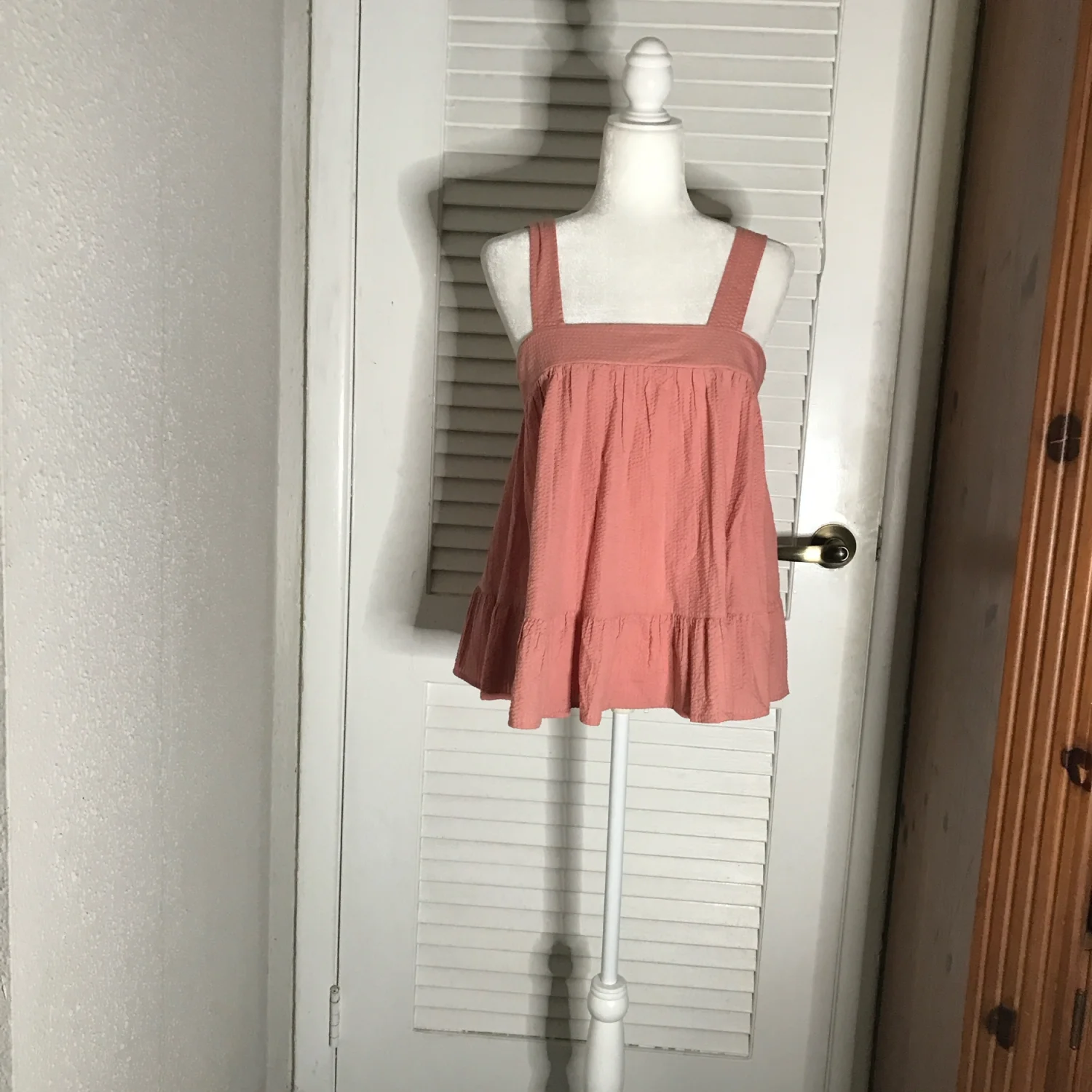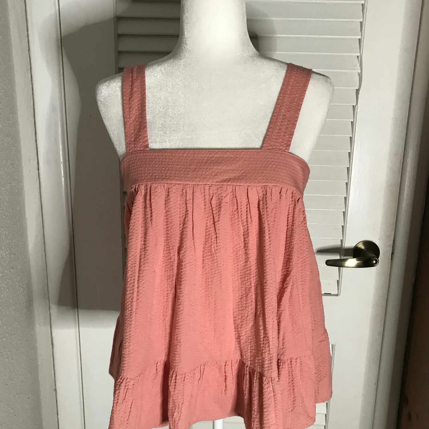 Style: Textured babydoll tank with ruffled hem Color: Pink Size: 4 Armpit: 16” Length: 24” Condition: Good 100% Cotton Machine wash