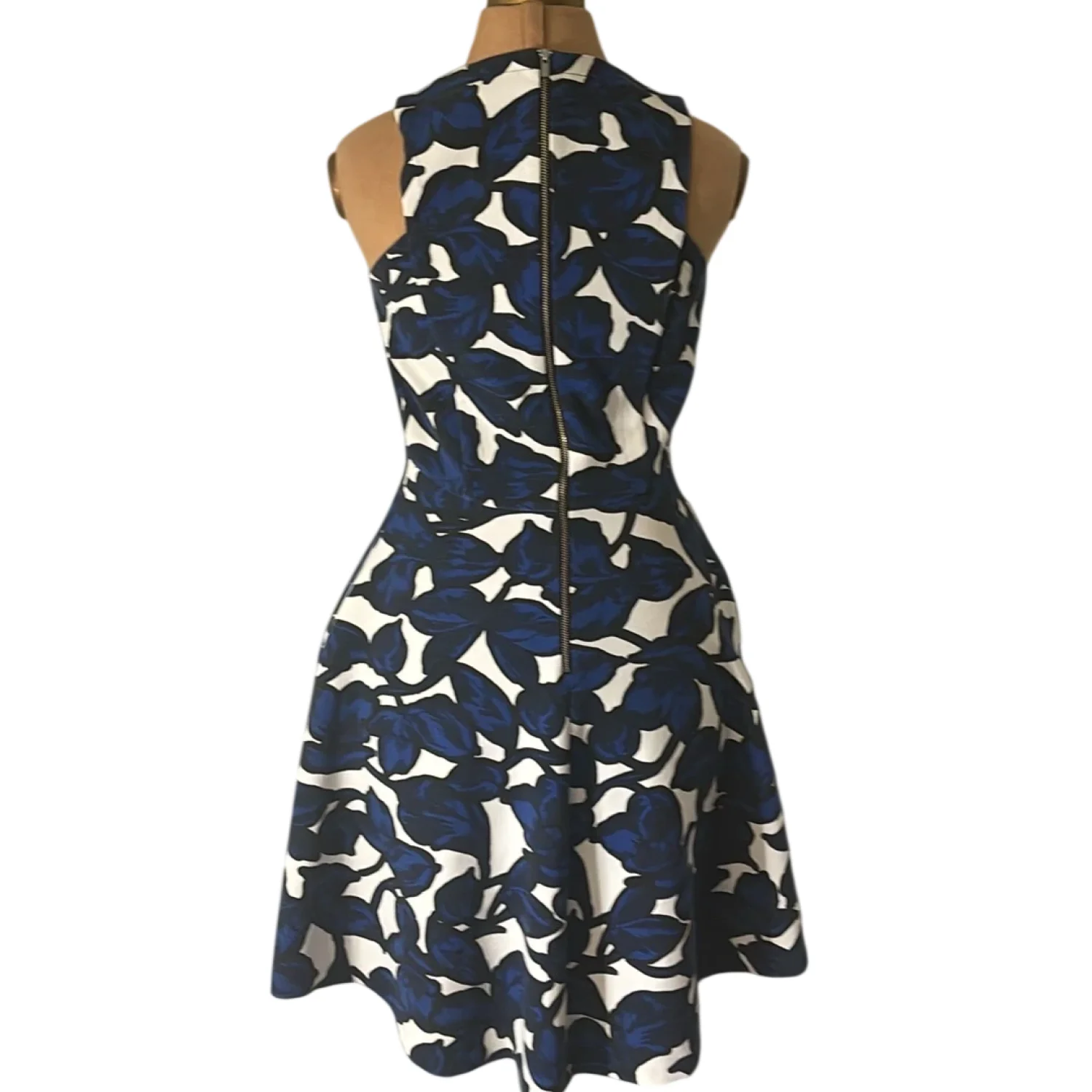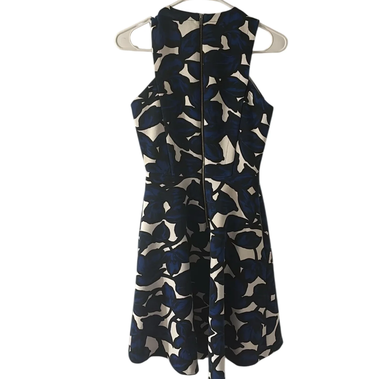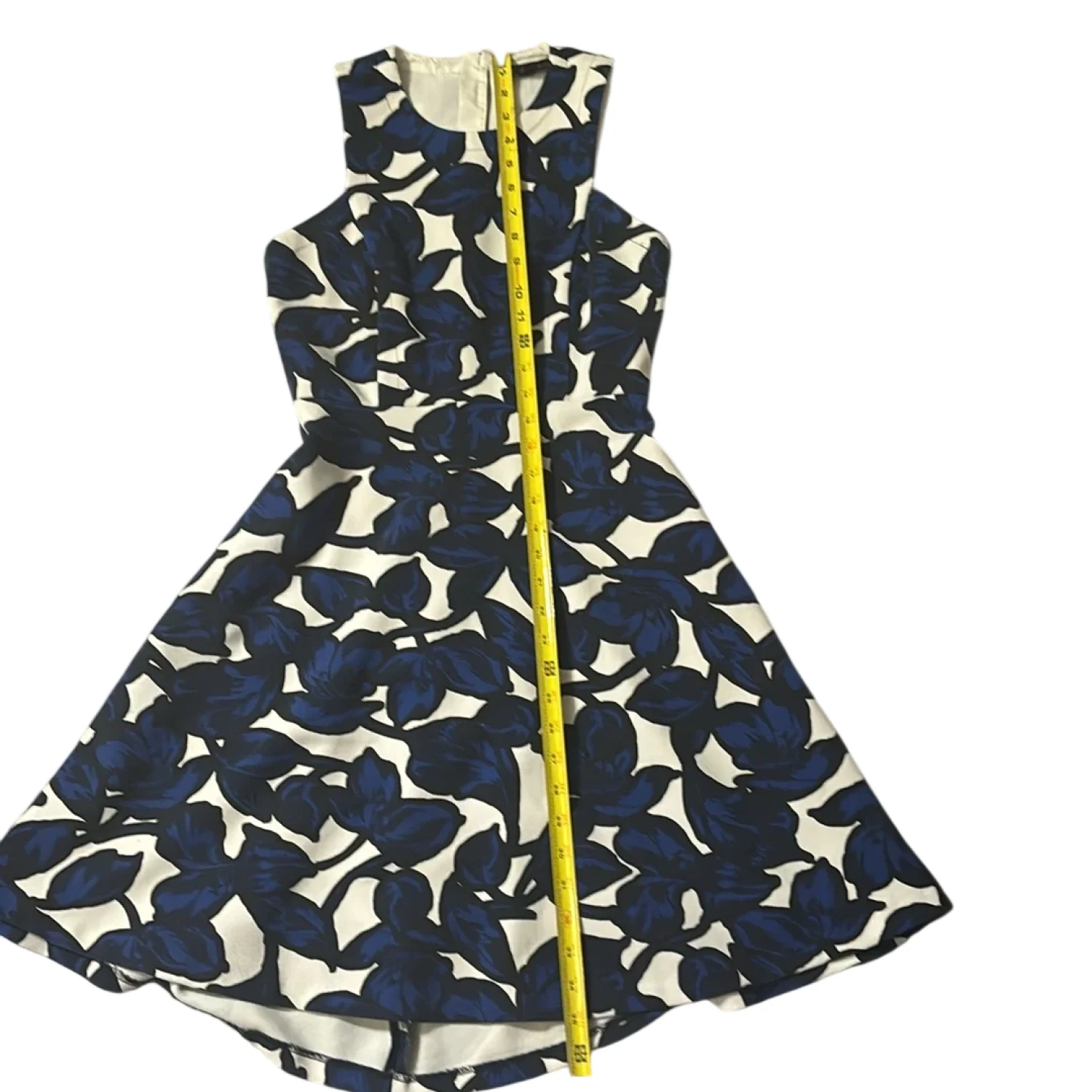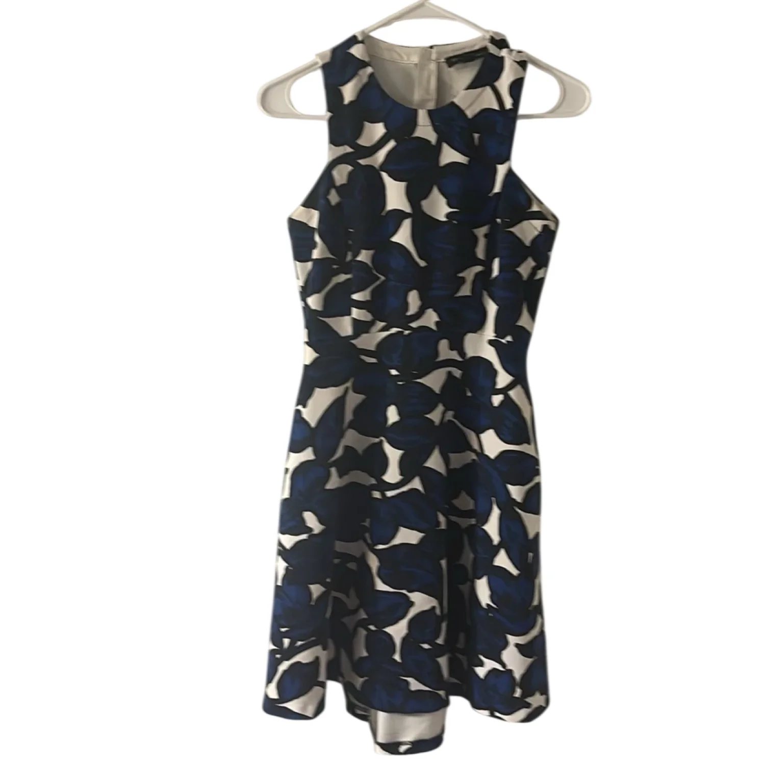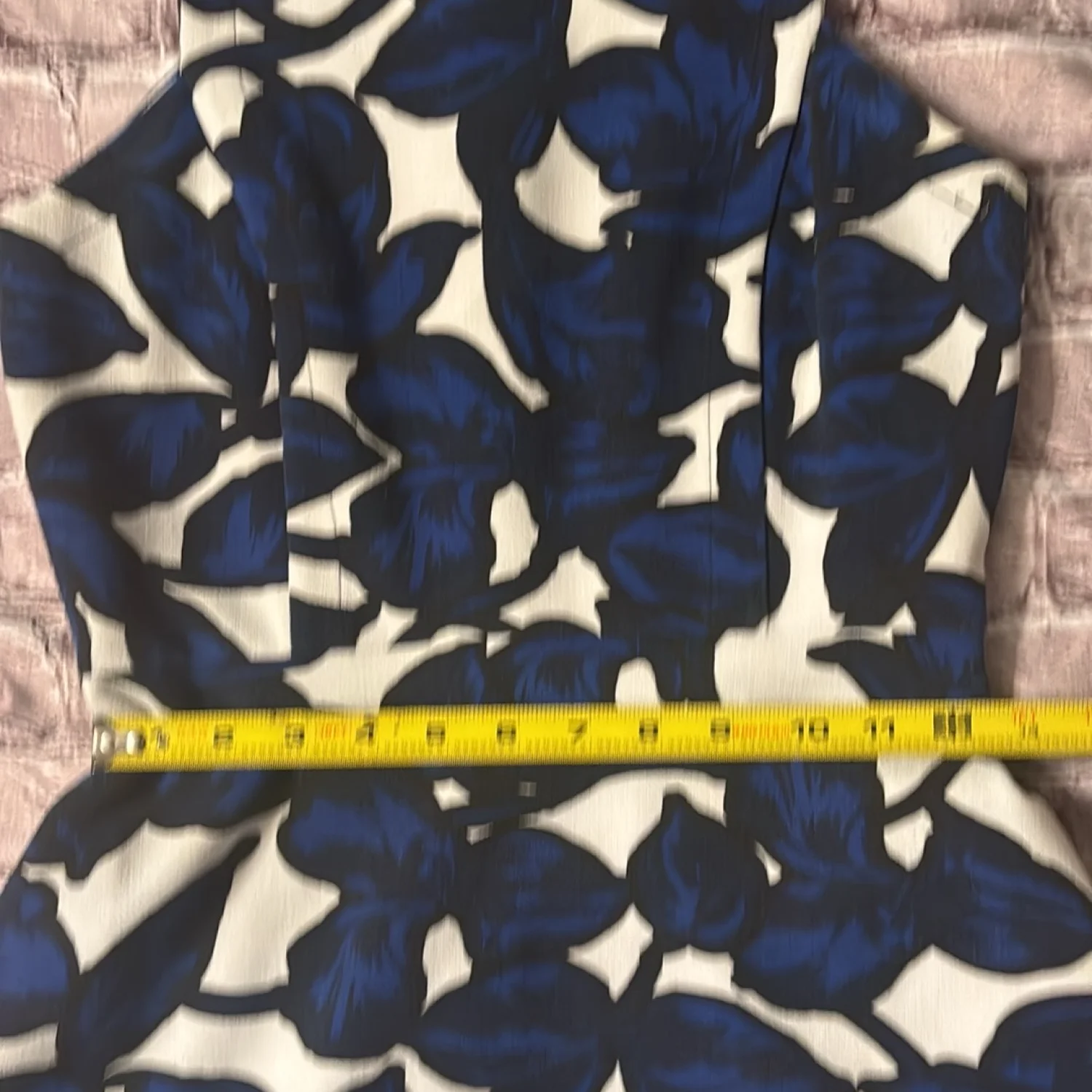 Style:: Sleeveless high low floral dress Color: Blue/Black/White Size: 0 Armpit: 15" Waist: 12" Length: 36" Condition: Good 64% Polyester 33% Viscose 3% Spandex Hand wash cold