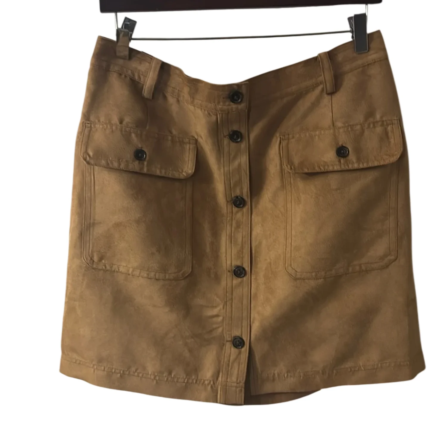 Banana Republic Factory Vegan Suede Button-down Dark Camel Mini NWT Size 12