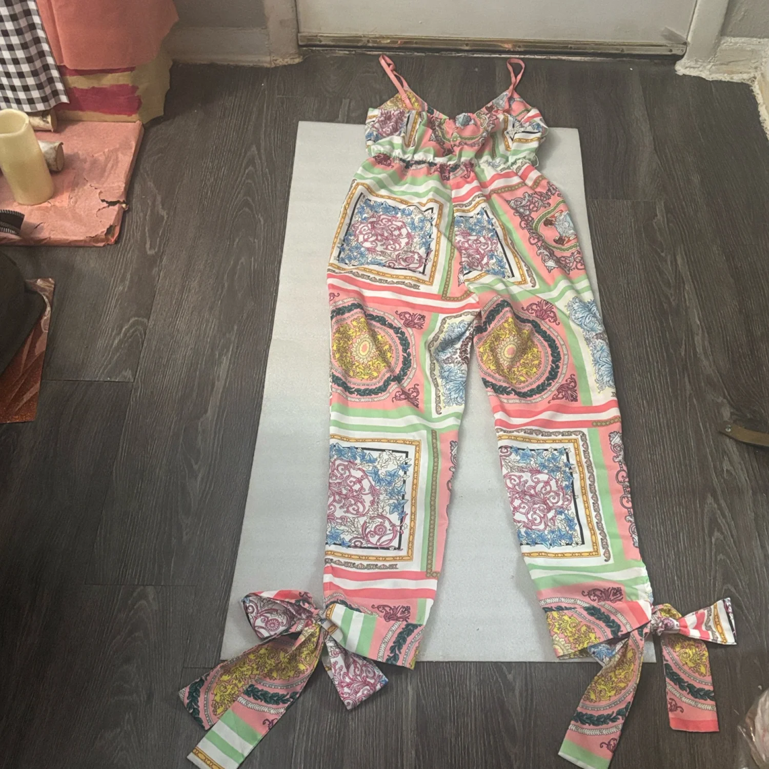 ChicMe Print Jumpsuit w/ Ankle Tie S Boho