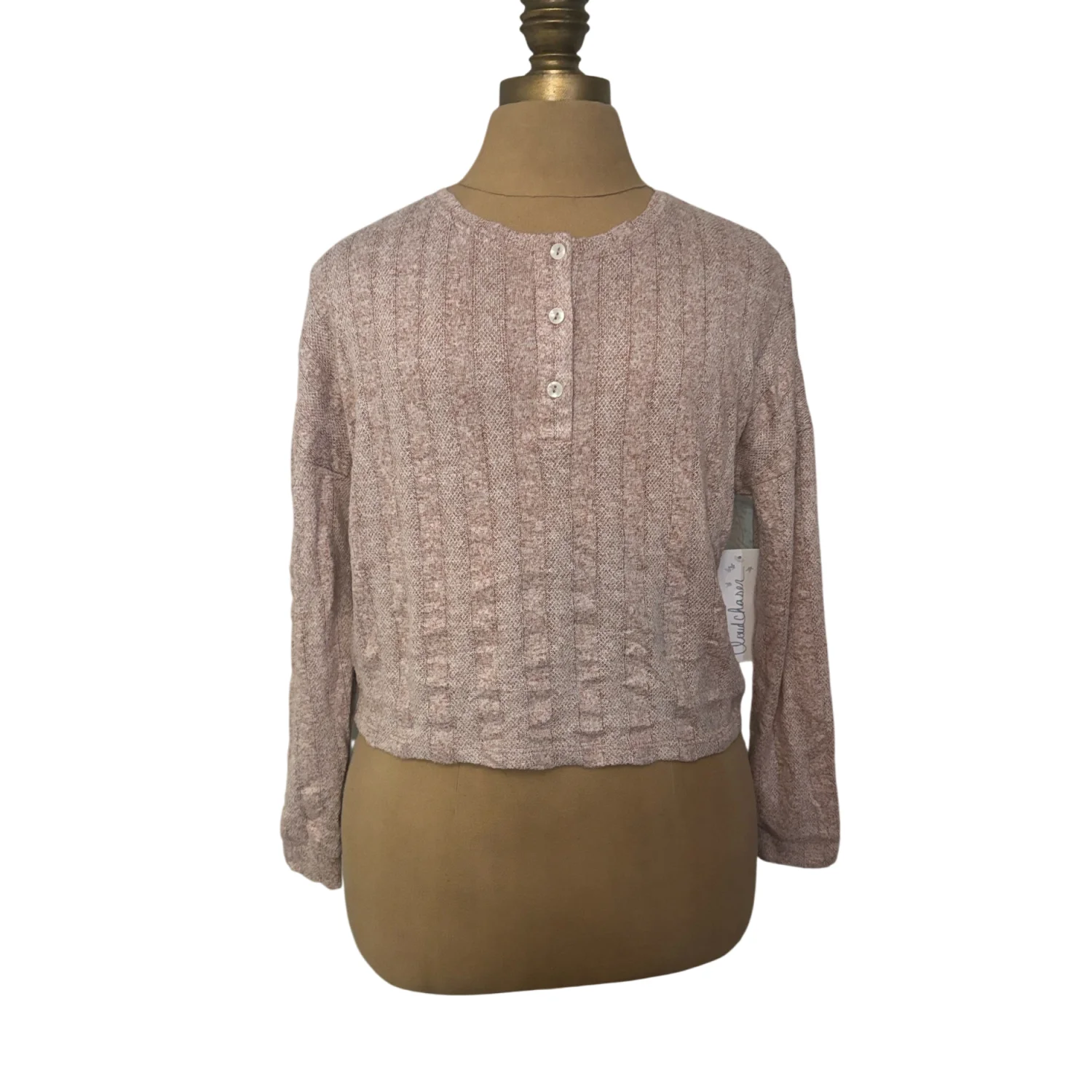 Cloud Chaser Button Down Cropped Henley Sweater XS Classic Preppy Casual Comfy