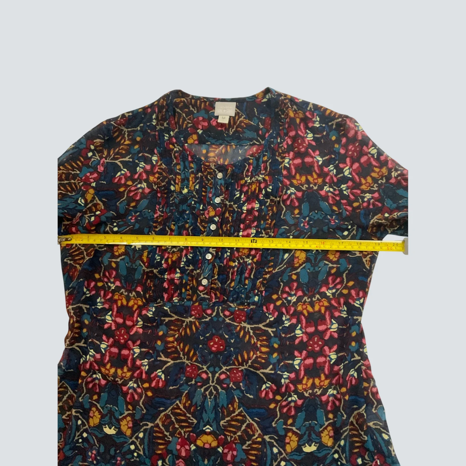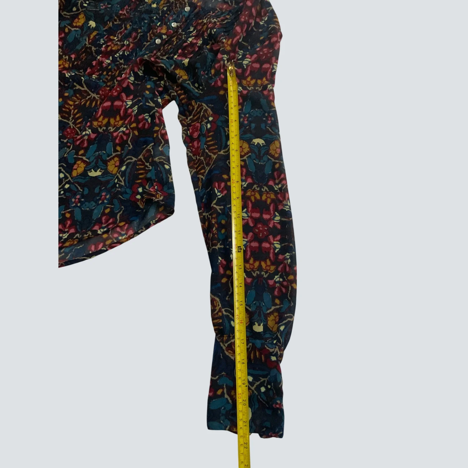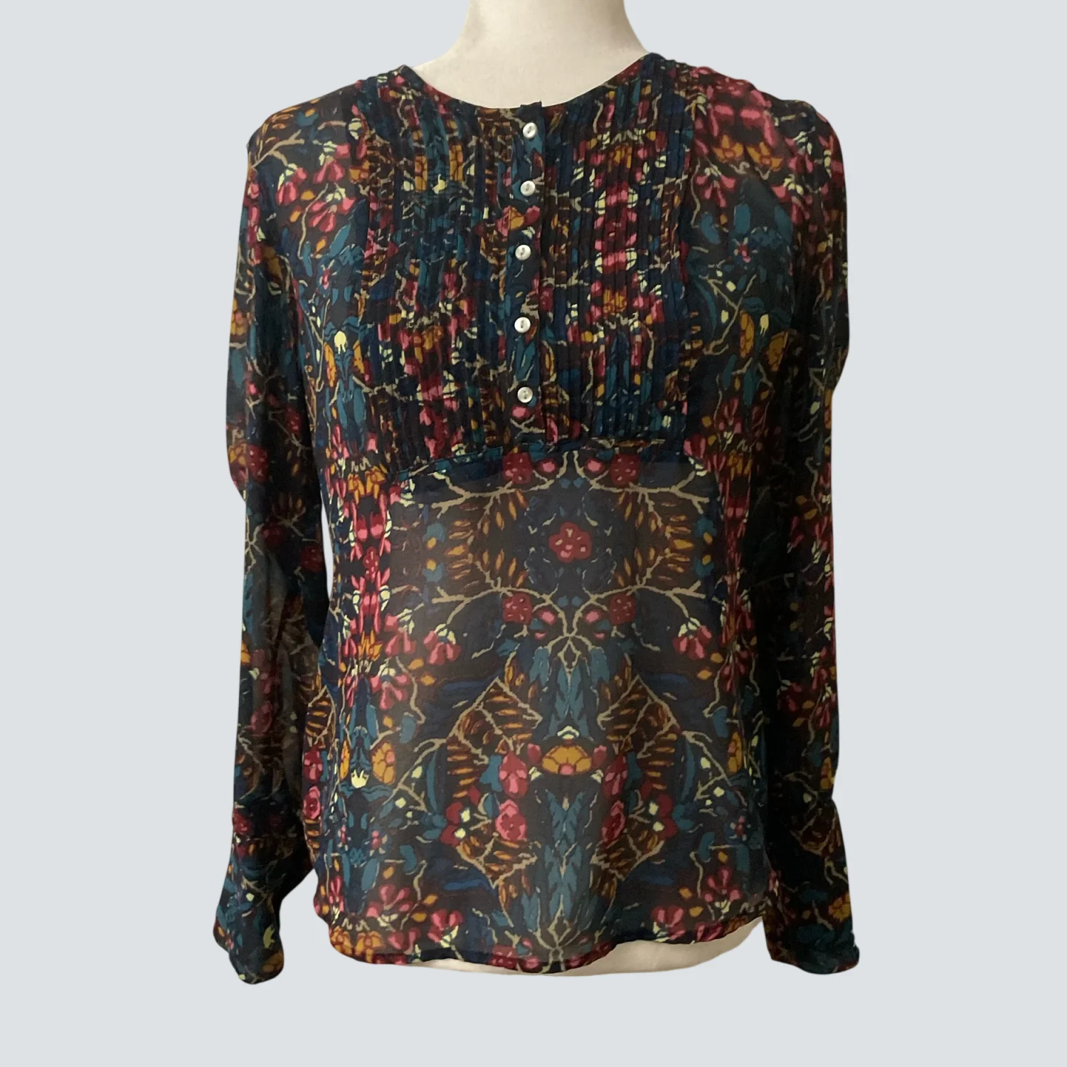 Style: Long sleeve sheer floral blouse Color: Multi-Color Size: M Armpit: 19” Length: 25” Sleeves: 21” Condition: Good 100% Polyester