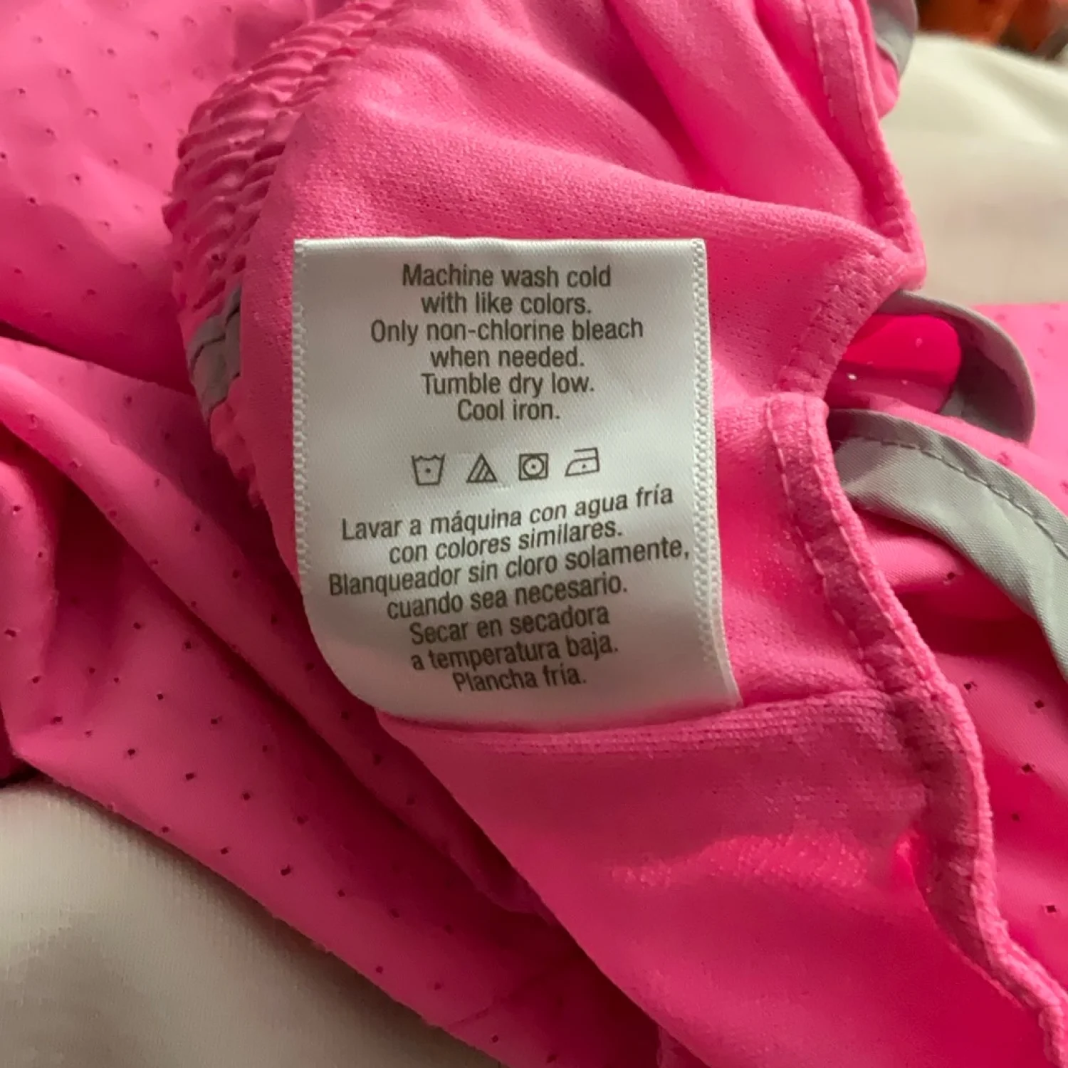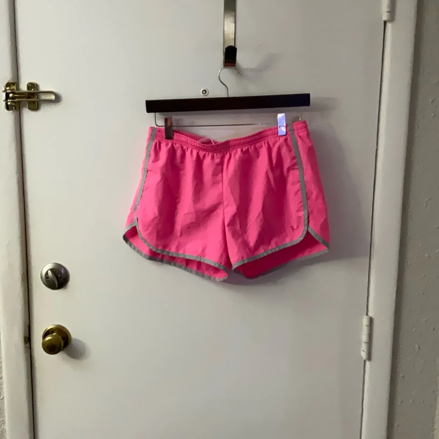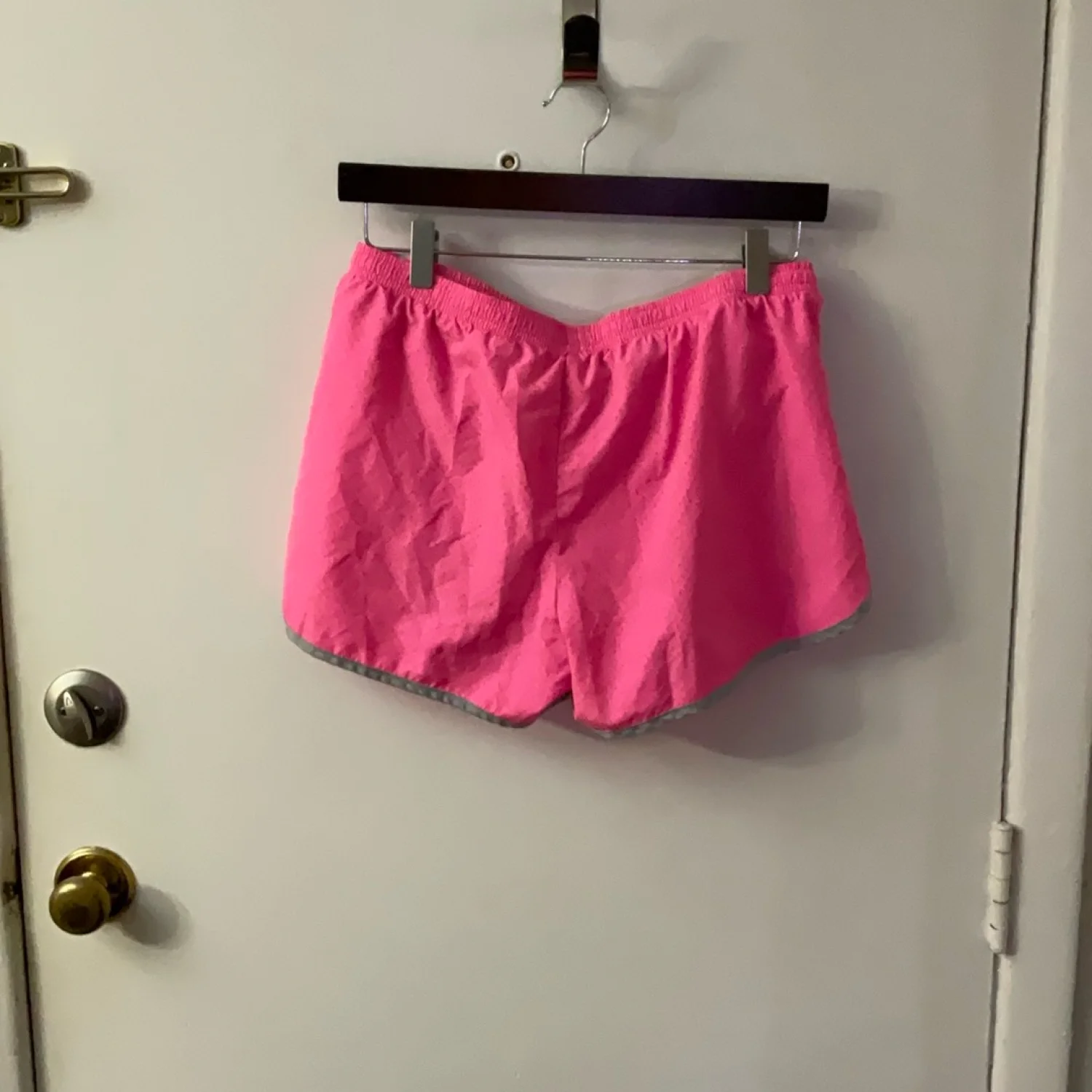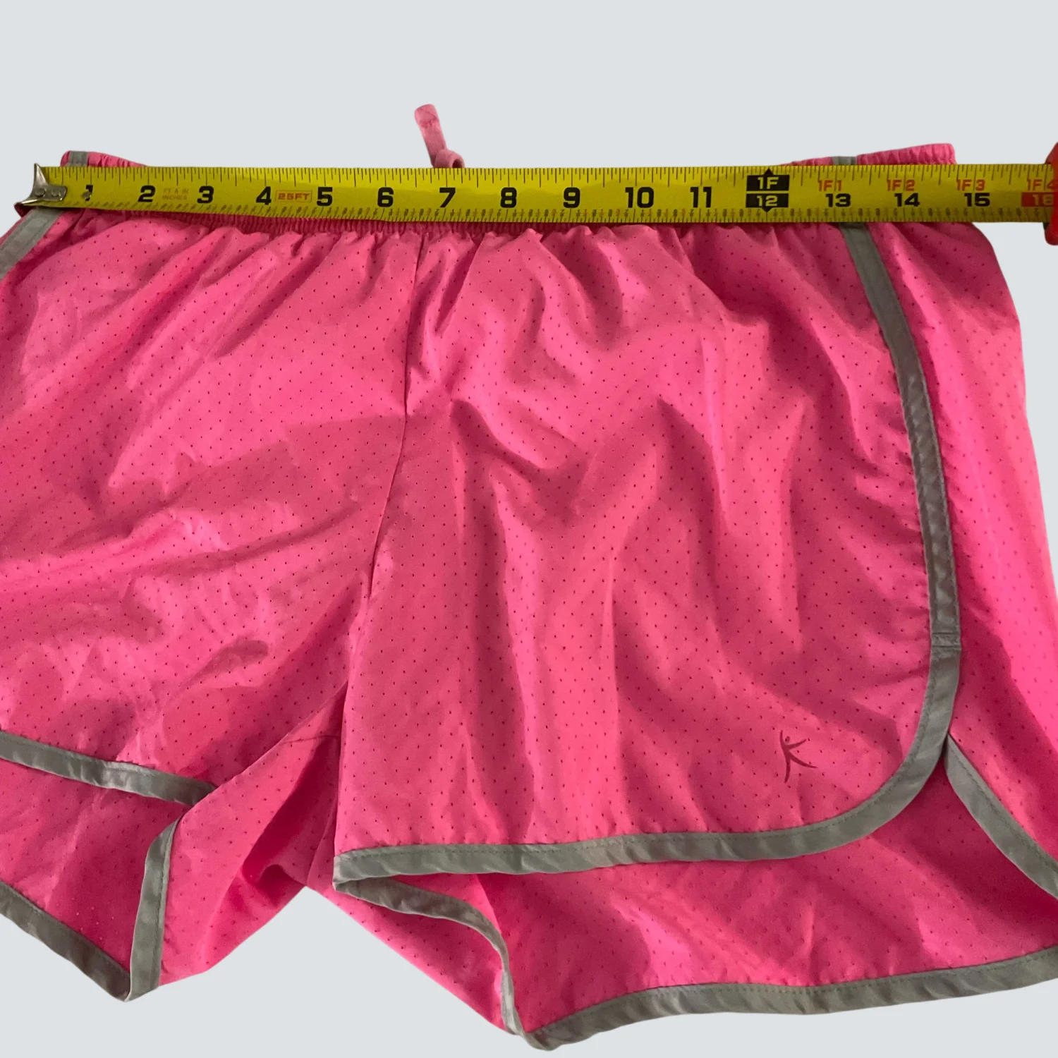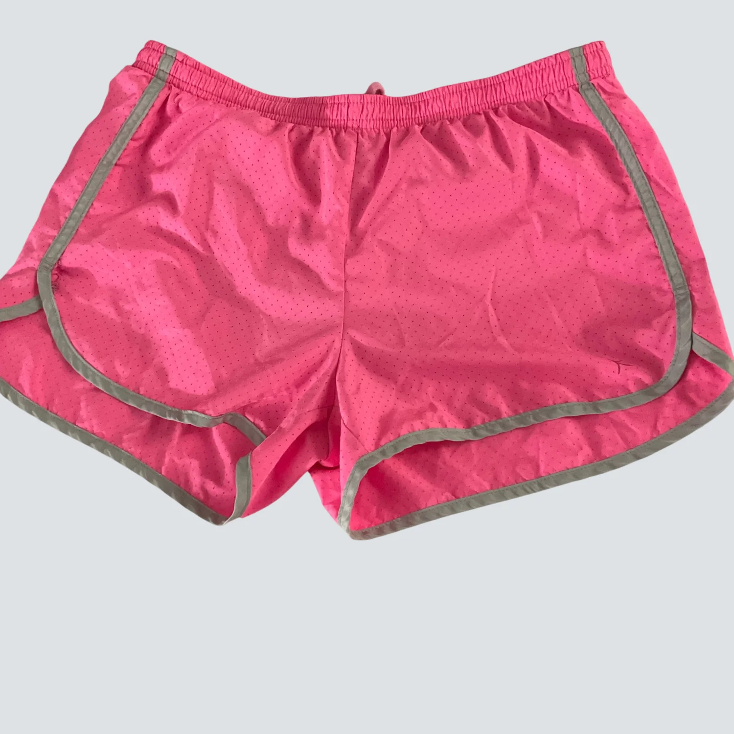 Style: Pink running short with grey trim, elastic waist ad hidden pocket Color : Pink Passion/Gray Size: S Waist: 14” Length: 12” Condition: Good 100% Polyester Machine wash cold