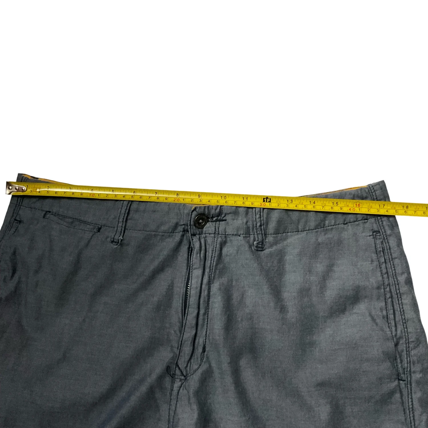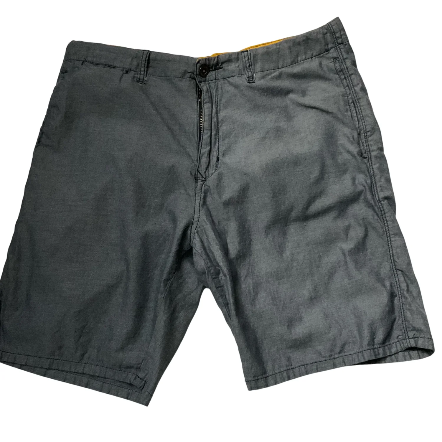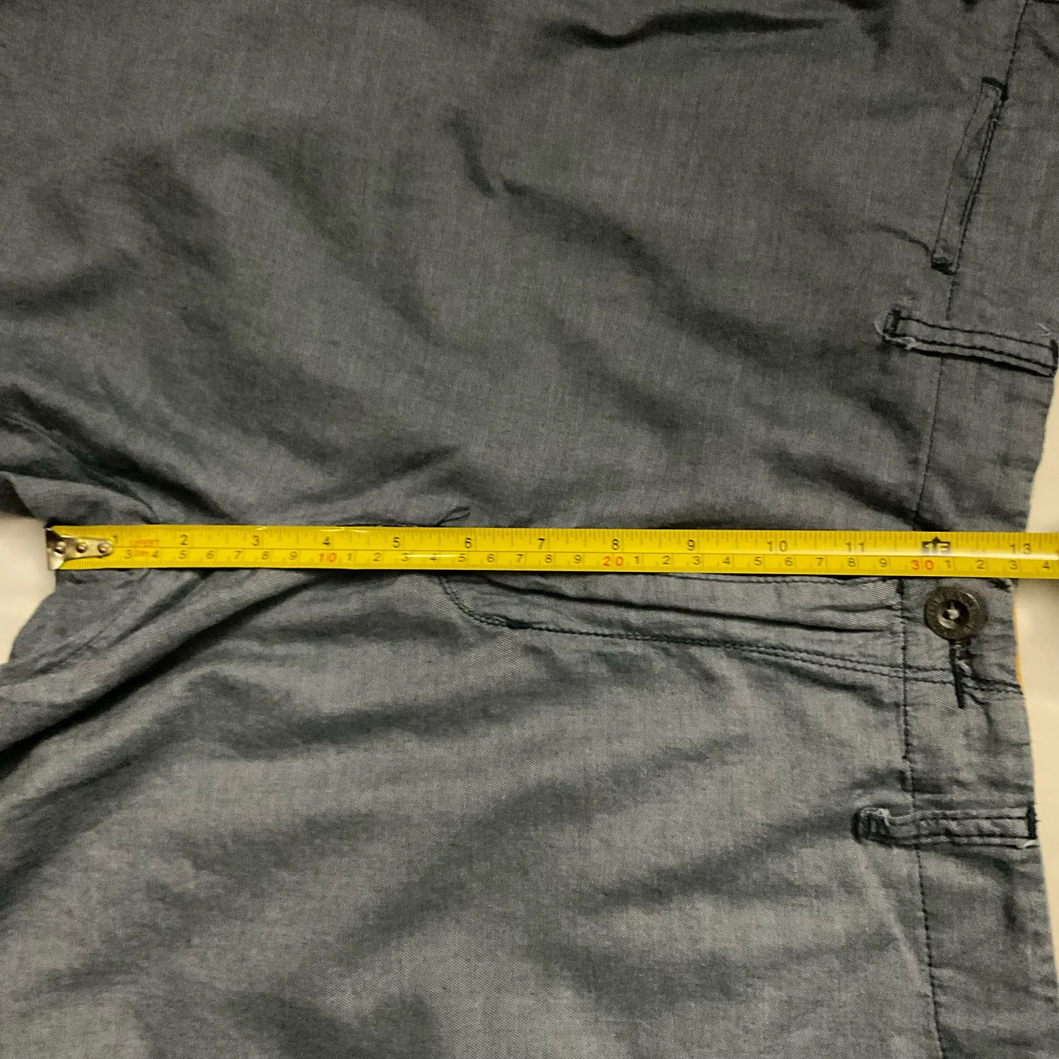 Style: 2 pocket, zip closure short Color: Chambray Size: 33W Waist: 17” Rise: 13” Inseam: 9” Condition: Good 100% Cotton Machine wash