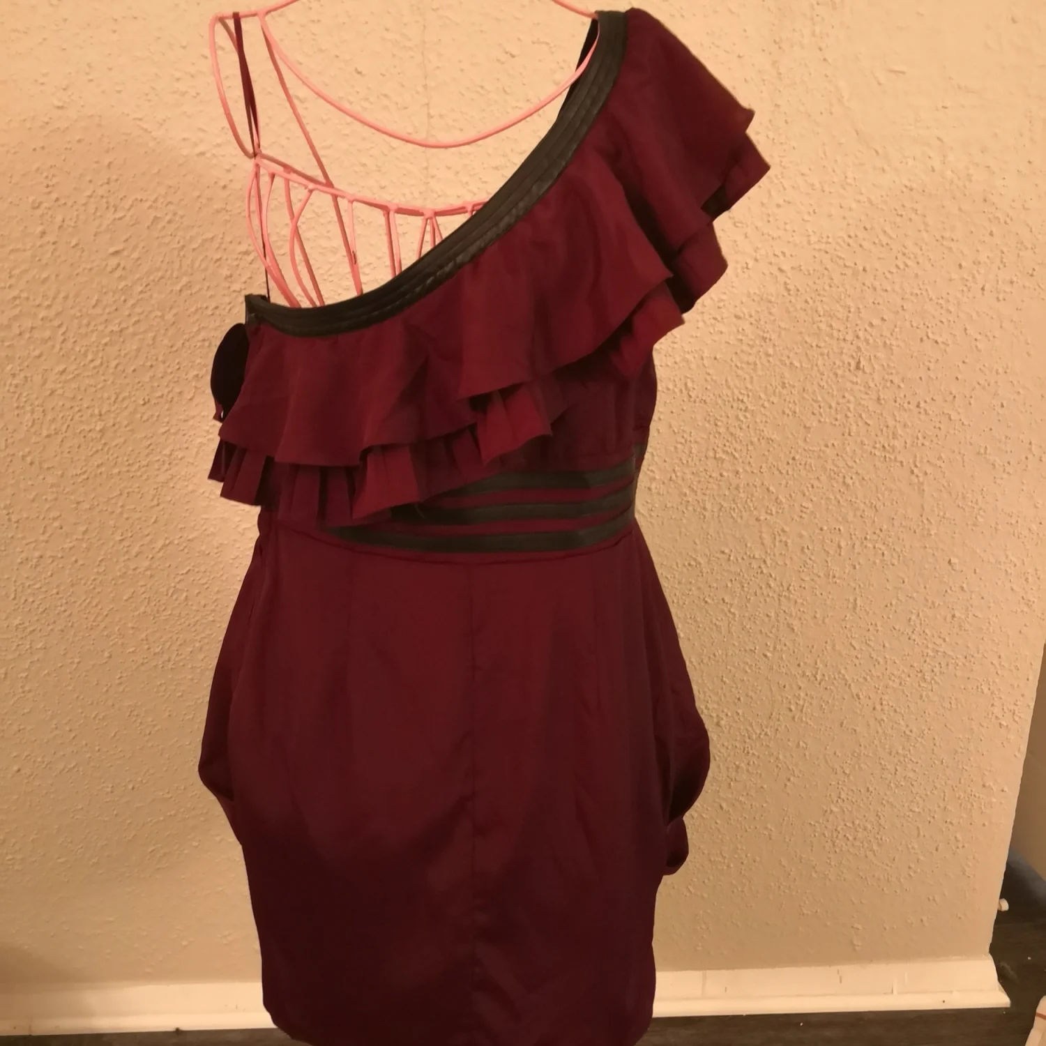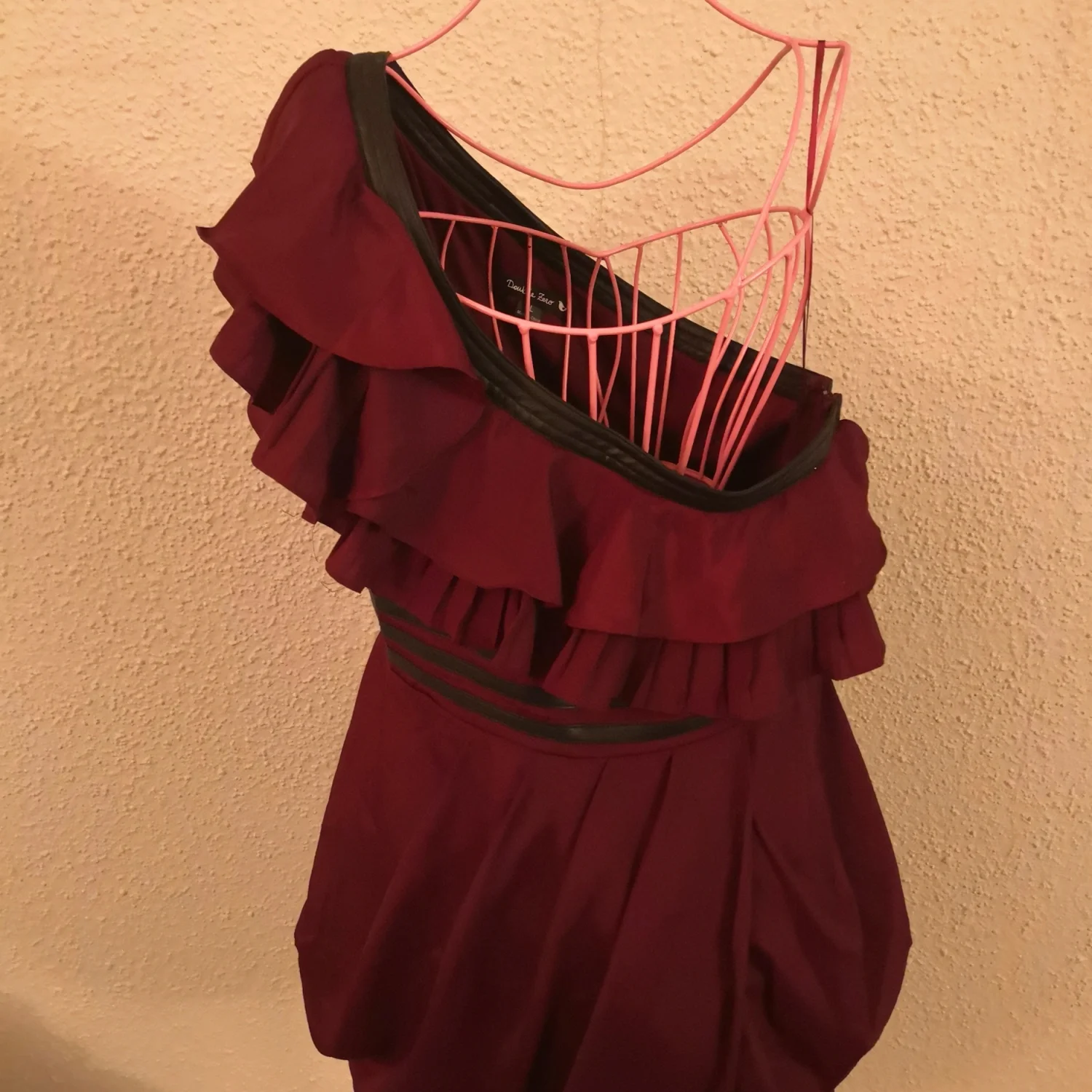 Double Zero Ruffled Burgundy Pleather One Shoulder Dress L
