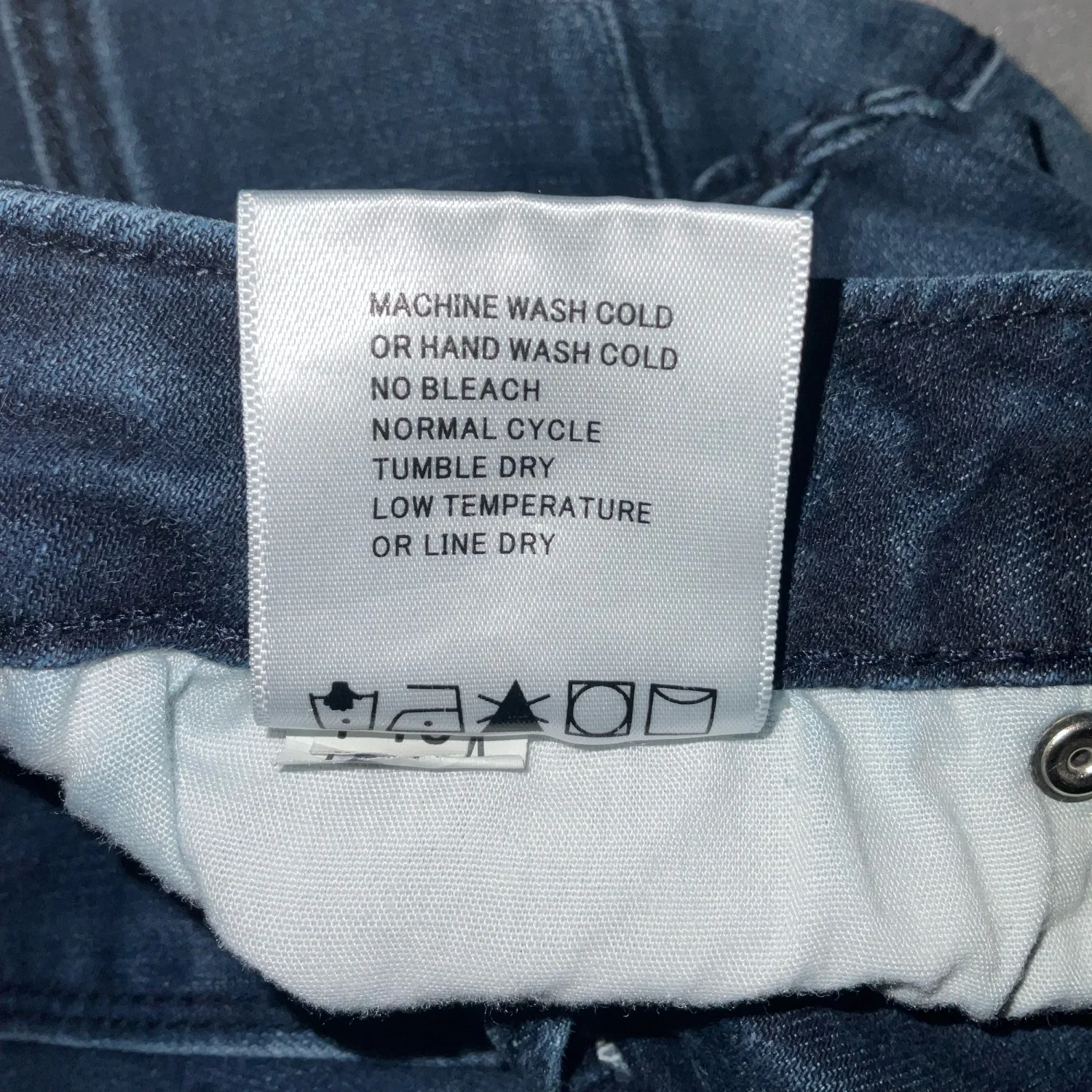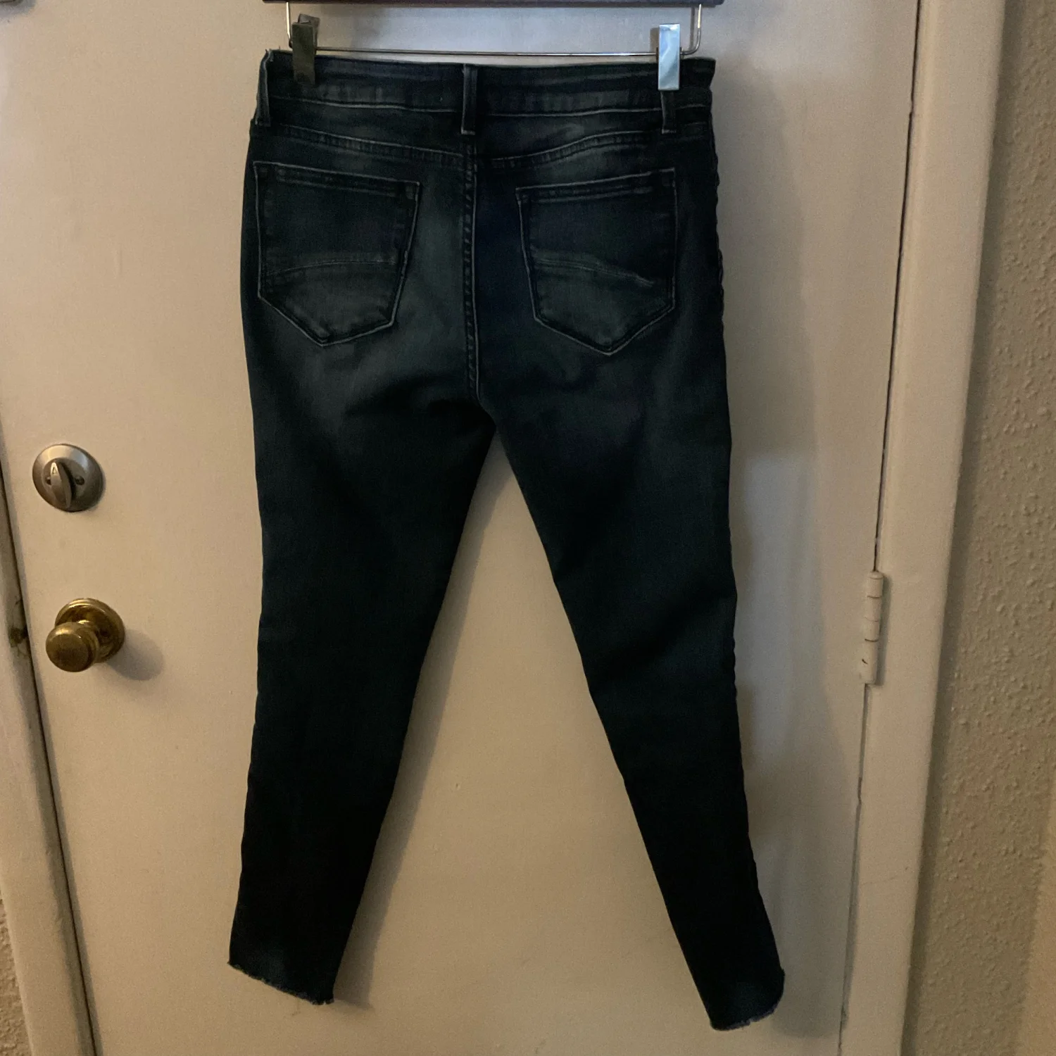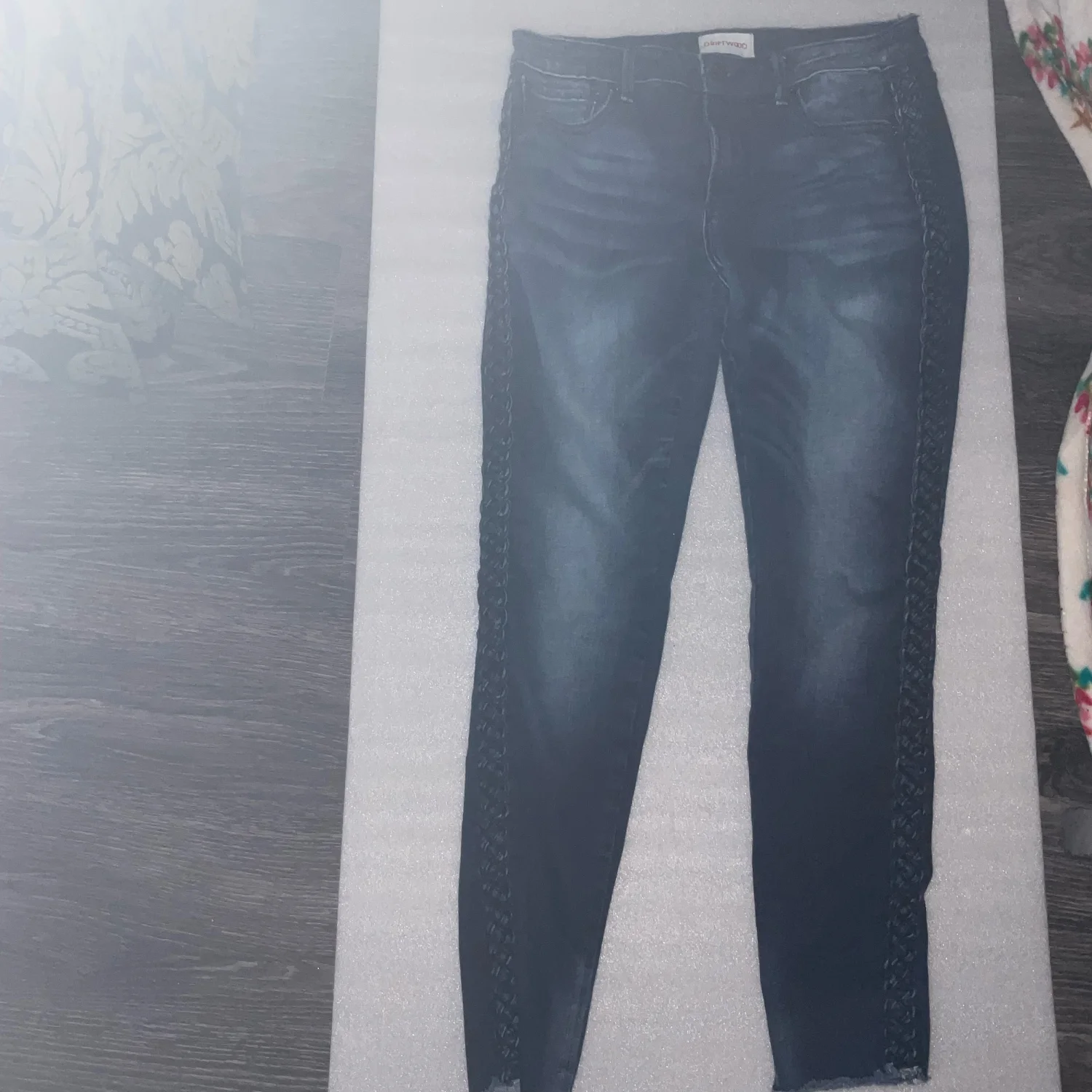 Style: Jackie slim 5 pocket jean with Braidwork down the sides of both pant legs Color: Blue Size: 27 Waist: 14” Rise: 11” Inseam: 26 Condition: Good 89% Cotton 9% Polyester 2% Spandex Machine wash cold