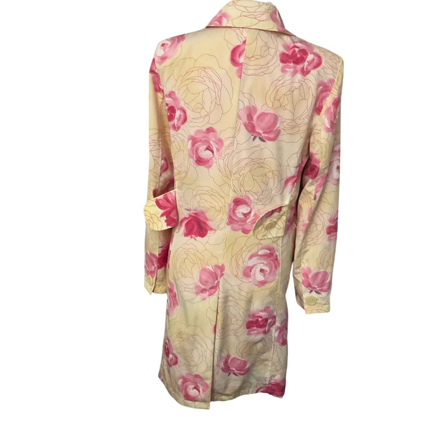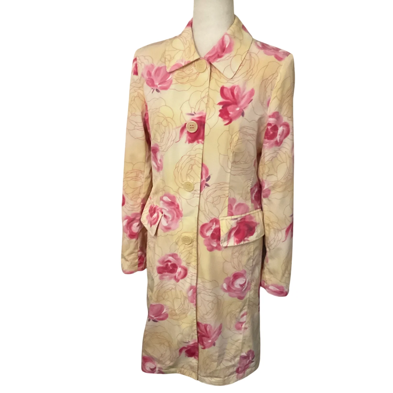 Esprit Rain Coat Trench in Watercolor Yellow/ Pink Floral Print S Dopamine