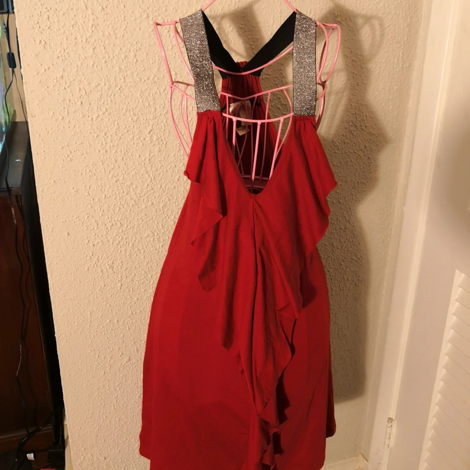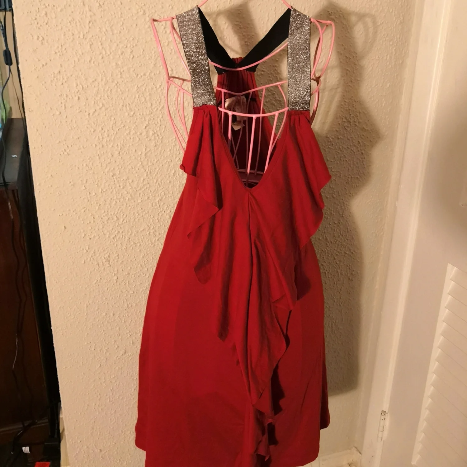 Esther Red/Silver Ruffle Racerback Mini Dress L