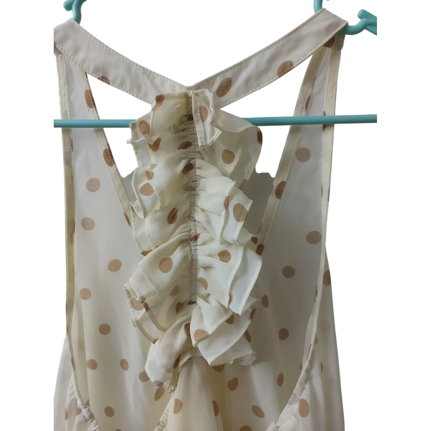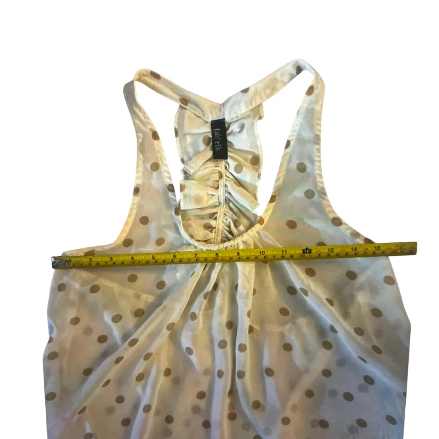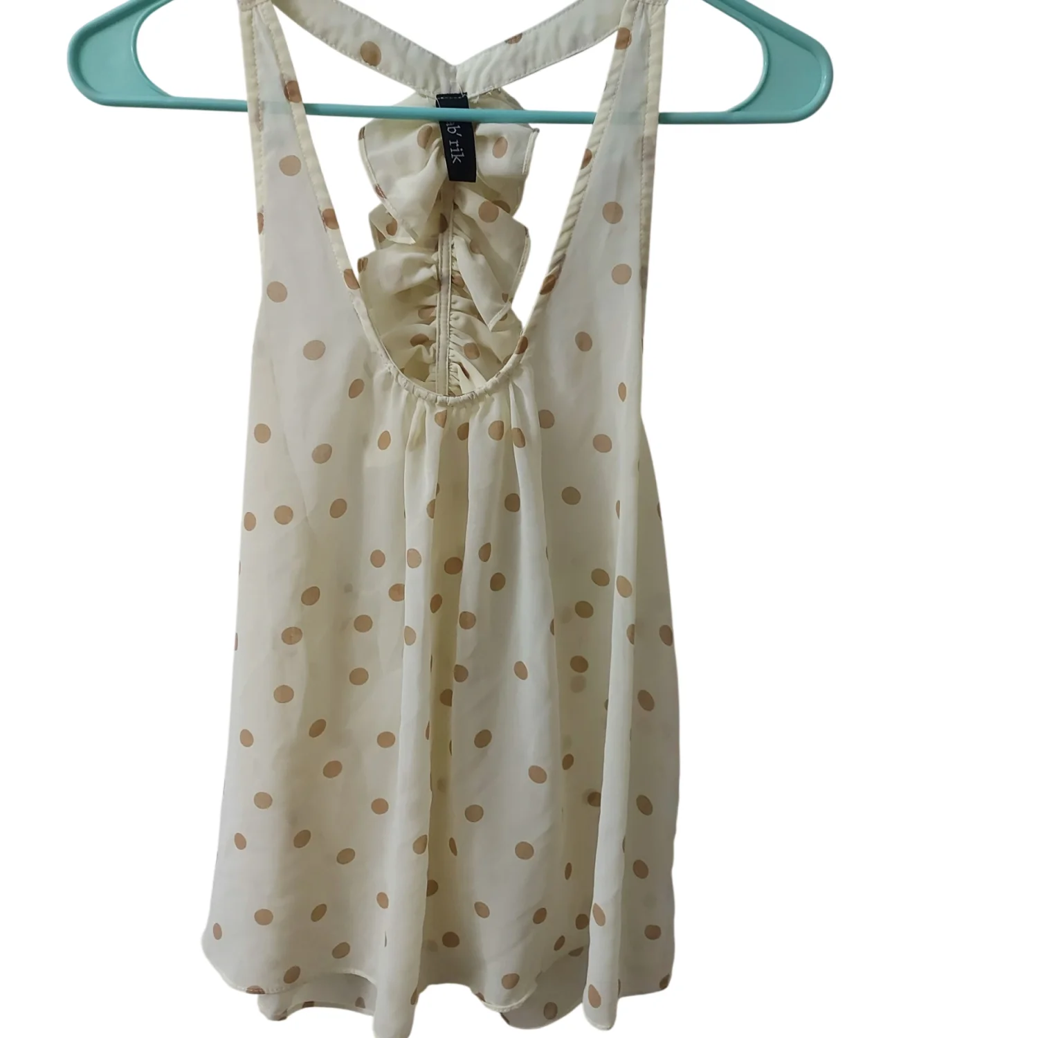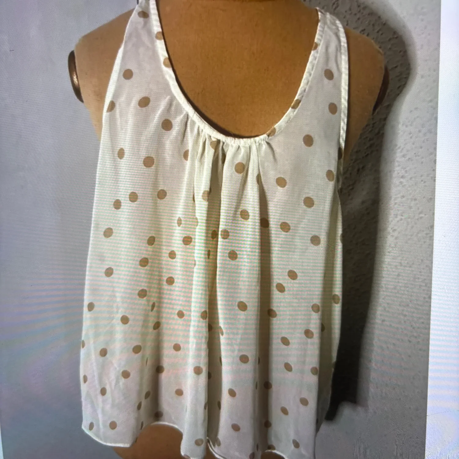 Style: Racerback tank with polka dot print Color: Cream/Beige Size: L Armpit: 15” Length: 22” Condition: Good 100% Polyester Hand Wash