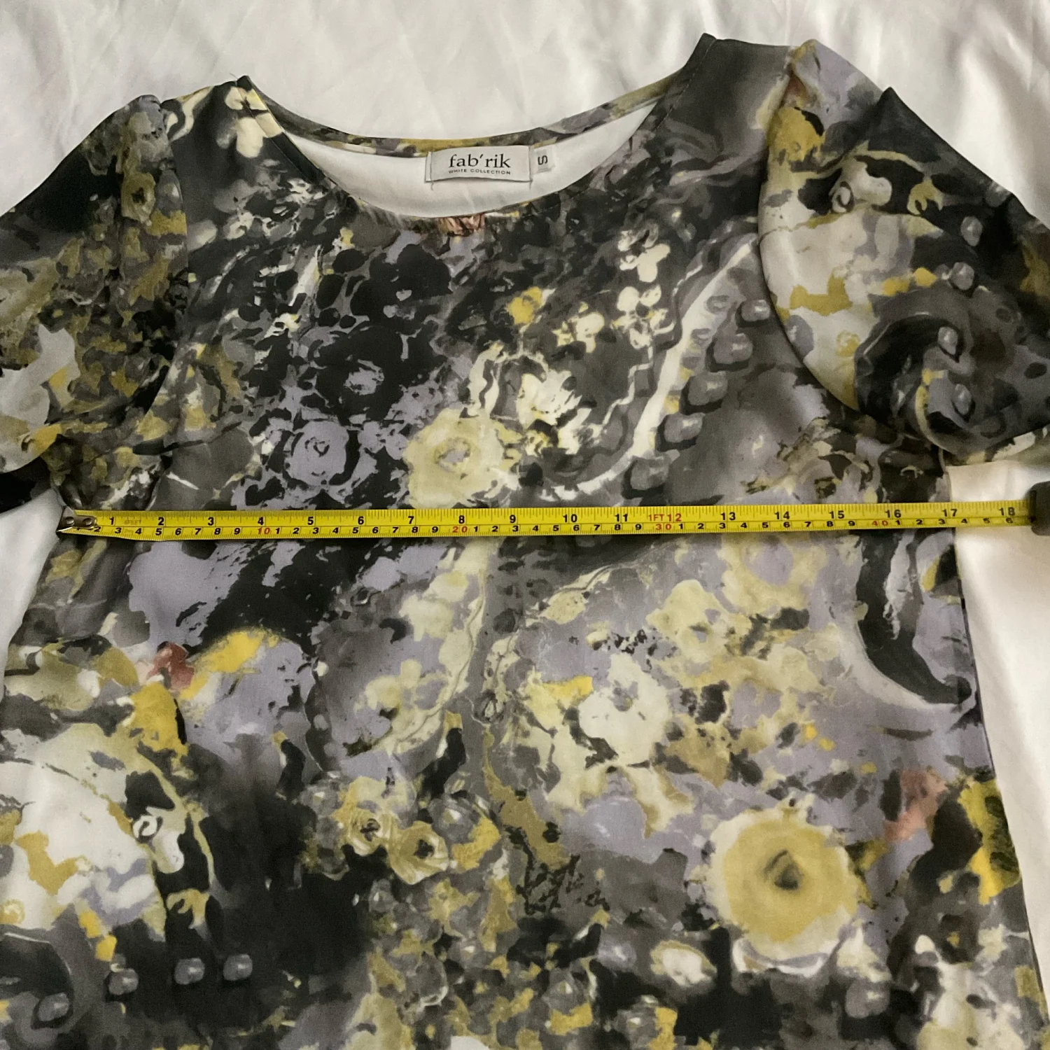 Style: Long sleeve pull on floral shift dress Color: Gray/Yellow/ White Size: S Armpit: 17” Length: 32” Condition: Good