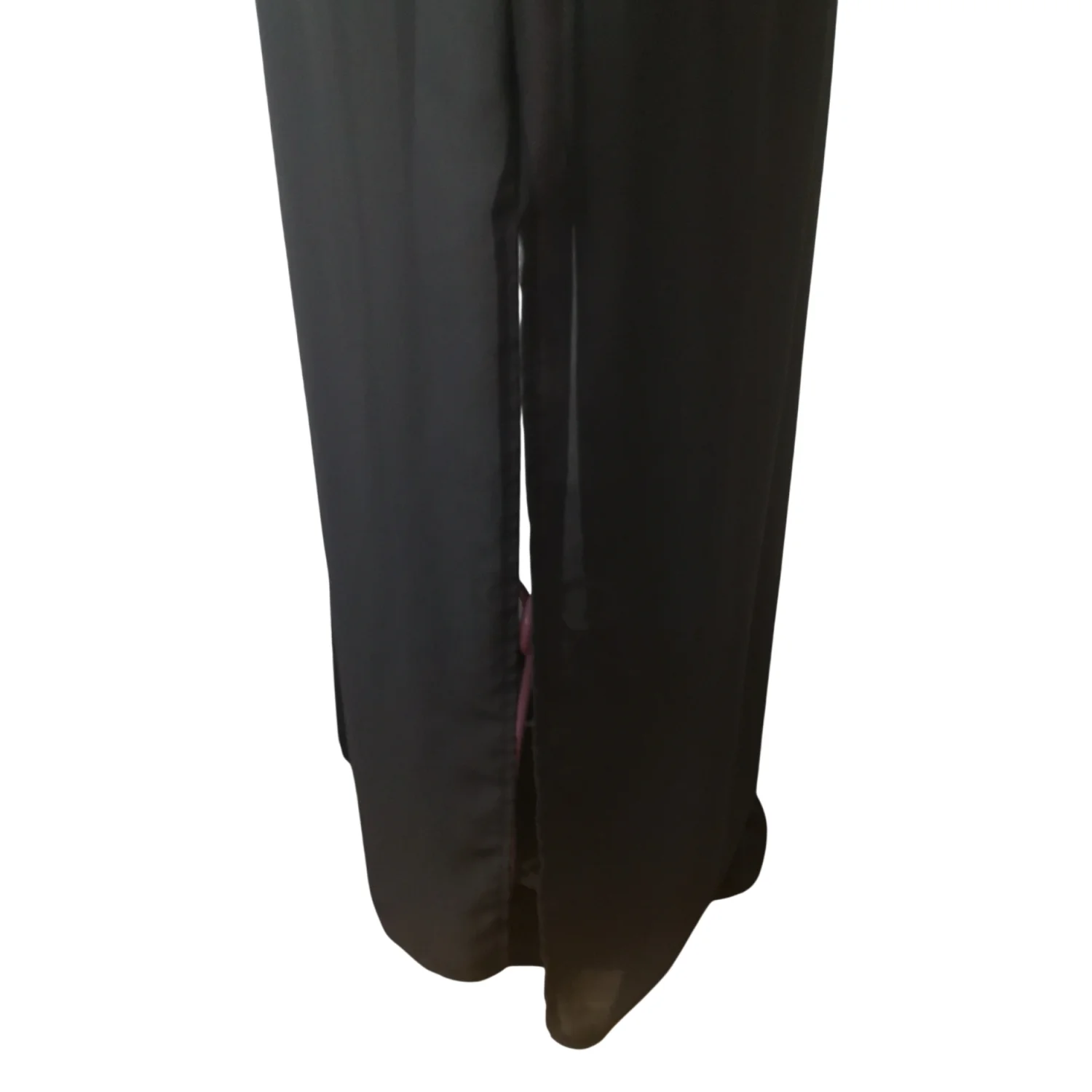 Style: Sheer maxi skirt with short under layer skirt slits on both sides. Could be used as a bathing suit coverup as well. Size: S Waist: 12" Length: 36" Condition: Good Machine washable