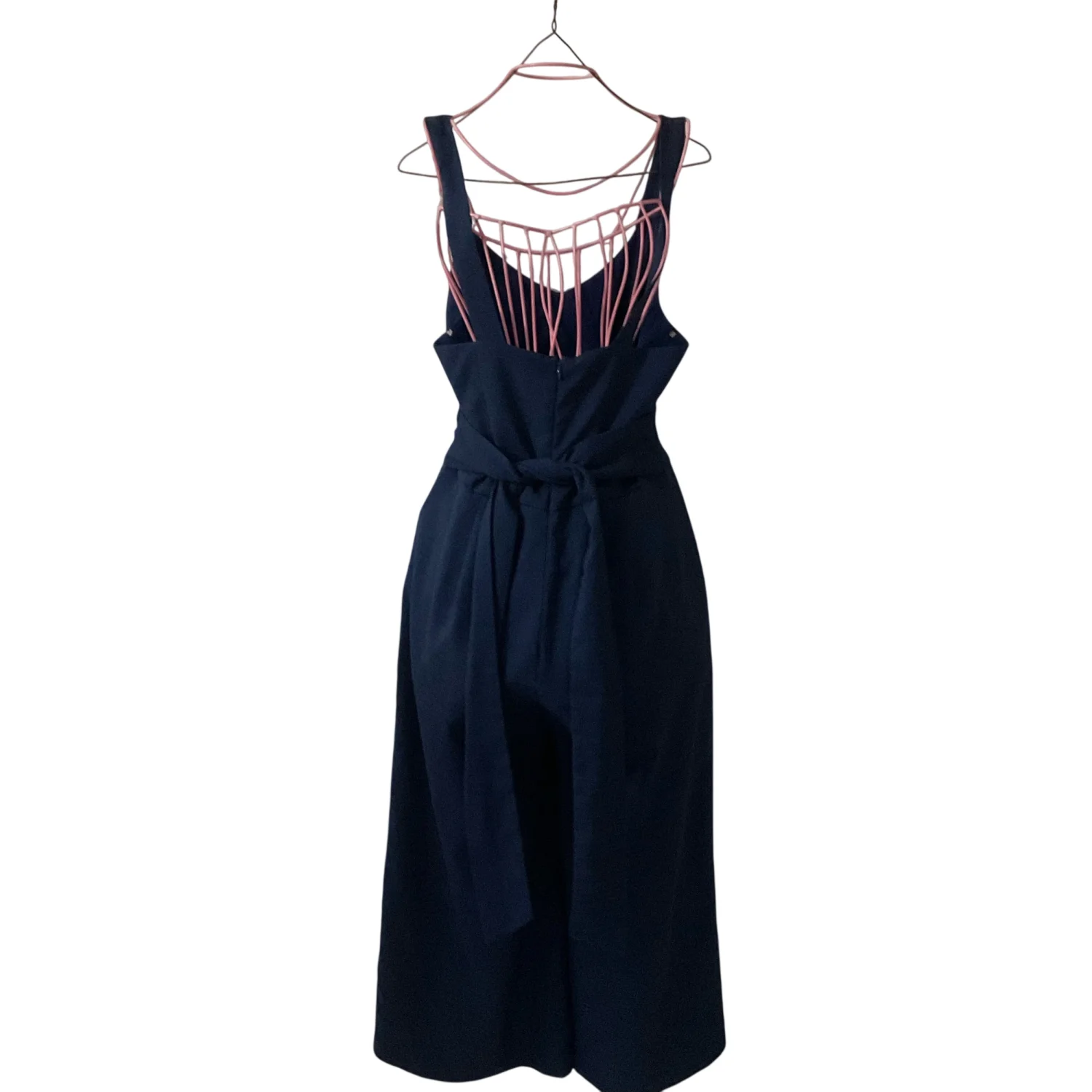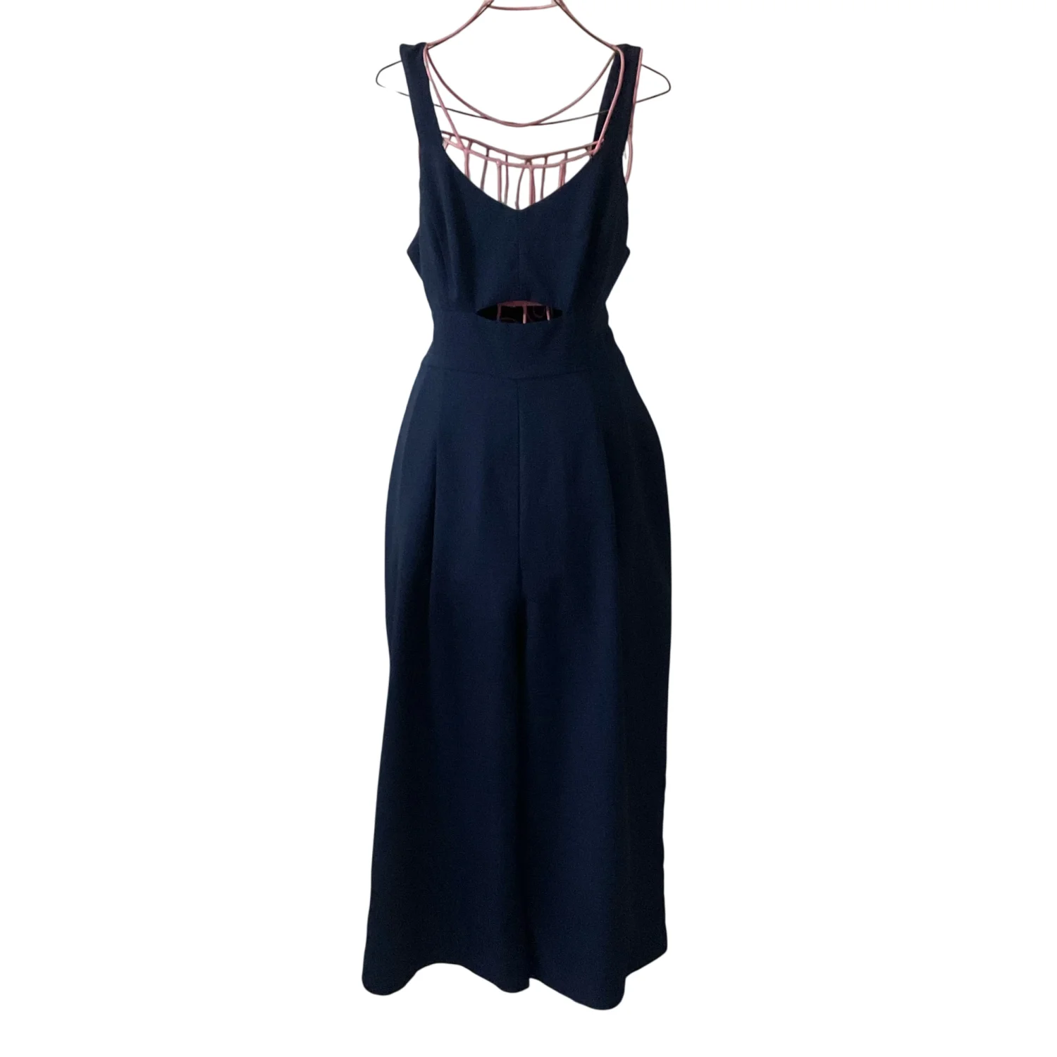 Style Sleeveless tank jumpsuit with cut out in front.side. Adjustable tie belt Color: Navy Size: S Armpit: 13" Rise: 13" Length: 21" Condition: Good Machine wash