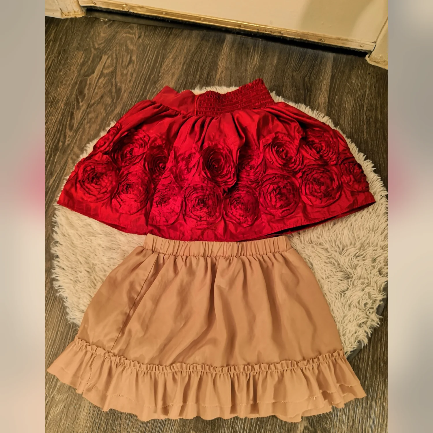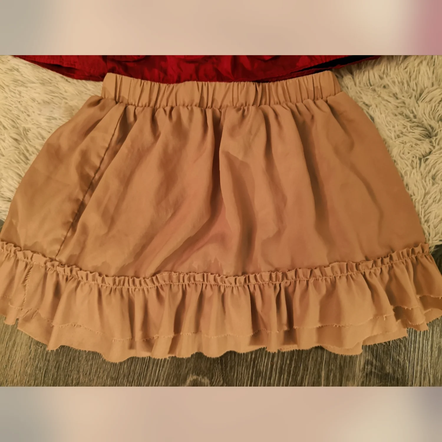 Mini-skirt bundle Style: Forever 21 Tiered ruffle skirt Color: Light pink Size; S W-14 L-15 Good condition Polyester material xxxxxxx Style: Takara rose skirt Color: Red Size; S W-14 L-17 Style 39831 Condition: Good