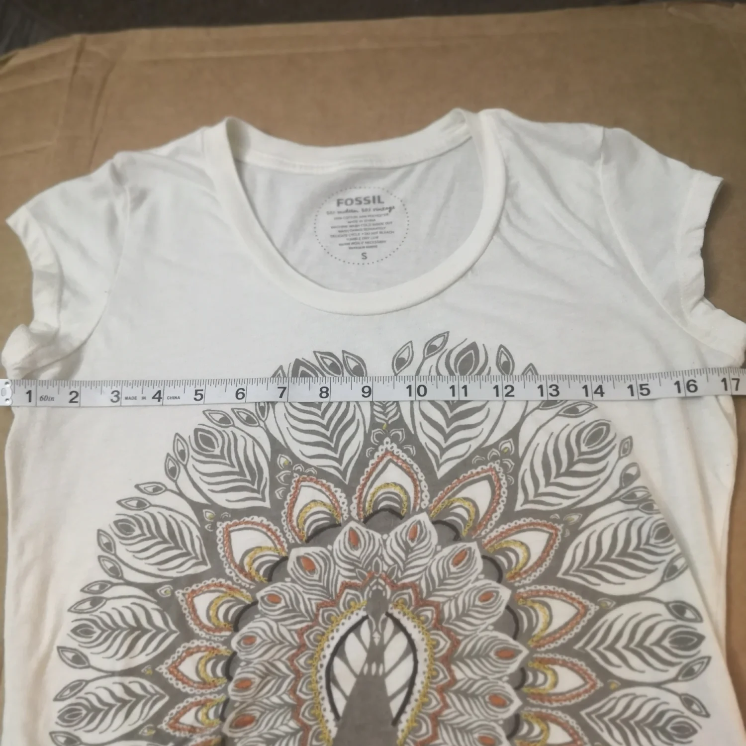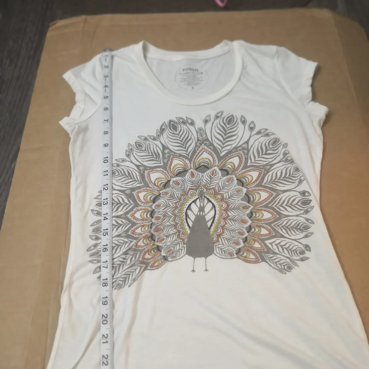 Fossil Short Sleeve Embroidered Look Peacock Vintage Style Tee S Casual Boho