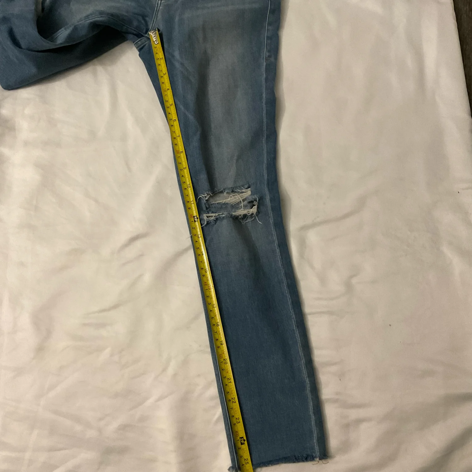 Style: Waterloo distressed raw hem jeans, 5 pockets Color: Blue Size: 26 Waist: 13’ Rise: 9’ Inseam: 25” 91% Cotton 7% Polyester 2% Elastane Machine wash cold