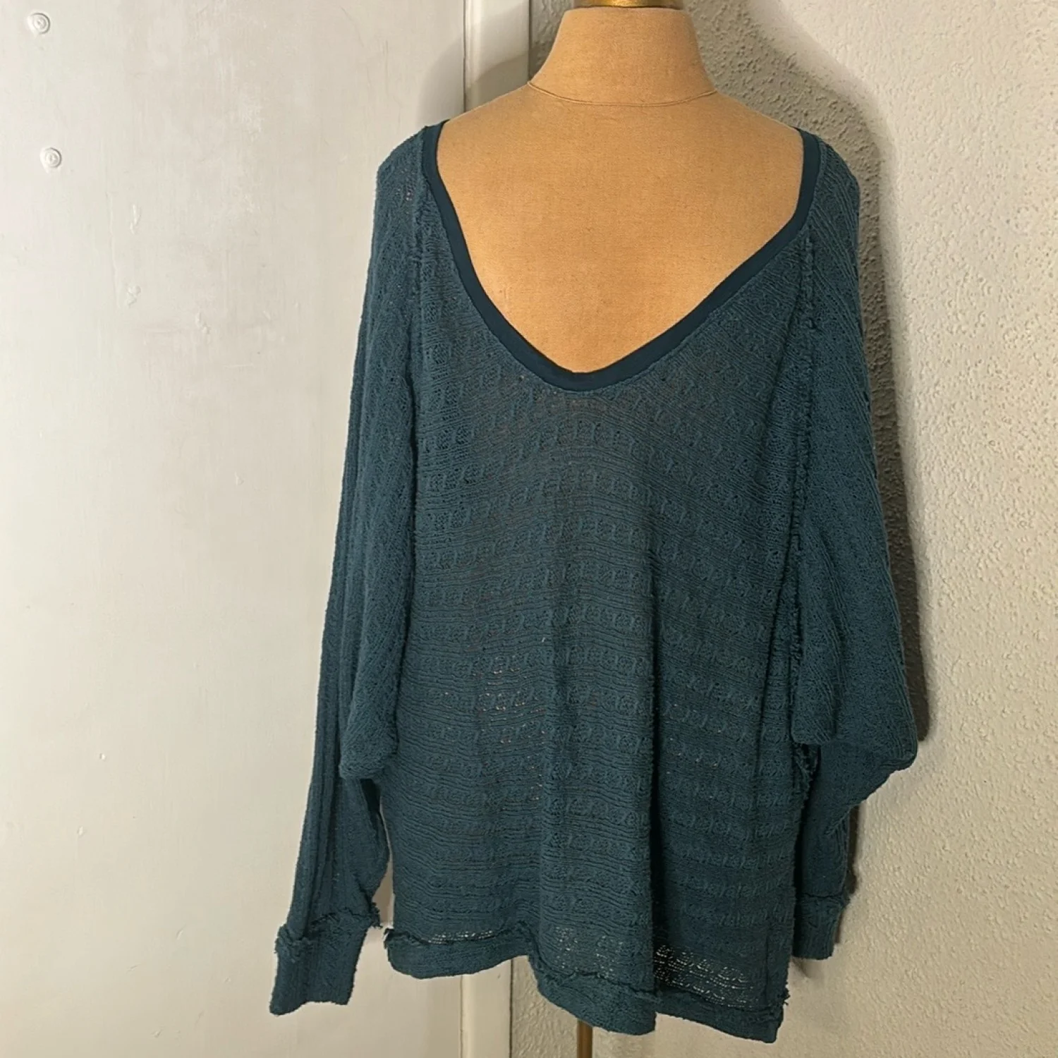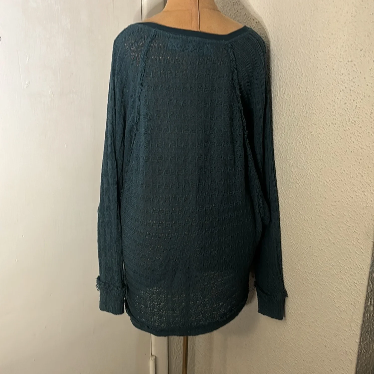 Style: Oversize sweater with scoop neck line and dolman sleeves Color: Green Size: M Armpit: 28” Length: 29” Sleeve: 35” Condition: Good 100% Cotton Hand wash only