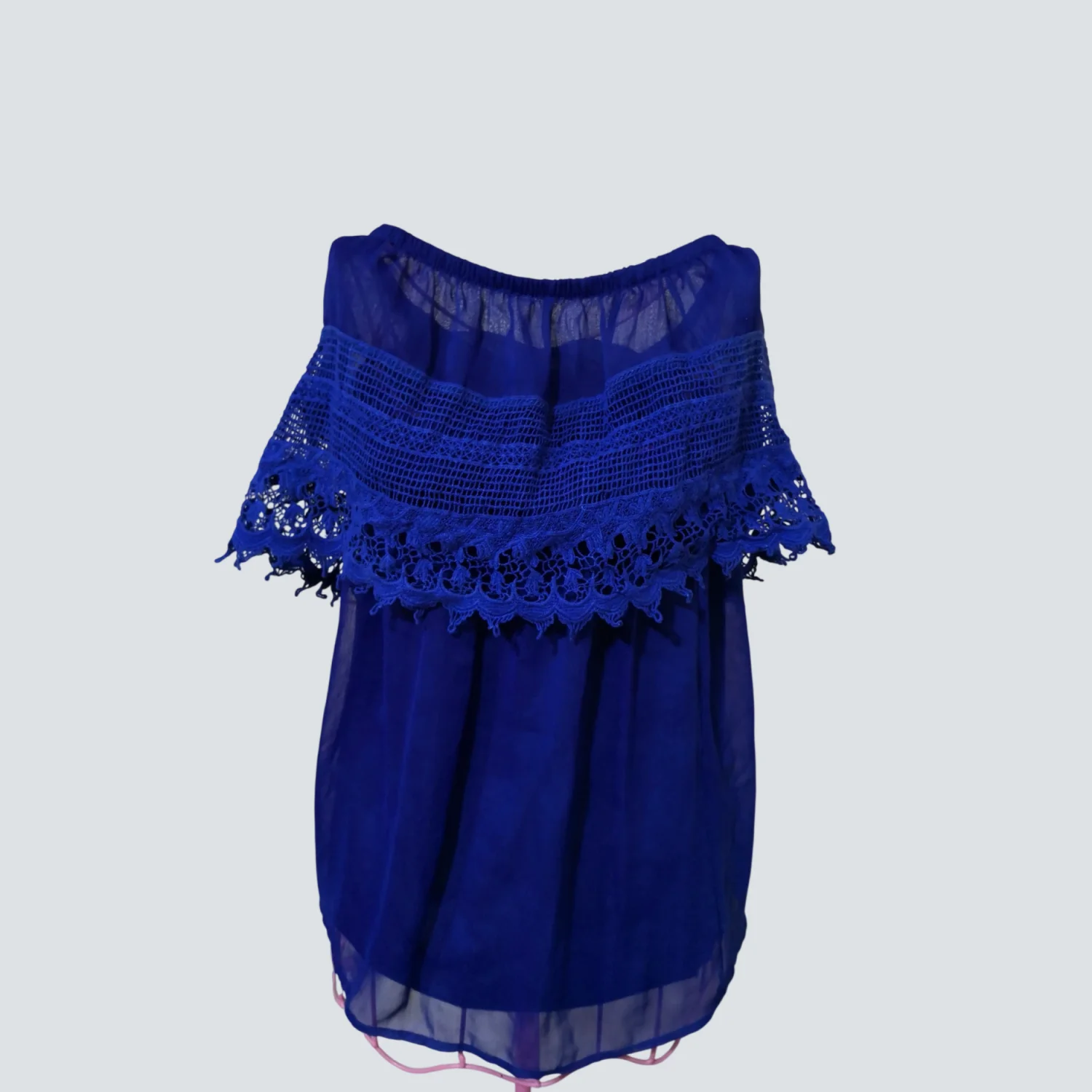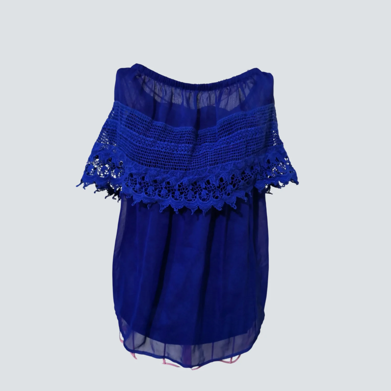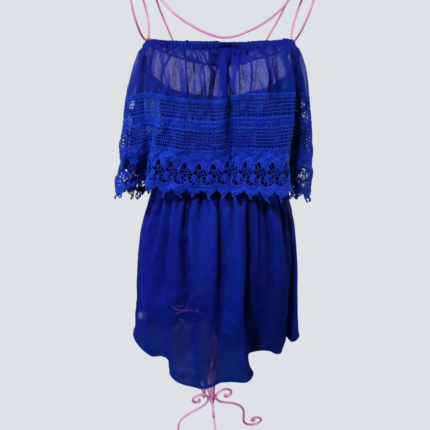 Gameday By Chloe Blue Strapless Boatneck Lace Top Mini Dress S Rainbowcore Twee