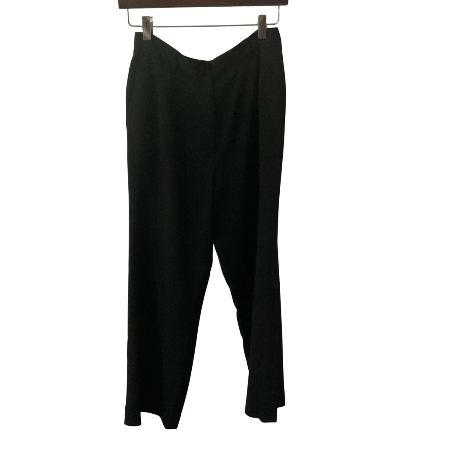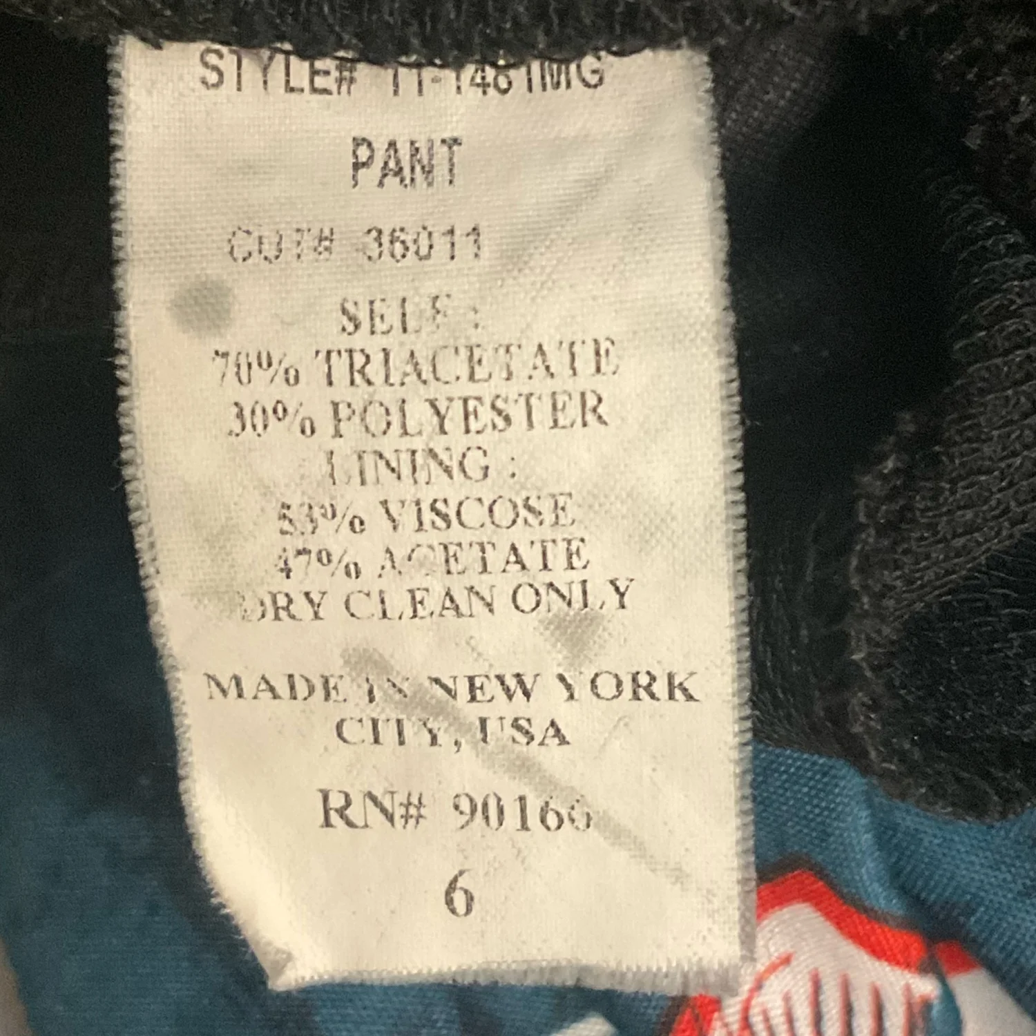 Style: Pull on dress pants Color: Black Size: 6 Waist: 14” Rise: 14” Length: 25” Condition: Front button missing 70% Triacetate 30% Polyester Dry Clean