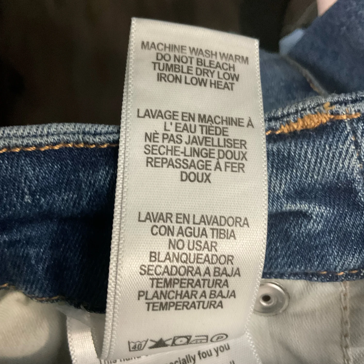 Style: 5 pocket jean with decorative pockets in back with distressing on front pockets and knees GLCBP941T Color: Blue Size: 4/27 Waist: 13” Rise: 12” Inseam: 25” Condition: Good, slight puckering due to elastic waistband 96% Cotton 4% Elastrell 1% Elastane Machine