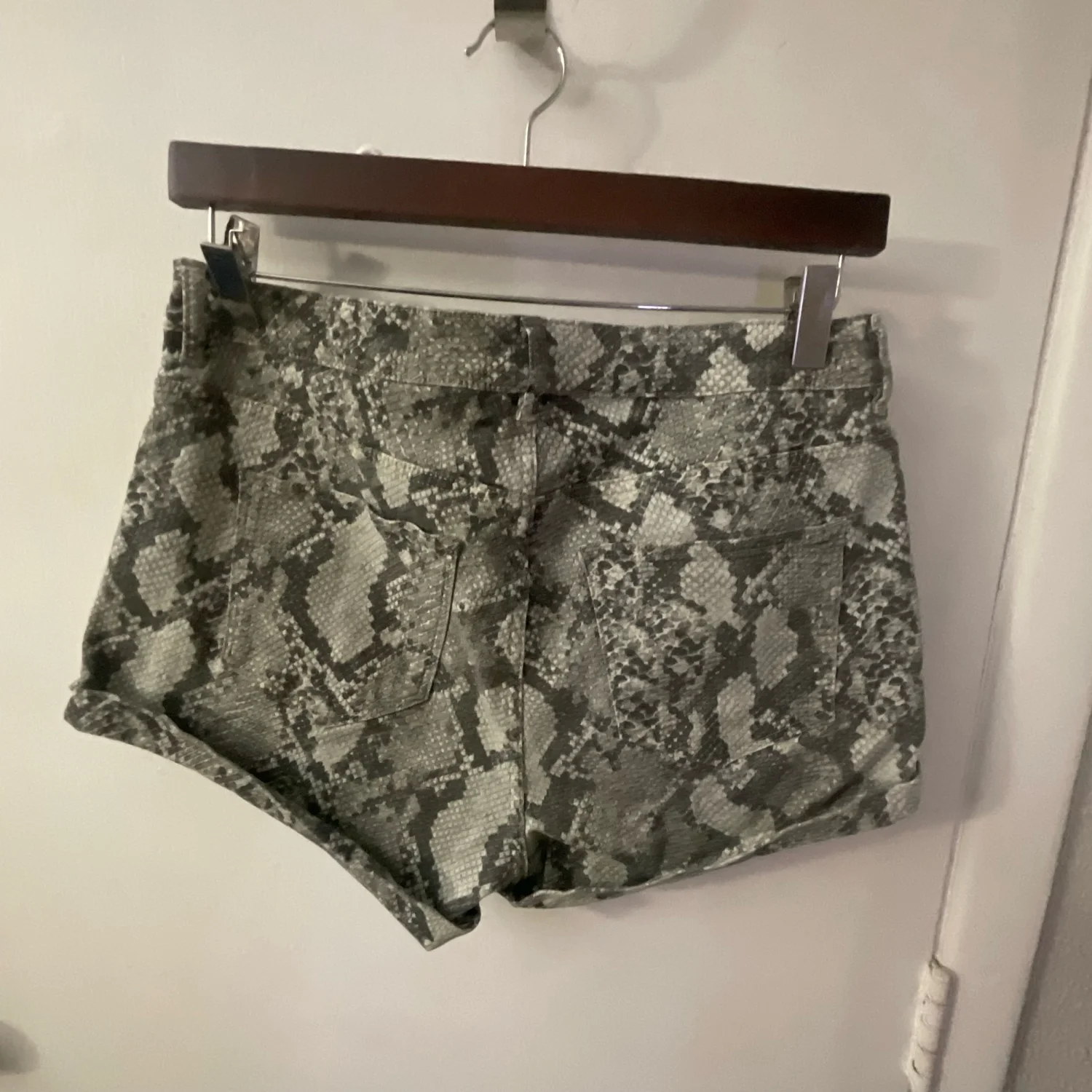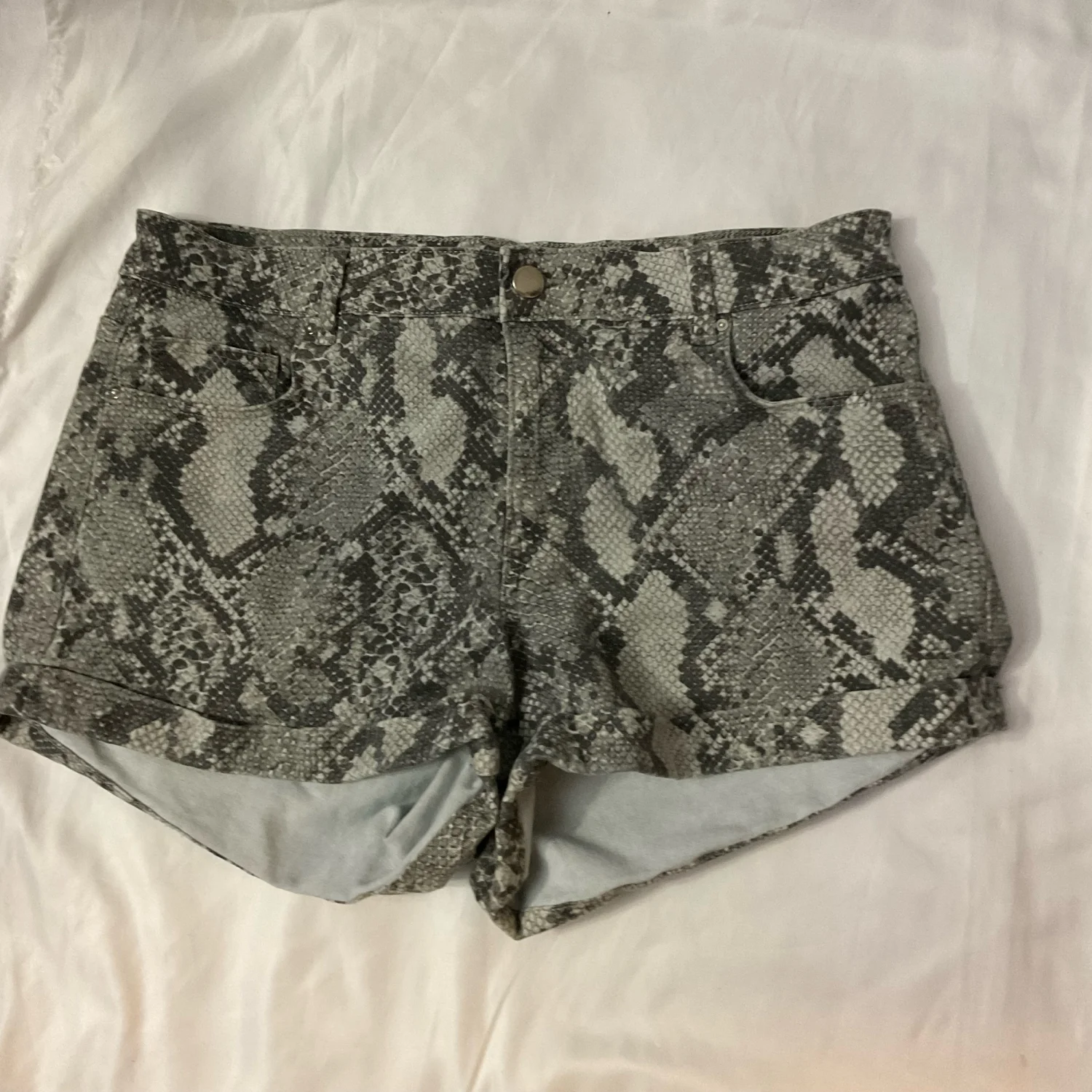 H&M Snakeskin Gray/White Print Shorts 10 Mobwife Boho Rocker Dopamine Punk Rave