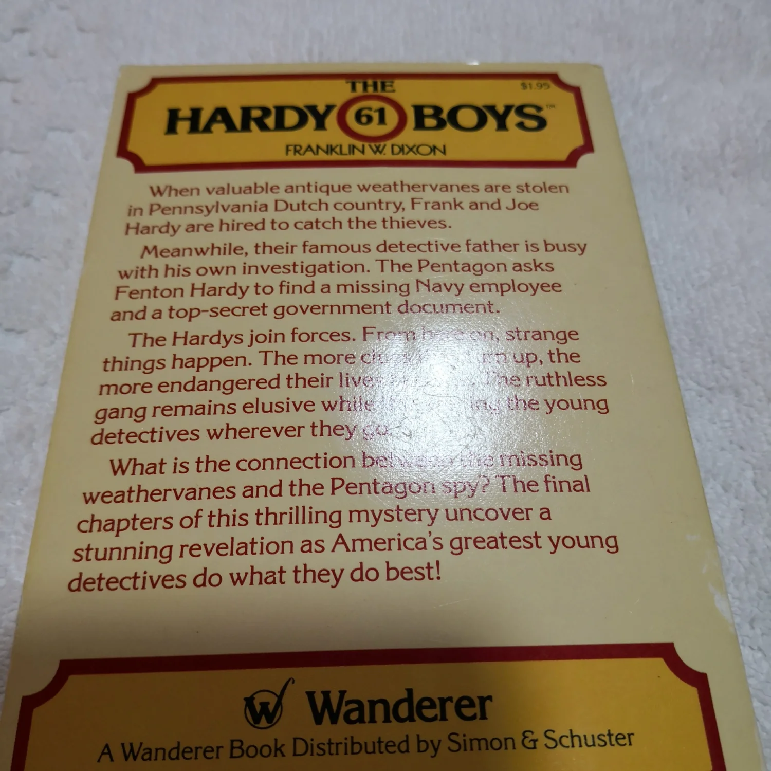Includes: The Secret Panel The House on the Cliff The Mystery on the Spiral Bridge #45 The Pentagon Spy #61 Mystery of the Samurai Sword #60 Detective Handbook Small spot on one book where price tag was removed. Normal wear and tear. Copywright dates of 1946 and 1958. The Handbook, Spiral Bridge and Wanderer editions 1970s printings. Spiral Bridge has some wear on binding.