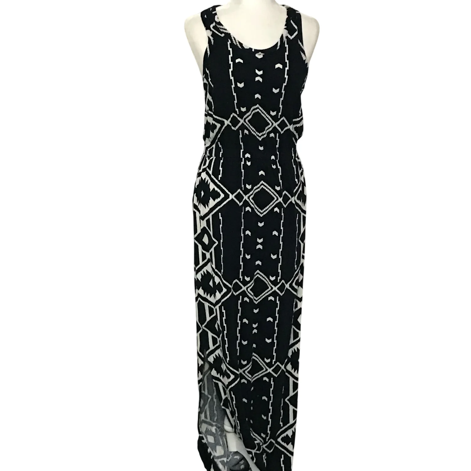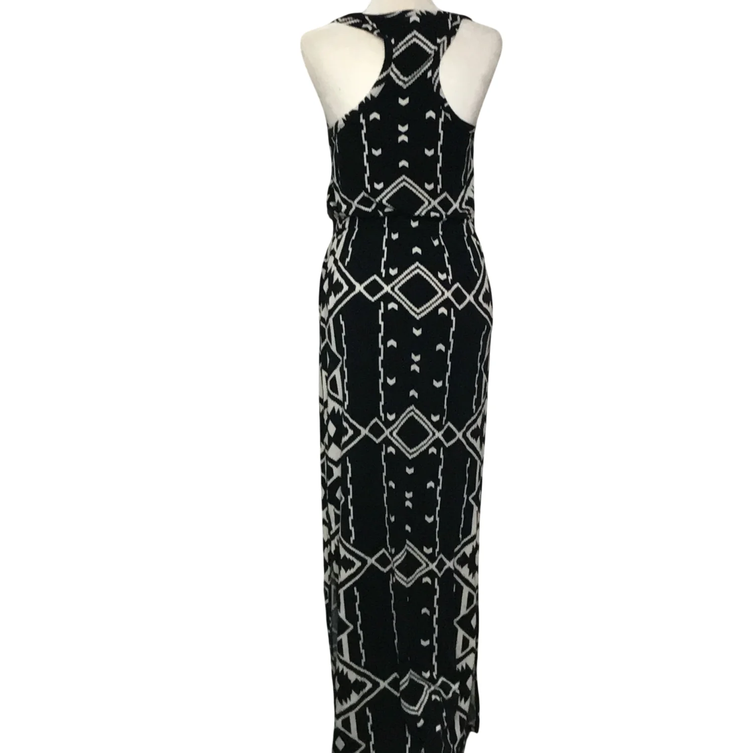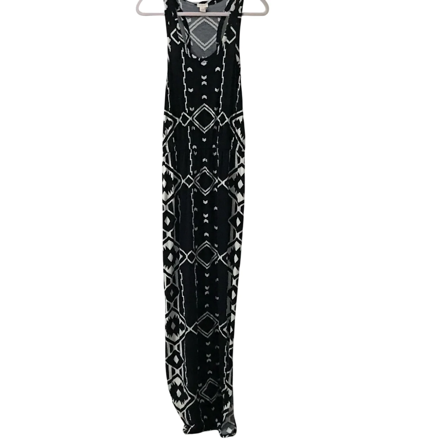 J. Crew Factory Navy BlueWhite Maxi Dress Side Slits S Sleeveless Geometric Cozy