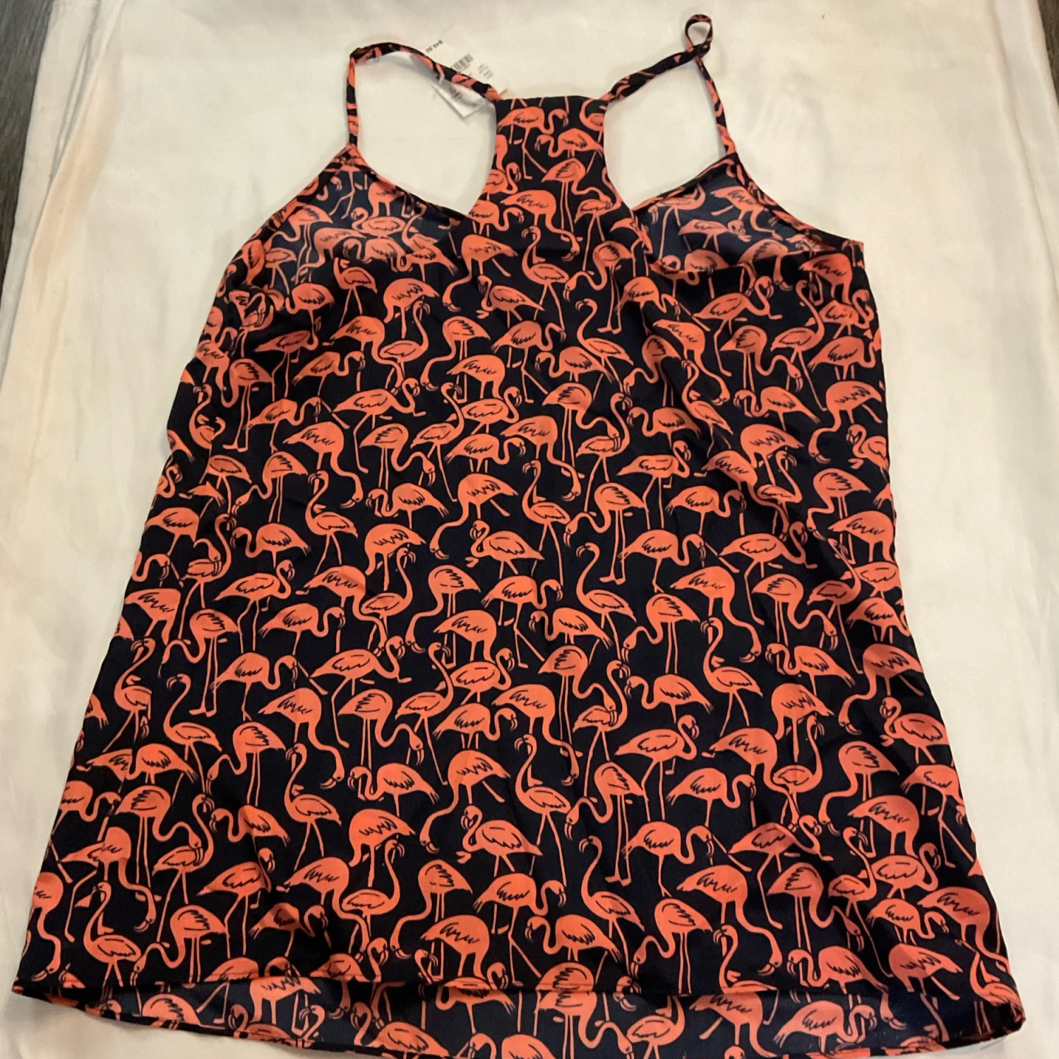 Style: Flamingo print racerback tank Color: Navy/Pink Size: 2 Armpit: 16" Length: 24" Condition: New with tags 100% Polyester Machine wash cold