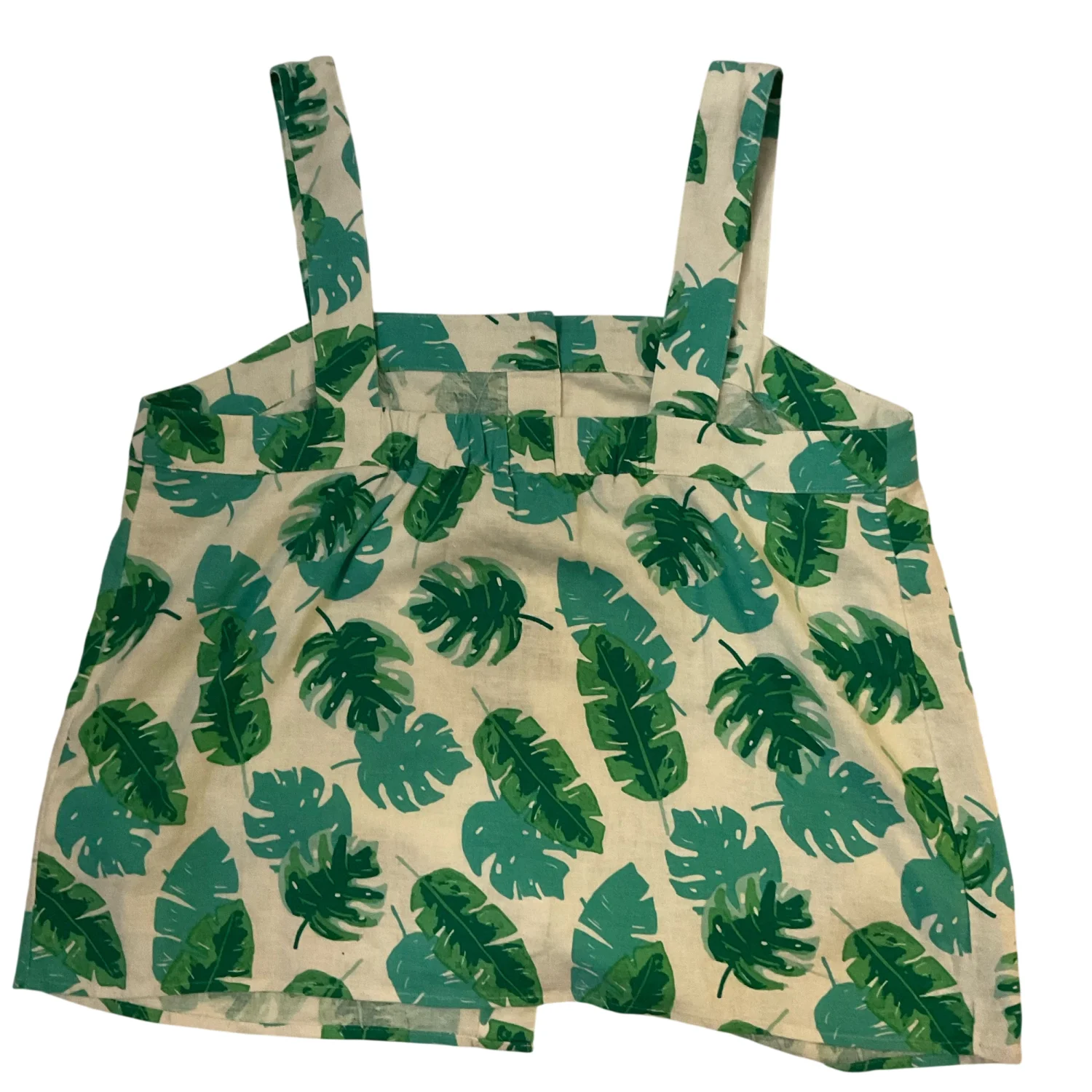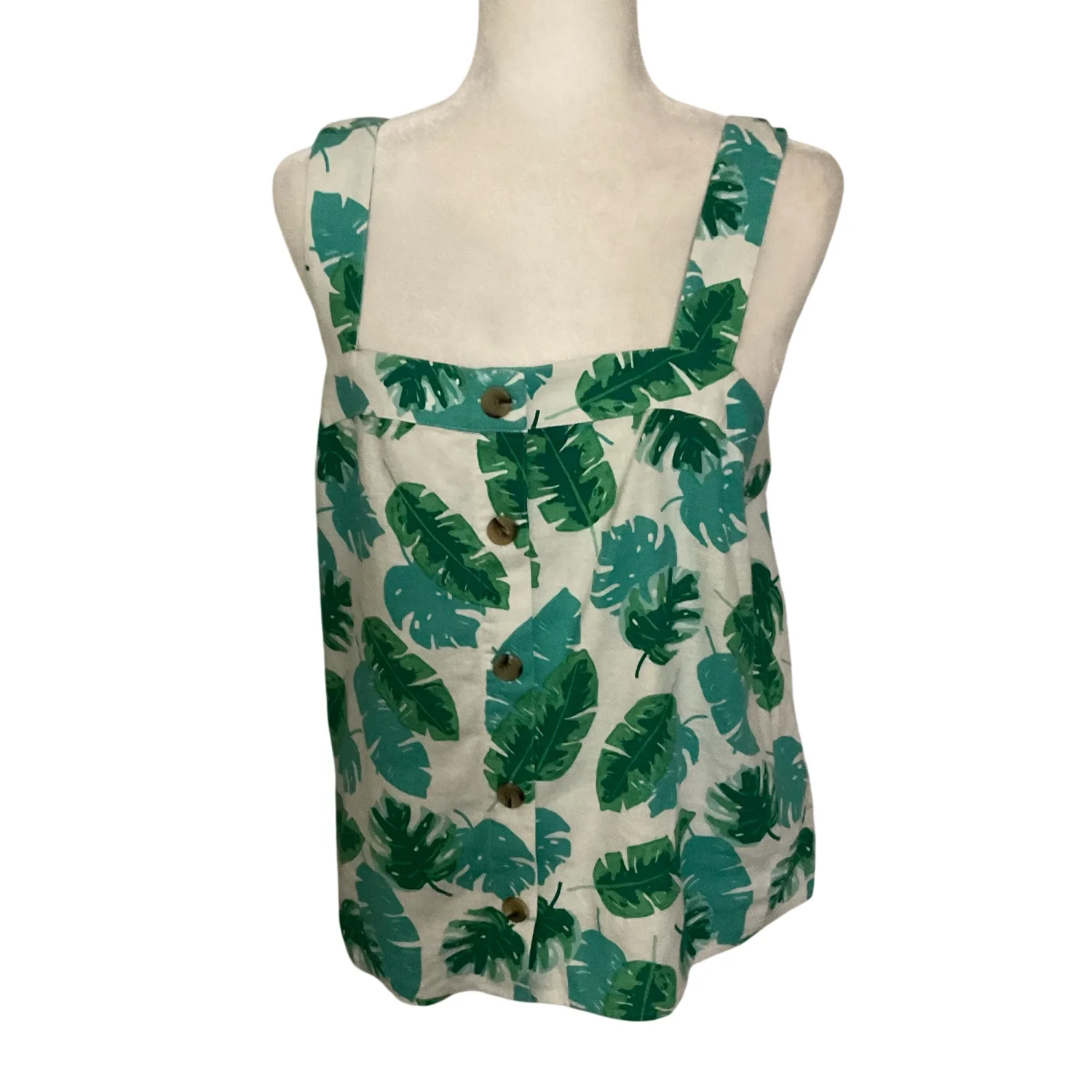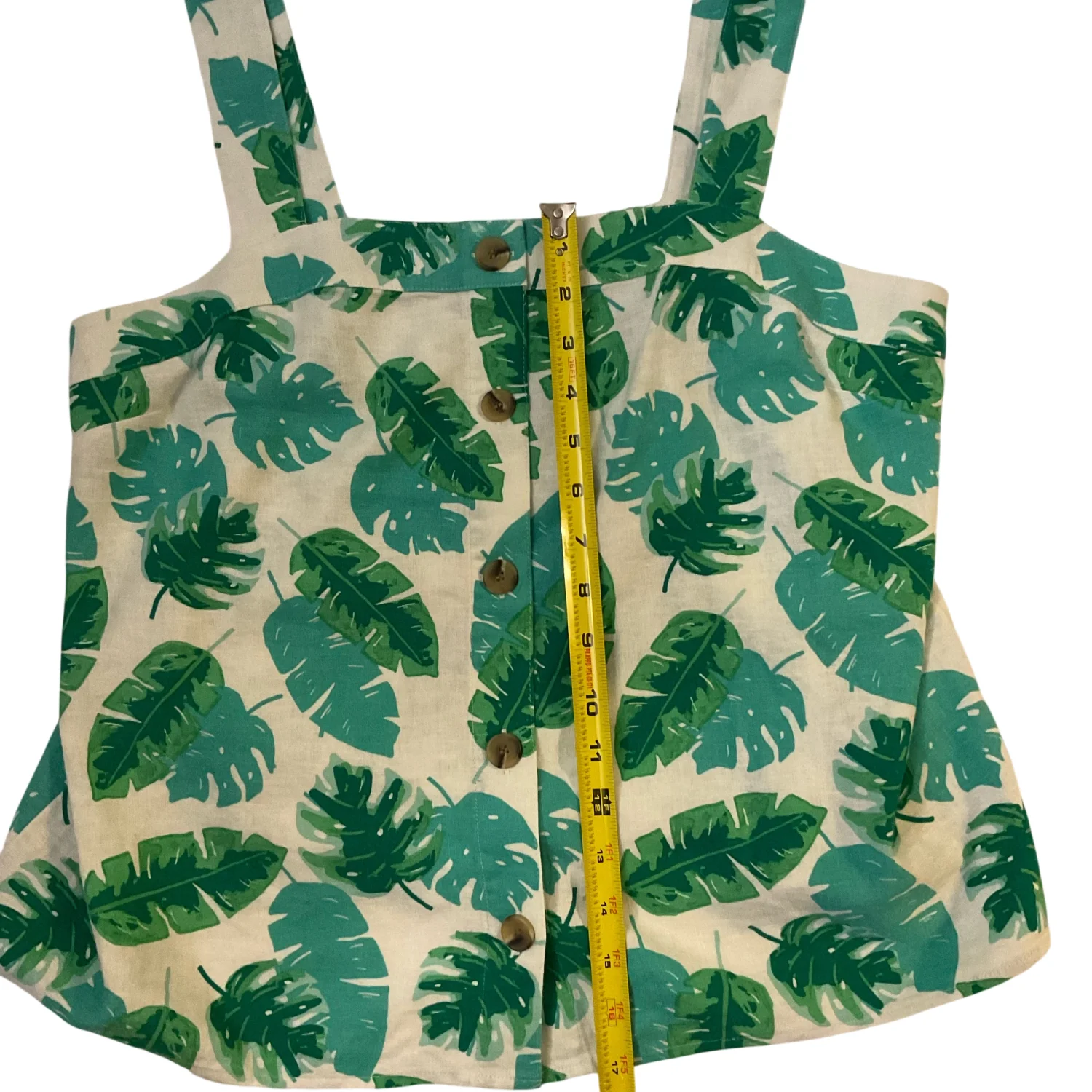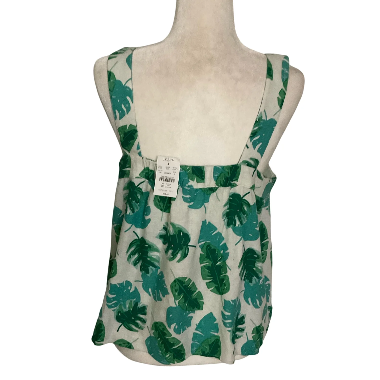 J. Crew Tropical Monstera Leaf Button Front Linen Tank Camisole NEW M Dopamine