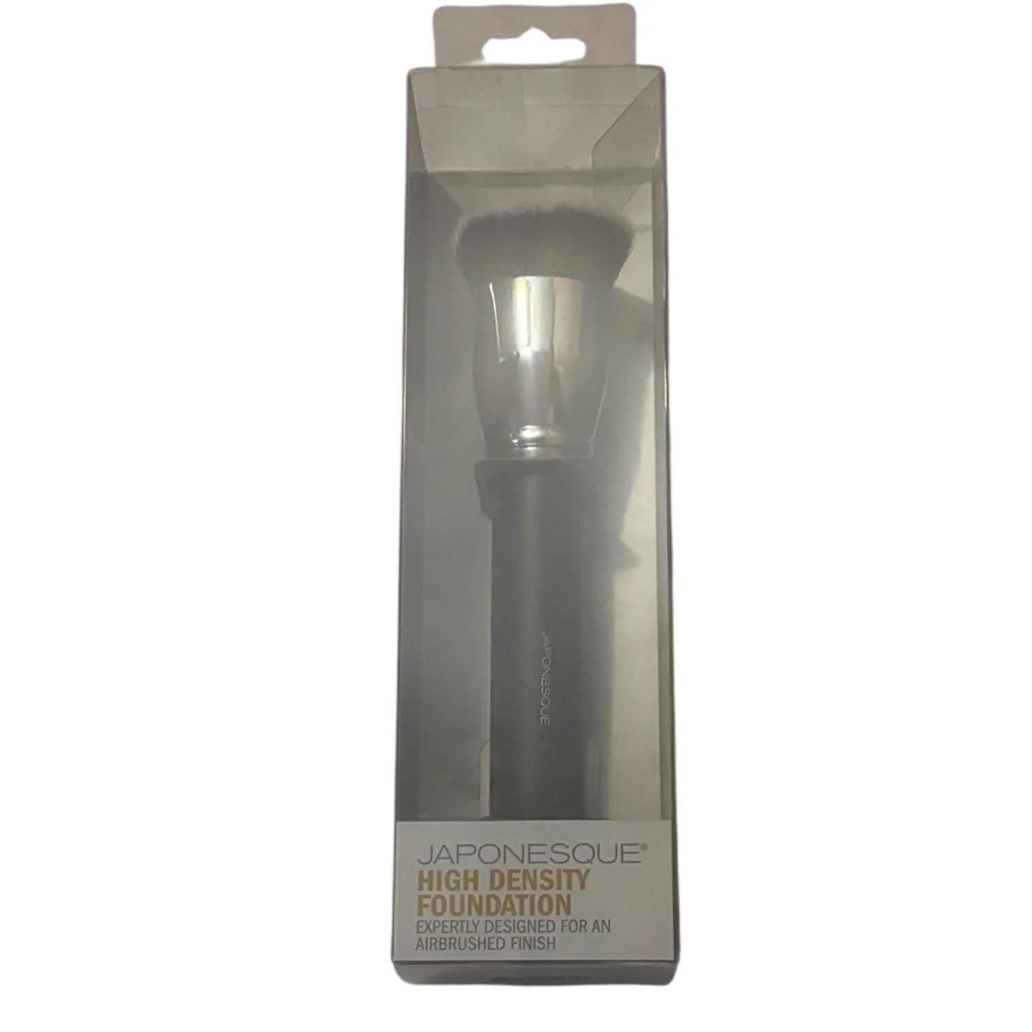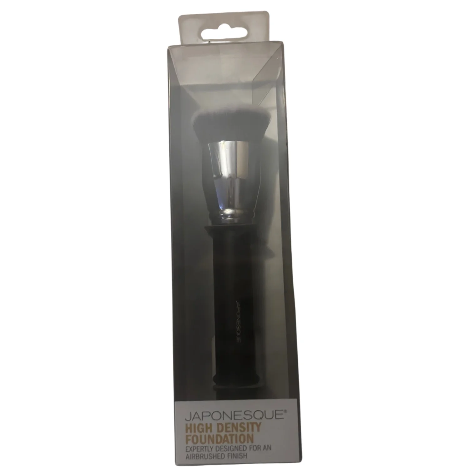Style: High density foundation brush. Delivers an airbrushed, even finish with dense, soft bristles. Ergonomic handle for comfortable application. Ideal for liquid or cream foundations for a flawless look. Color: Black Condition: New in box Clean with brush cleanser