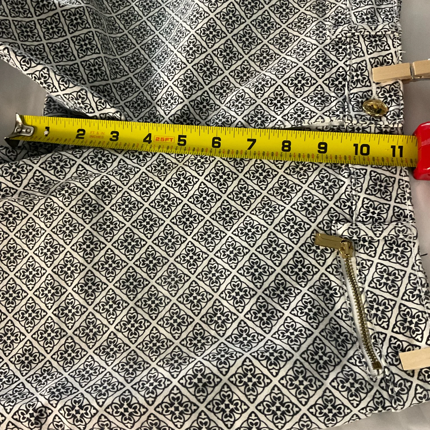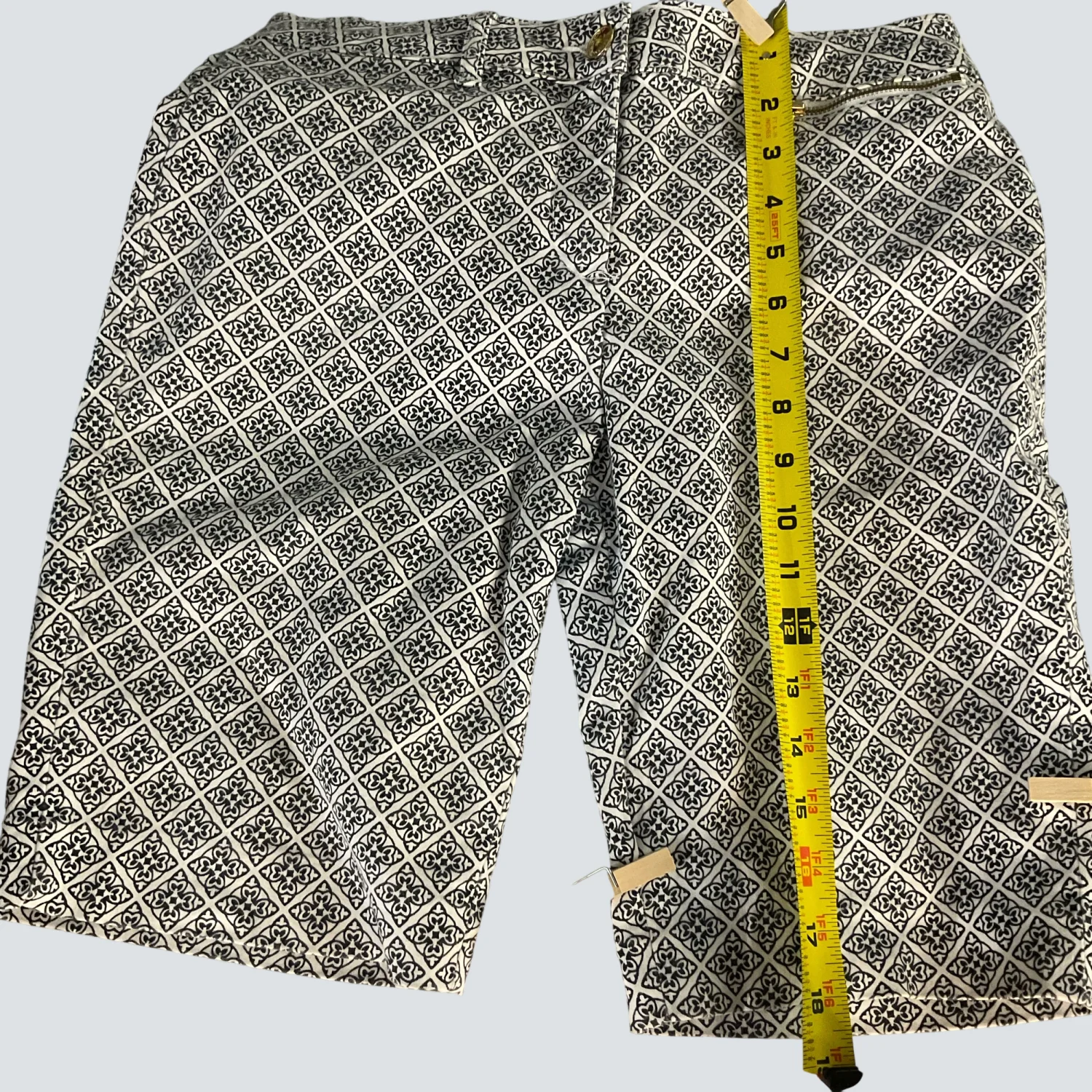 Style: Signature Bermuda short with zip front pocket Color: Black/White Size: 4P Condition: Good 71% Cotton 27% Polyester 2% Elastane Machine wash cold