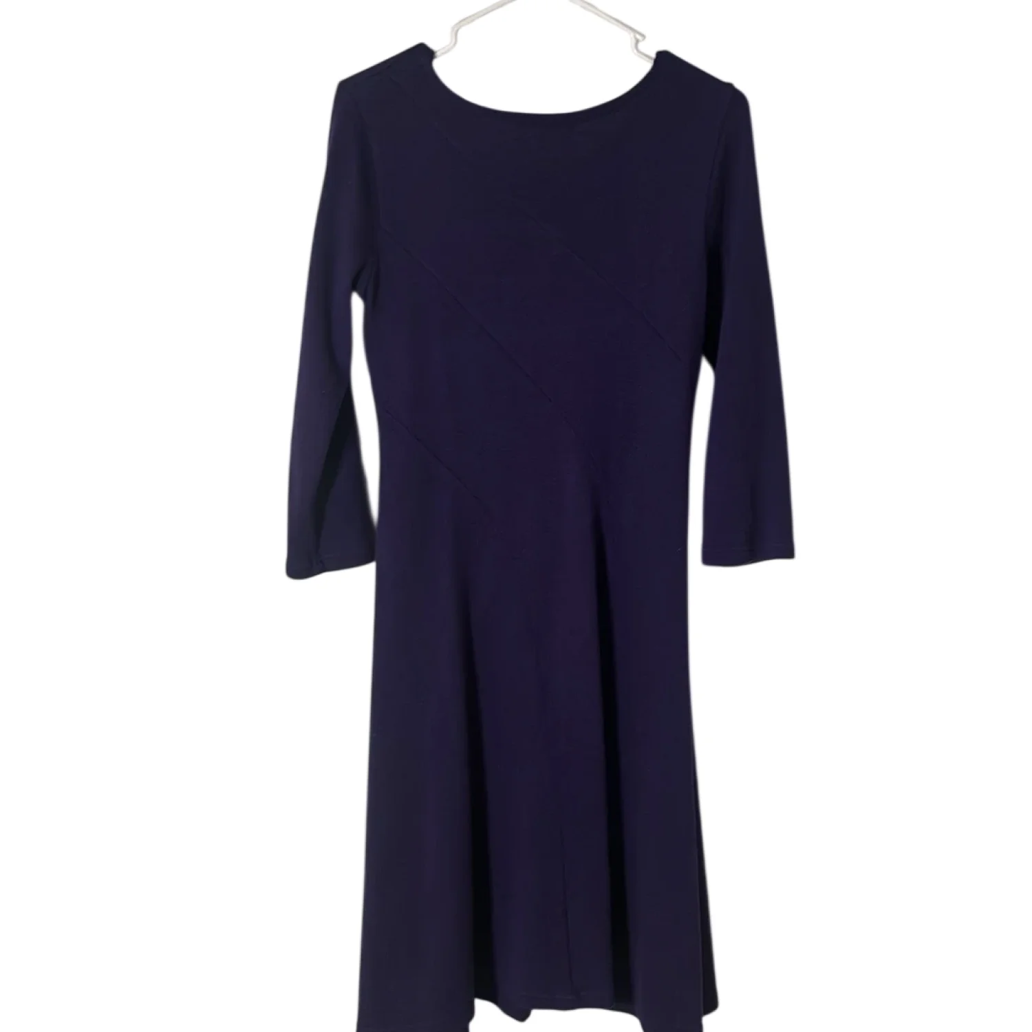 Style: Long sleeve crewneck fit and flare sweater dress Color: Purple Size: S Armpit: 14" Length: 40" Sleeve: 24" Condition: Good 50% Cotton 40% Acrylic 10% Nylon Hand wash cold