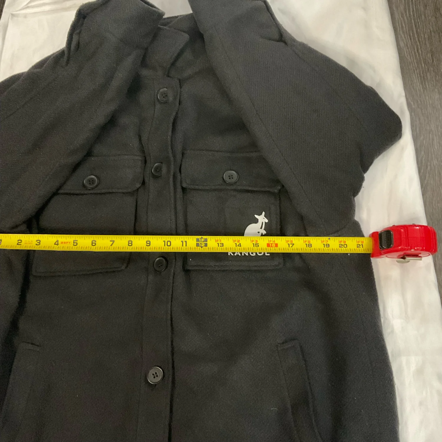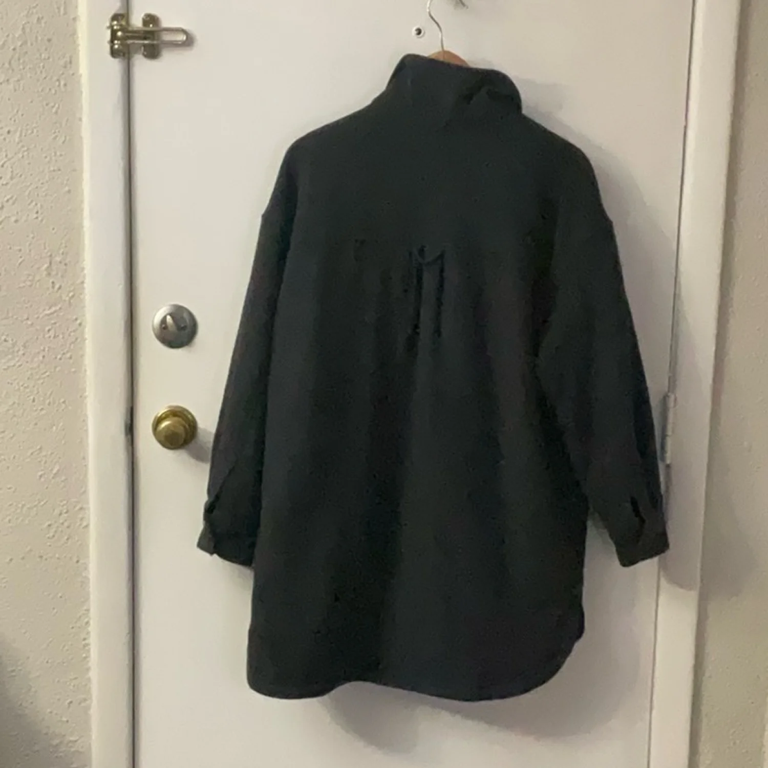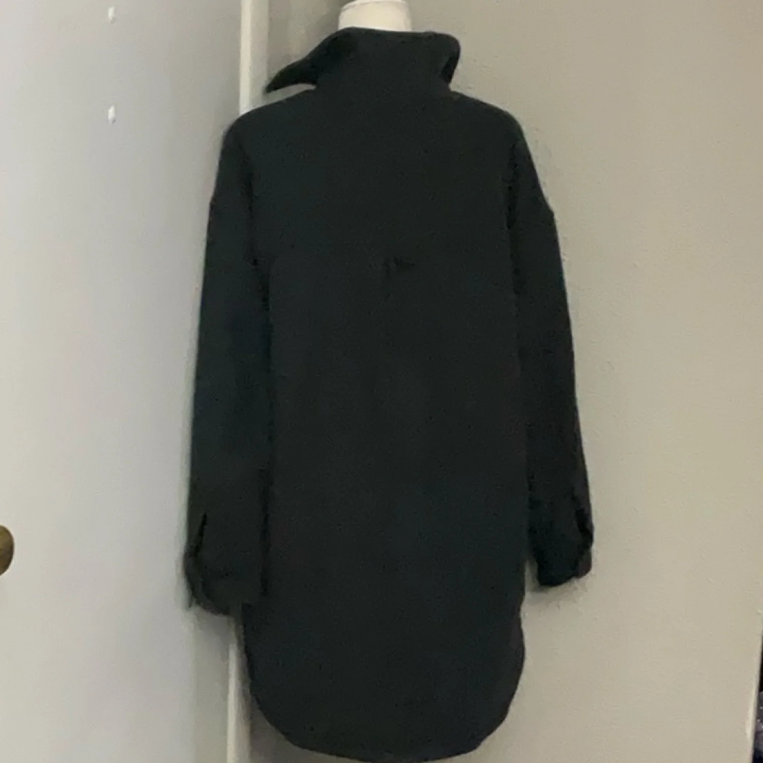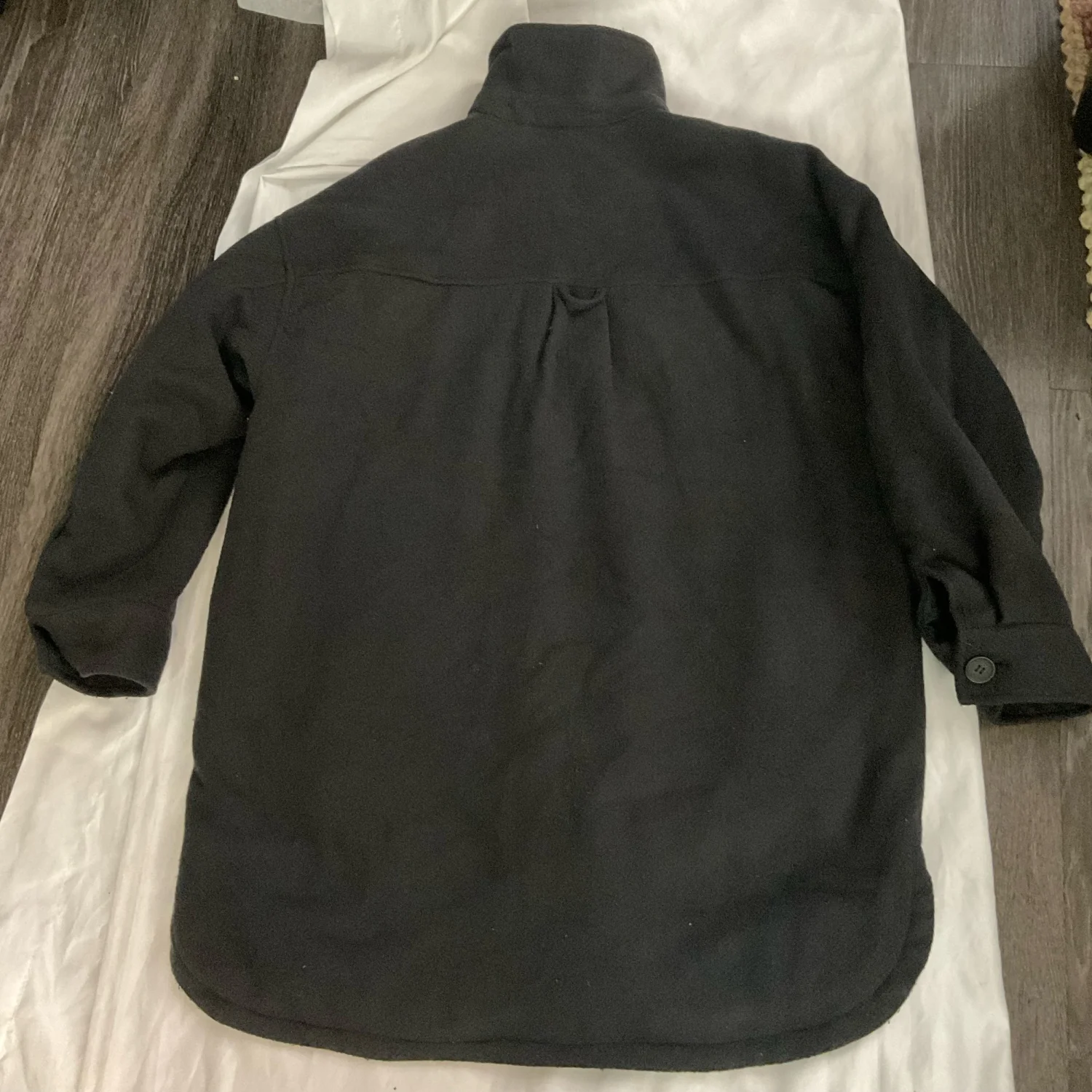 Style: Shacket/Jacket is lined with a quilted material, buttons front and cuffs, two patch pockets chest, two side slip pockets lower. Sleeves are about bracelet length. Oversized shirt jacket in thick twill with a brushed finish. Collar, buttons at front, and yoke at back with box pleat and locker loop. Welt front pockets and chest pockets with flap and button. One chest pocket with Kangol logo. Dropped shoulders, long sleeves with button at cuffs, and rounded hem with slits at sides. Color: Gray Size: S Armpit: 21" Length: 35" Condition : Contains pilling and wear due to fabric content. Still has lots of life left. Fabric content: 100% polyester UNISEX