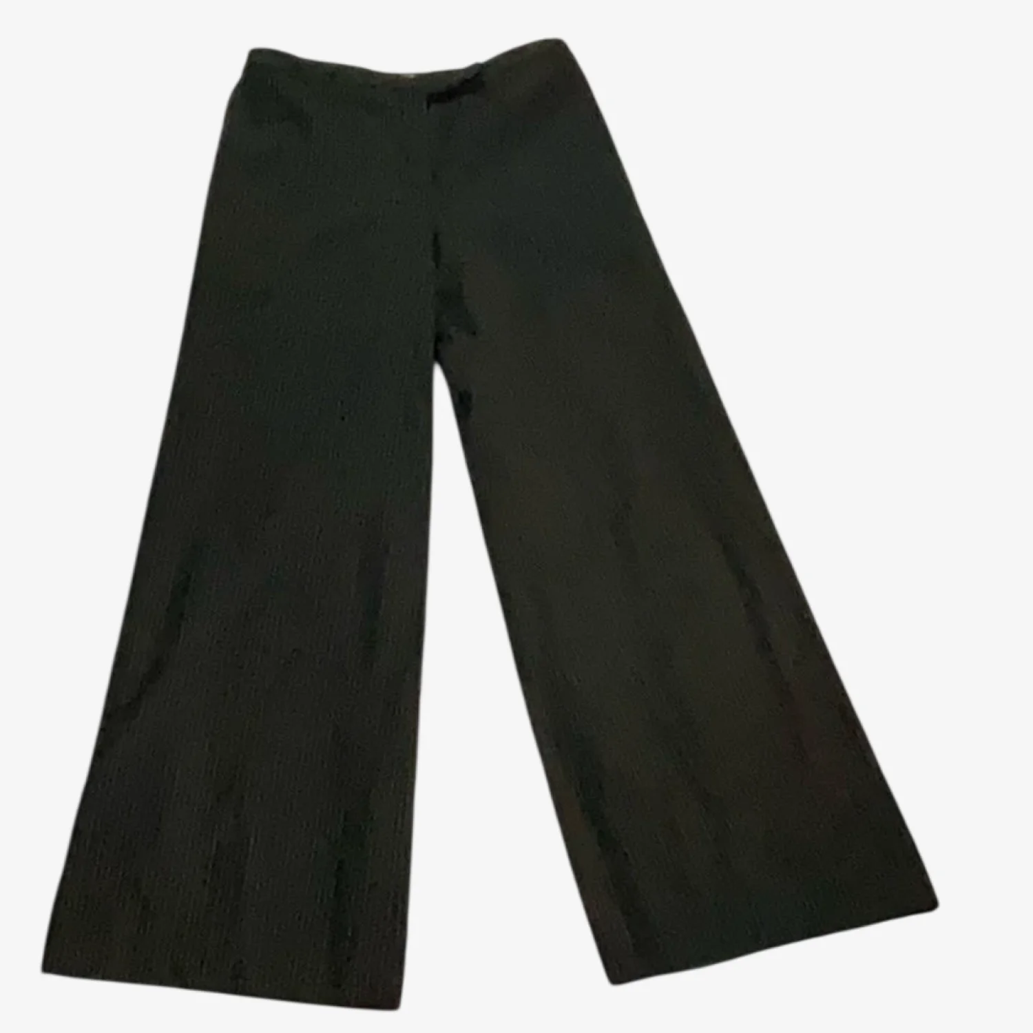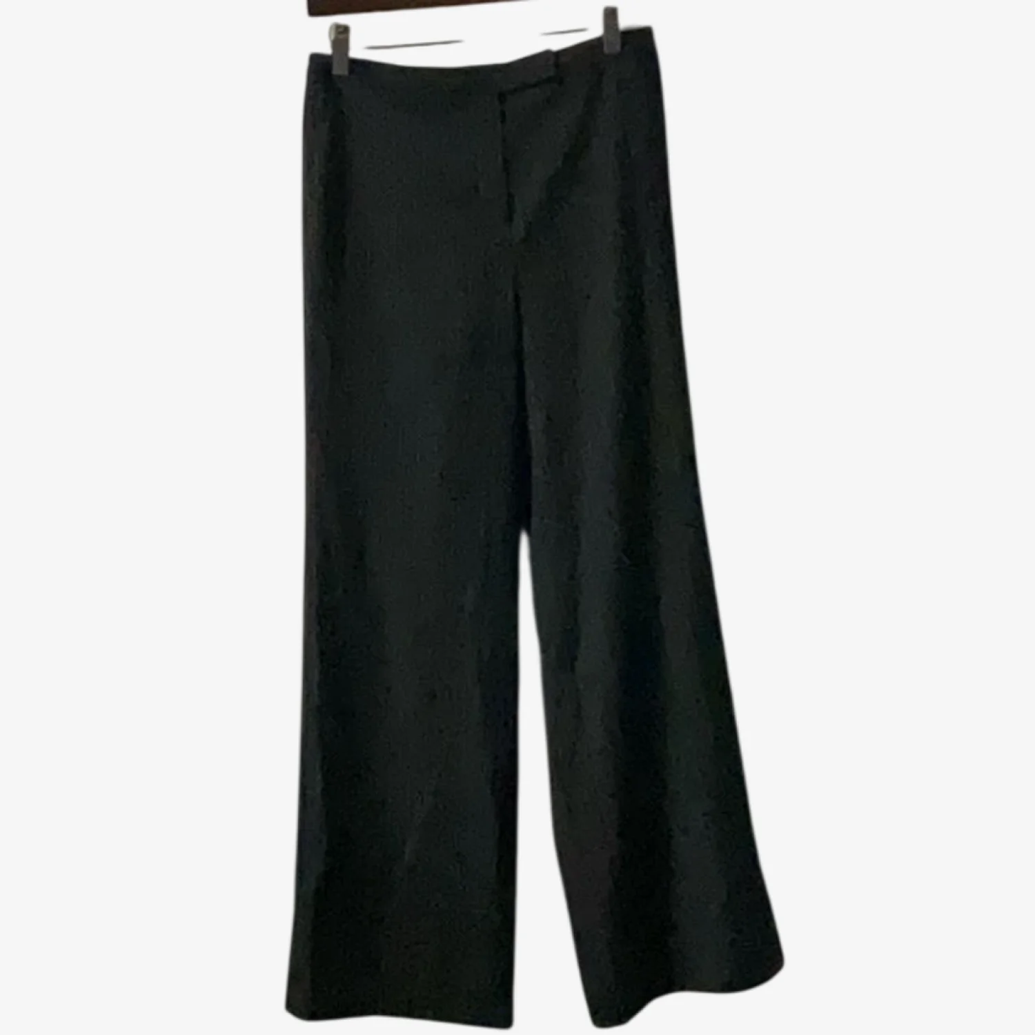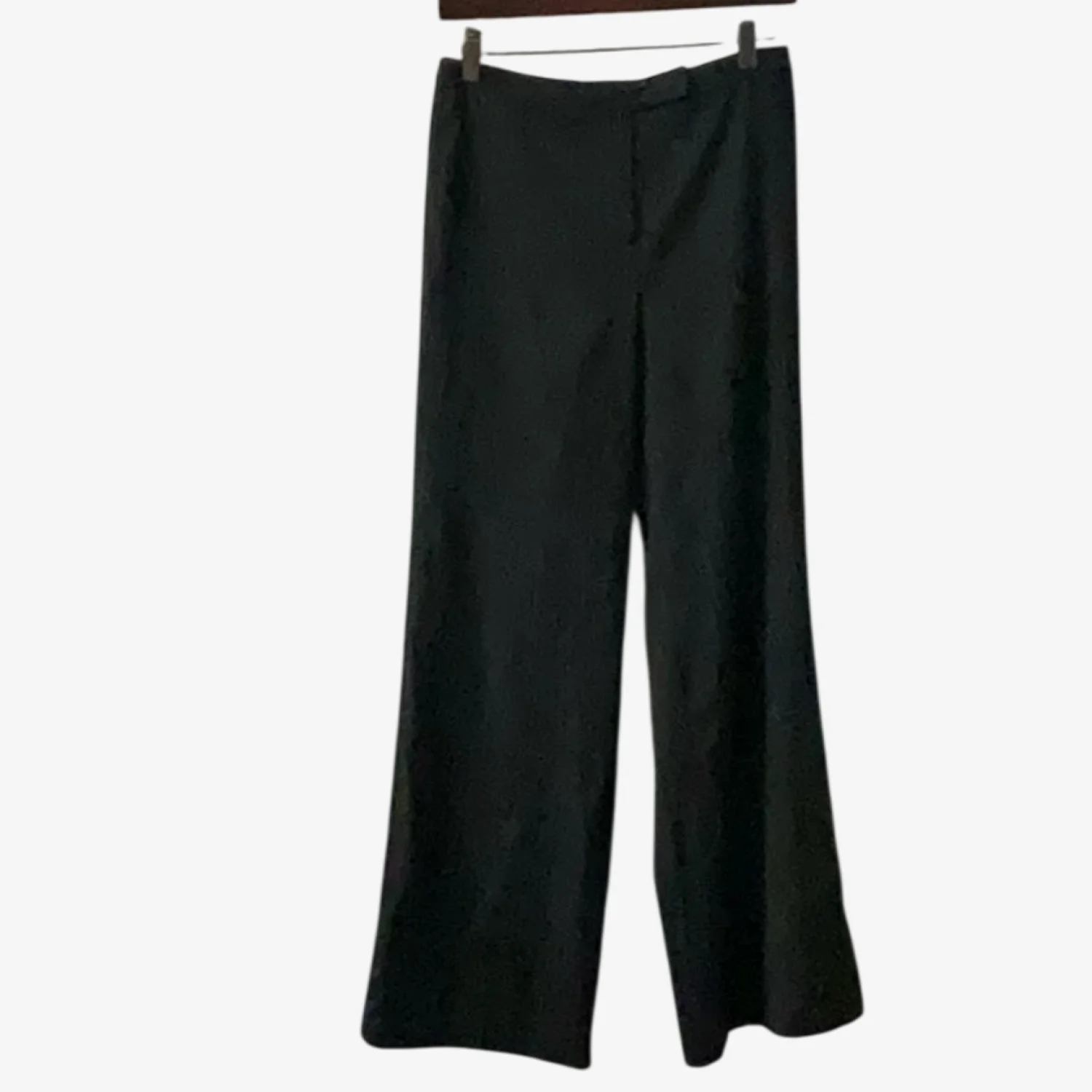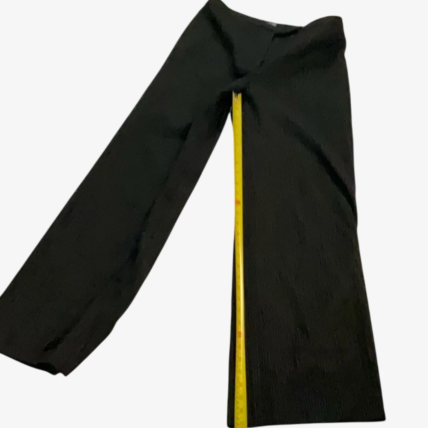Style: Pinstripe wide leg dress pant Color: Black Size: 4 Waist: 14" Rise: 12" Inseam: 31" Condition: Good 100% Polyester Dry Clean Only