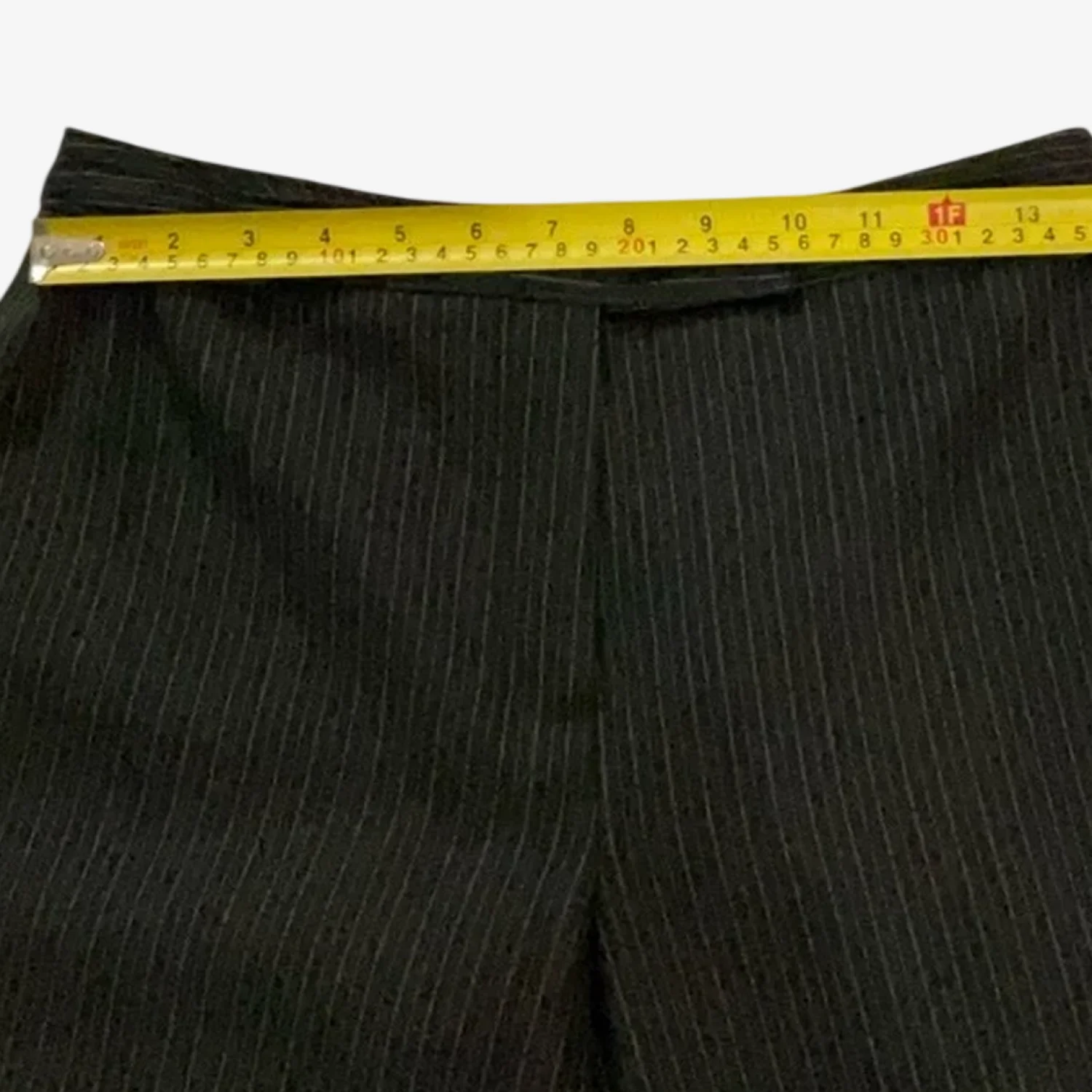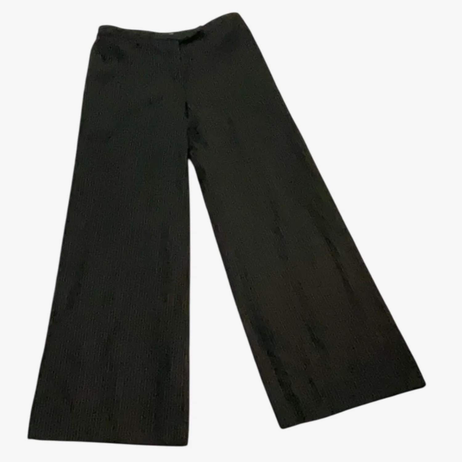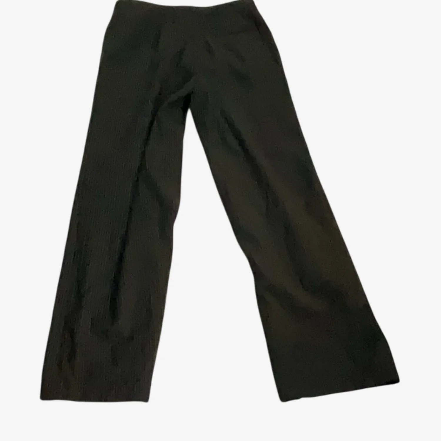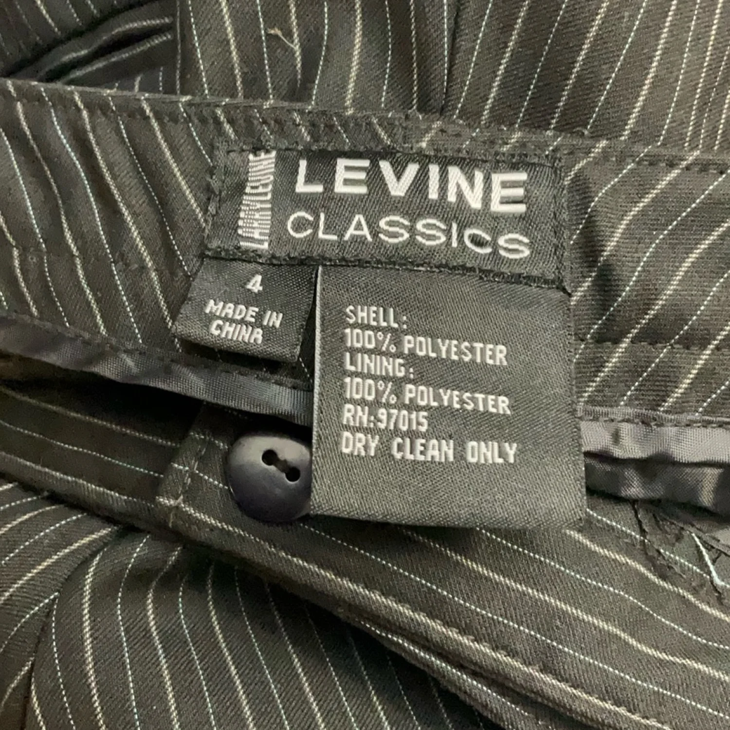 Style: Pinstripe wide leg dress pant Color: Black Size: 4 Waist: 14" Rise: 12" Inseam: 31" Condition: Good 100% Polyester Dry Clean Only