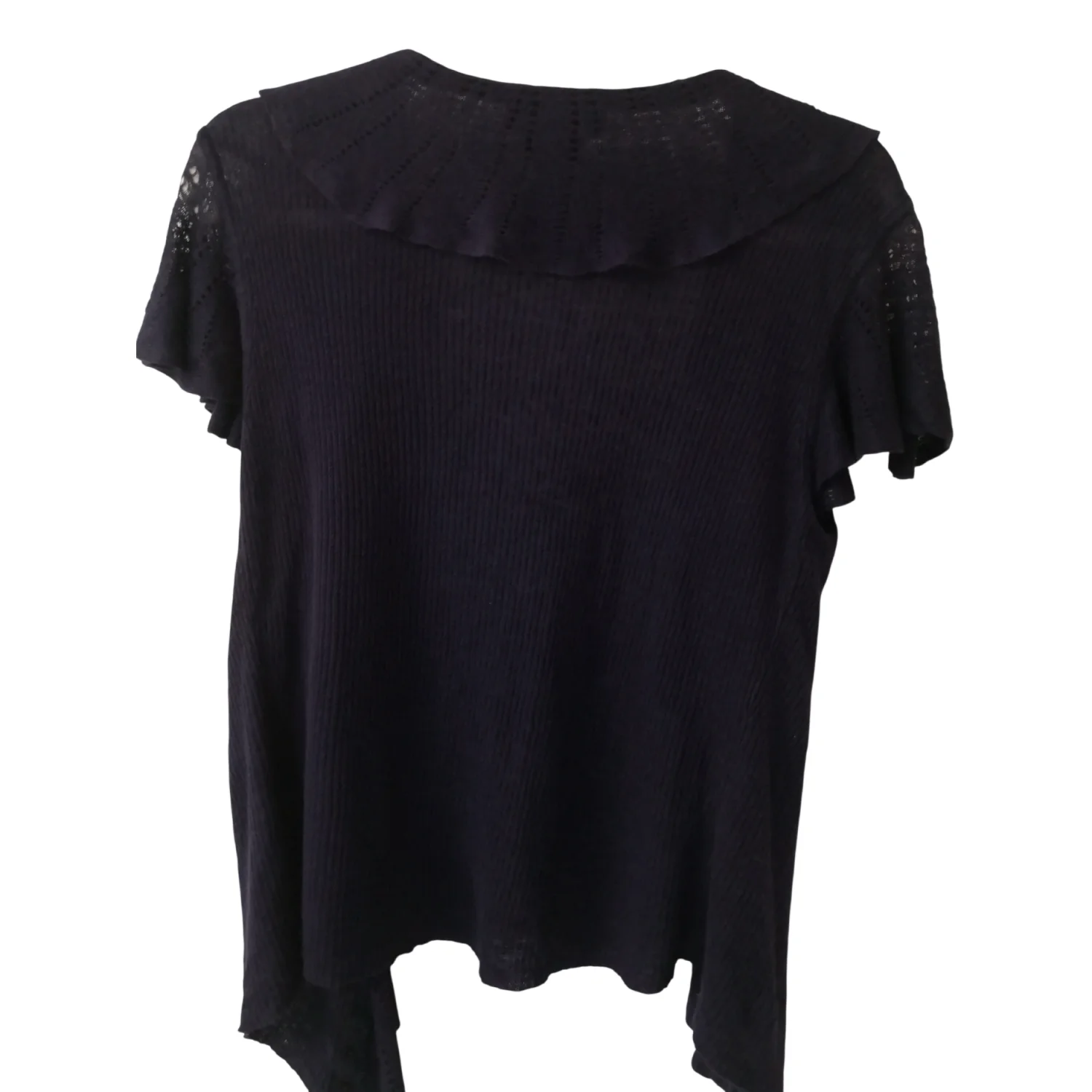 Style: Ruffled V-neck top with 9 button front closure Color: Purple Size: S Armpit: 16” Length: 22” Condition: Good 100% Linen Hand wash