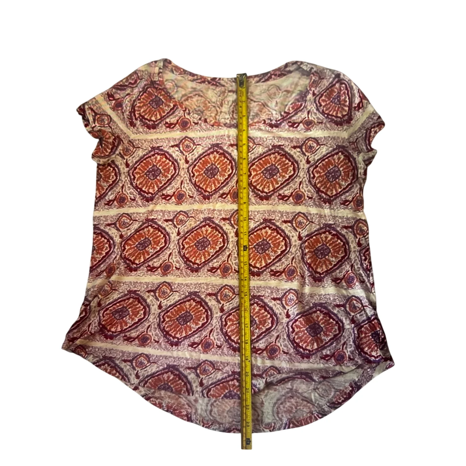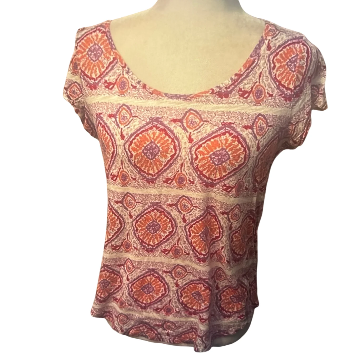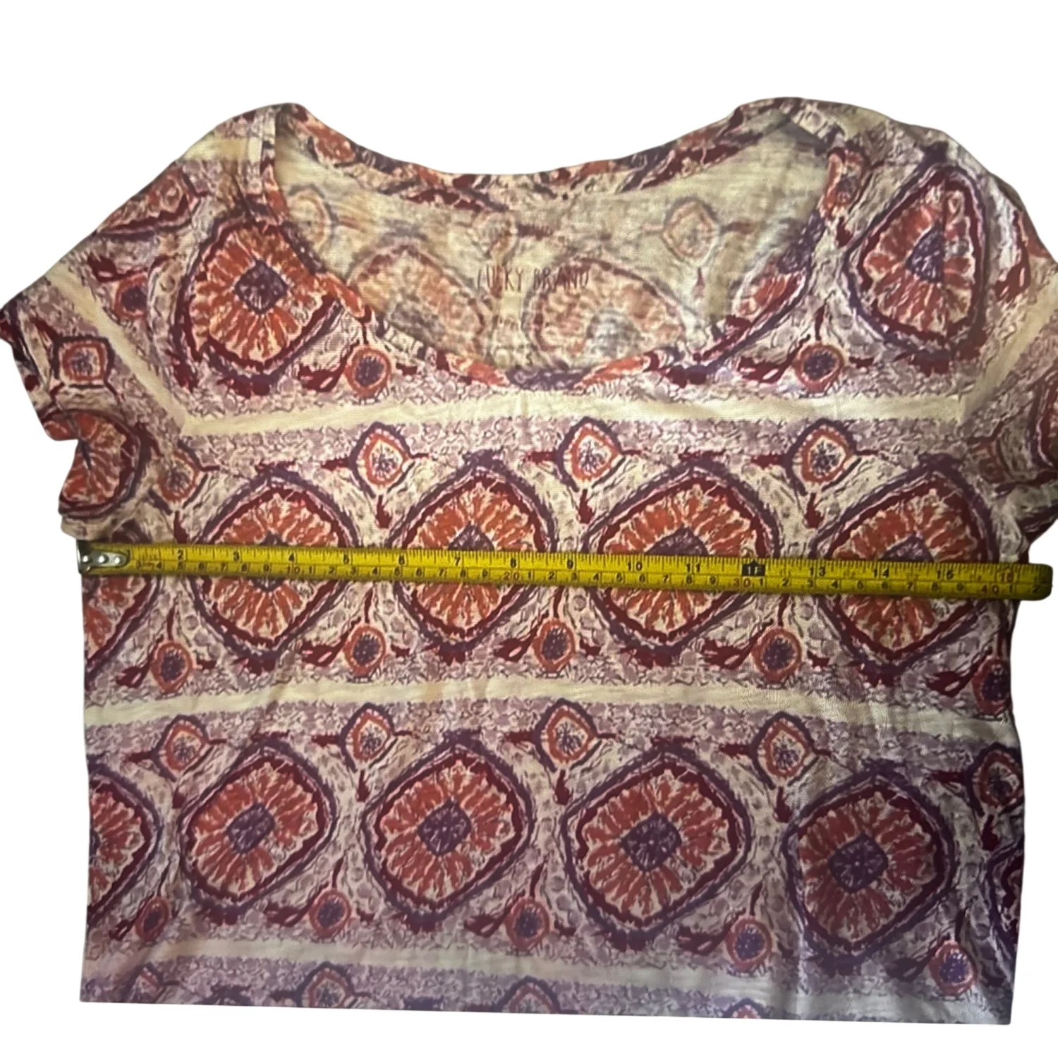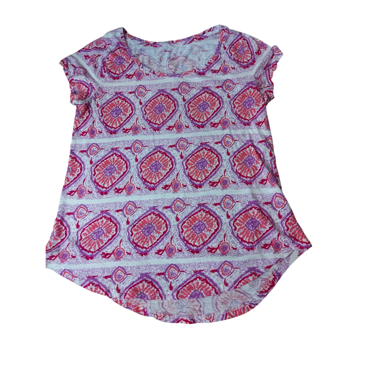 Lucky Brand Printed Crew Neck Short Sleeve Tee S Boho Casual Festival Hippie