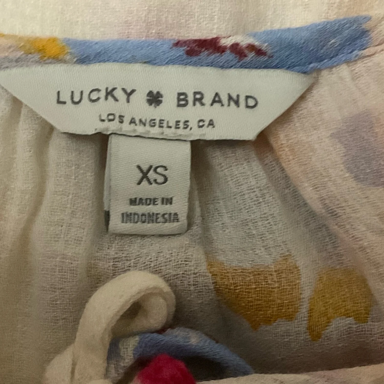 Lucky Brand Sheer Button Up Floral Blouse XS Cottagecore Dopamine Costal Cowgirl