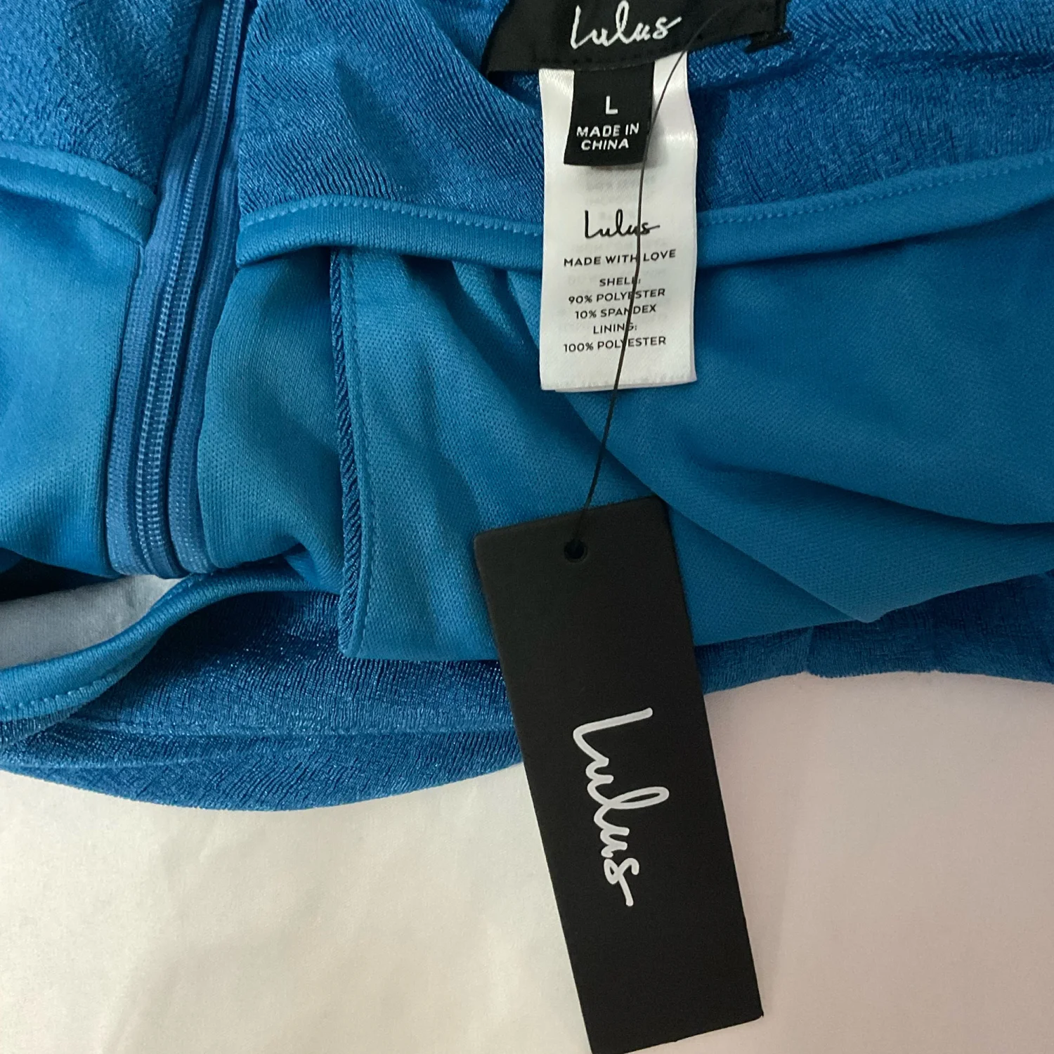 Style Beachside Party Coverup stretch knit front overlay with zipper Color: Teal Size: L Waist: 15” Length: 17” Condition: New with tags 90% Polyester 10% Spandex Hand wash
