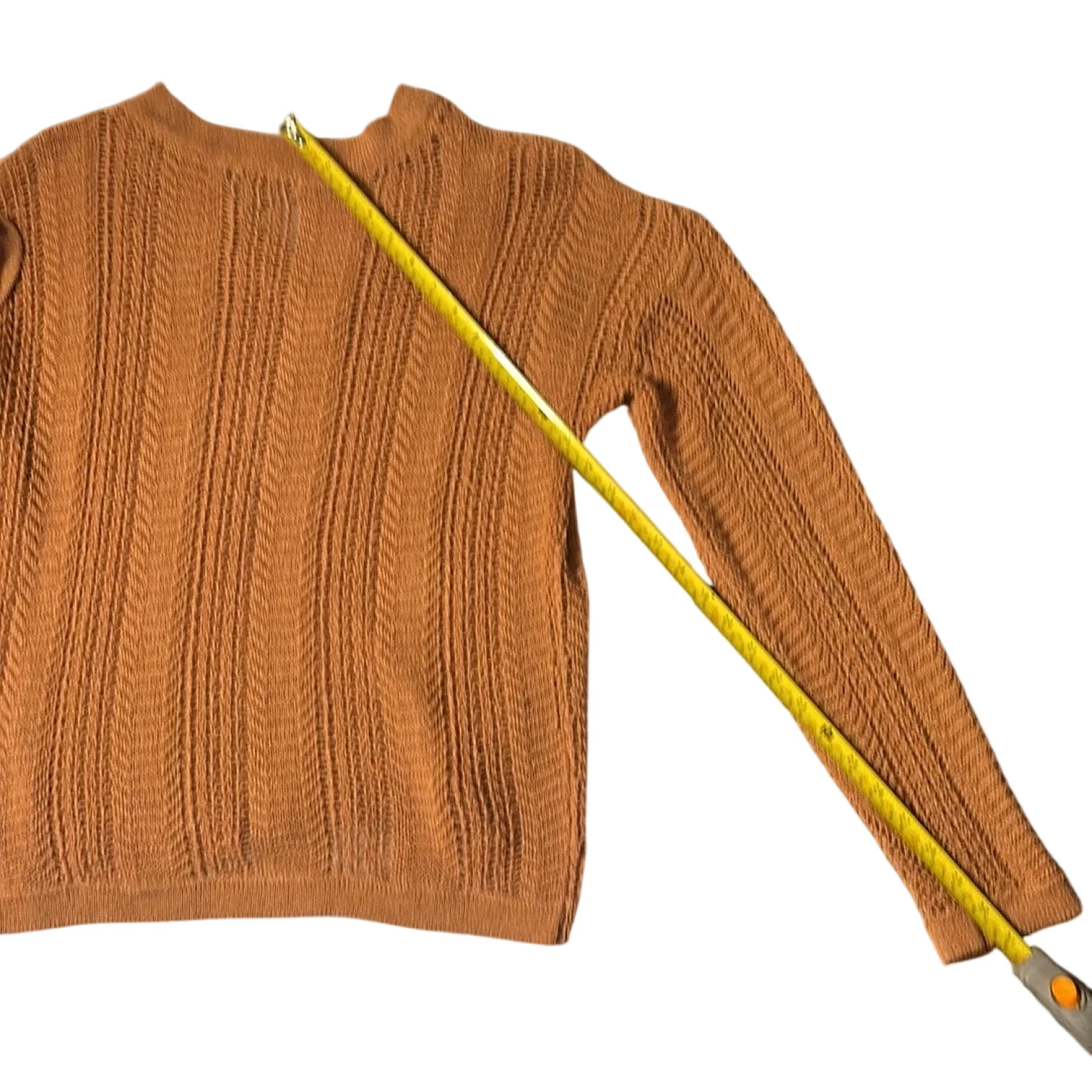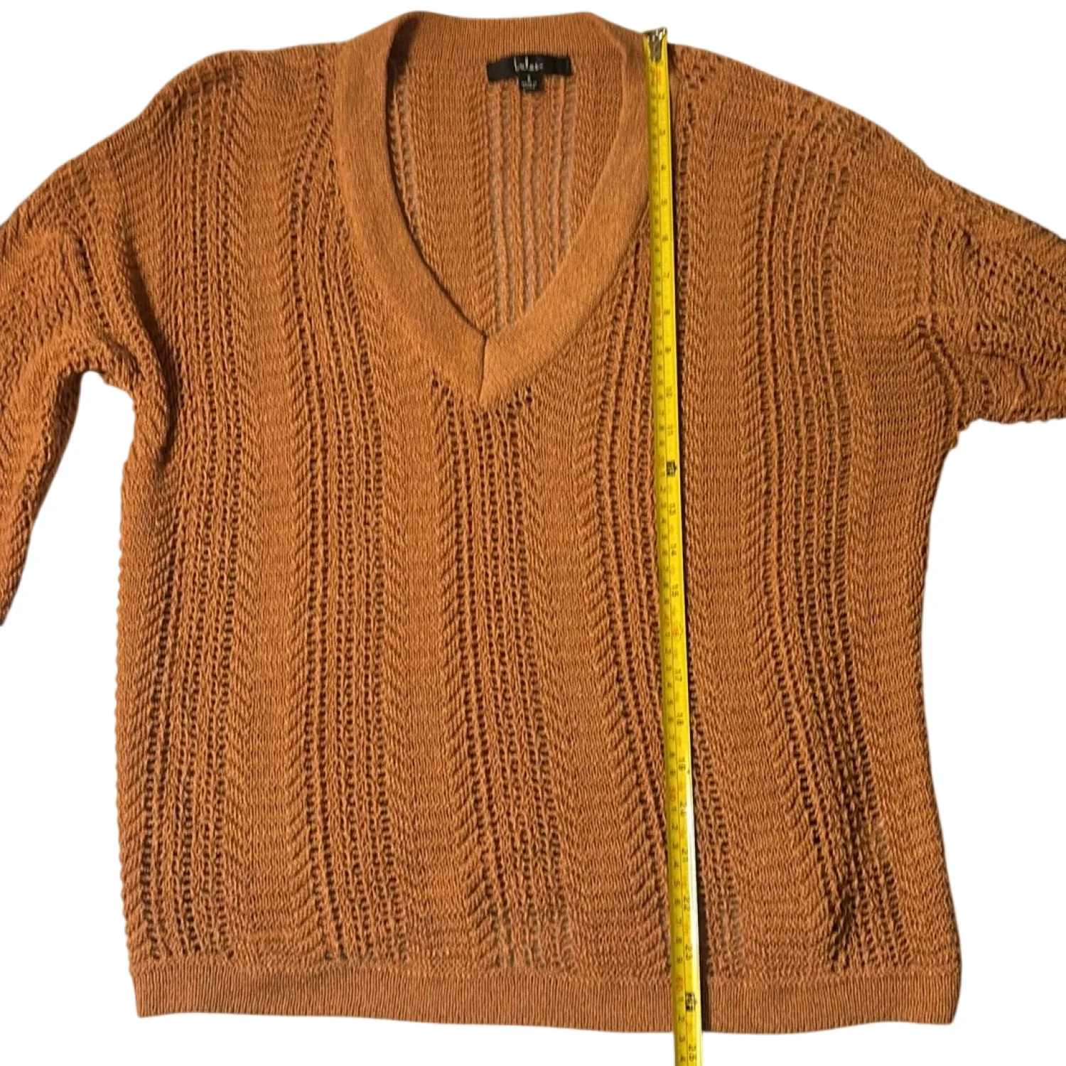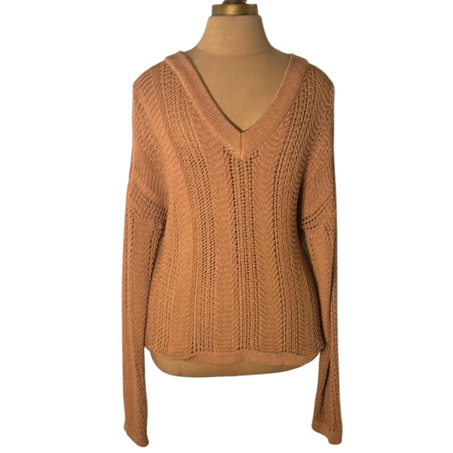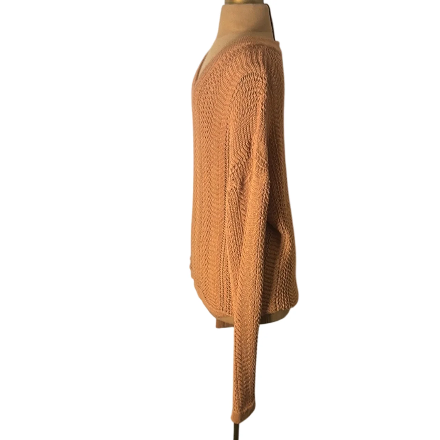 Style: Long sleeve v-neck sweater Color: Brown Size: S Armpit: 19” Length: 24” Sleeve: 31” Condition: Good 75% Acrylic 25% Nylon Hand wash